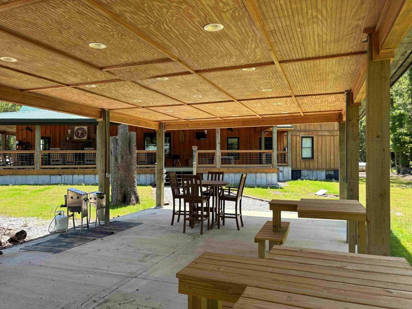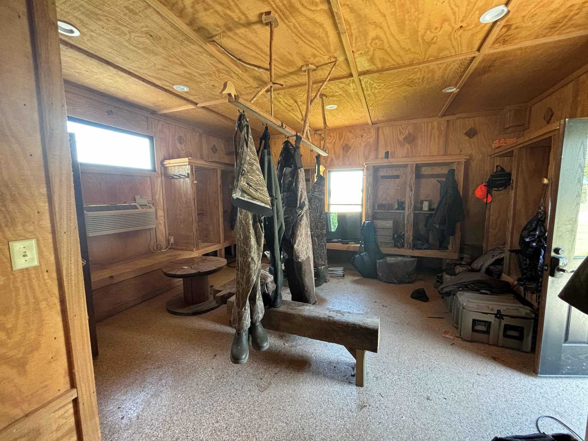 Significant improvements have been made to the property, including an 8-bedroom, 4- bath lodge with wide porches and an outdoor fireplace, as well as a locker room equipped with 10 lockers. The shed includes an electric lift, walk-in cooler, and commercial sinks. Additionally, there is a sand mine with scales on the property, offering potential revenue generation.
