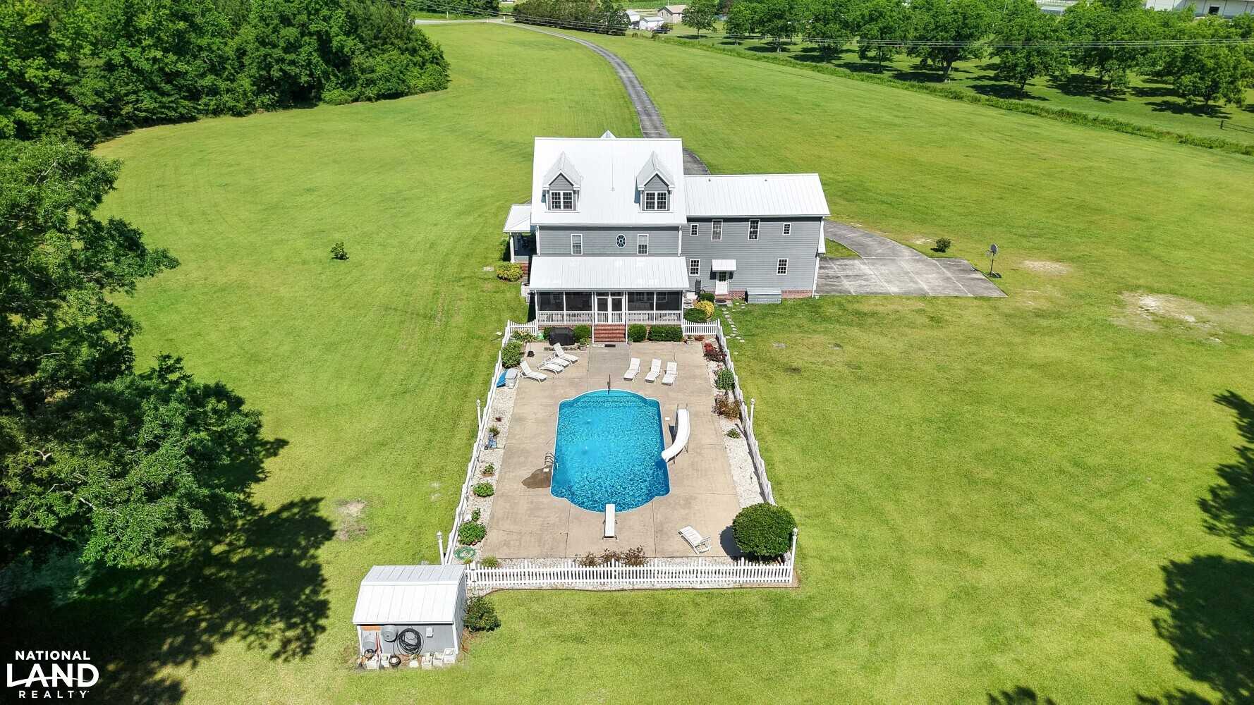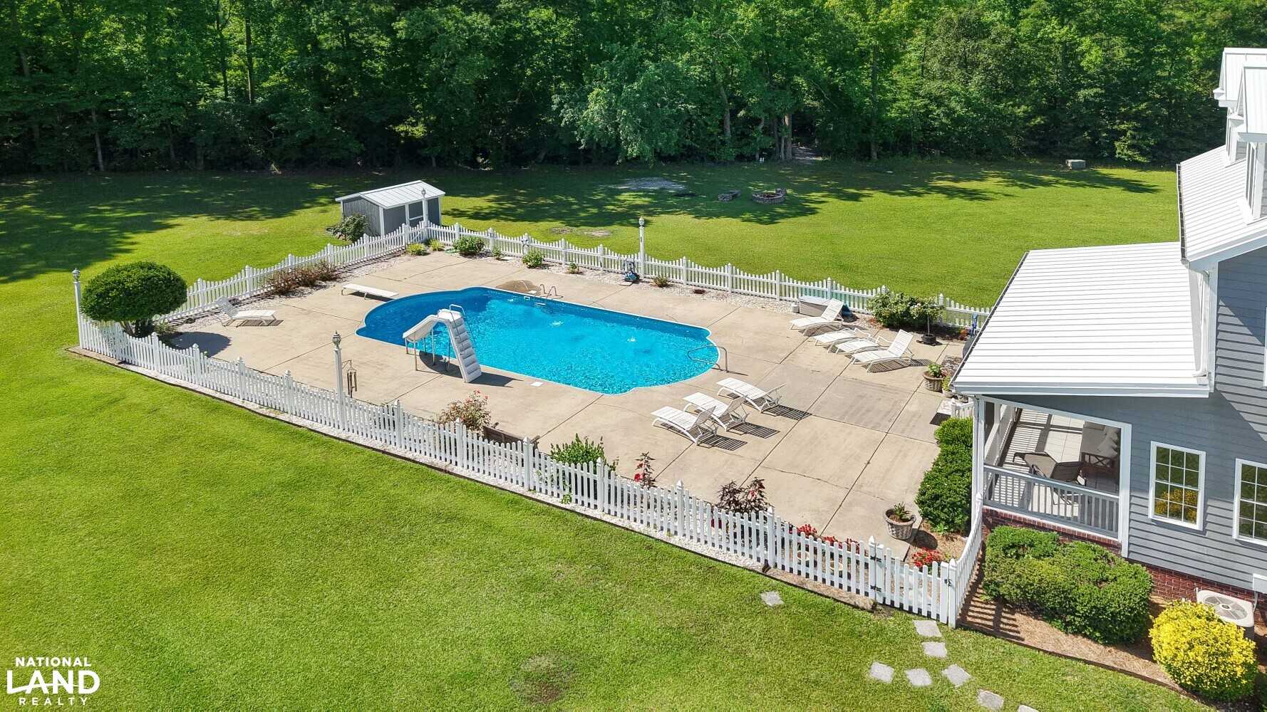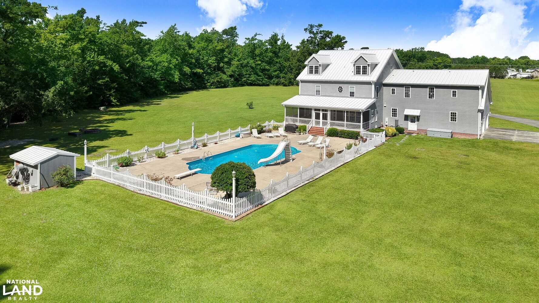 Inside, the home boasts tasteful architectural details and ample natural light throughout. The expansive layout flows seamlessly into a large screened-in porchan inviting space ideal for evening cookouts, outdoor dining, or simply enjoying the peaceful countryside. Step outside and discover a true backyard oasis, complete with a sparkling in-ground swimming pool, a fun-filled slide, and graceful fountains that make this space perfect for summer entertaining or serene relaxation.