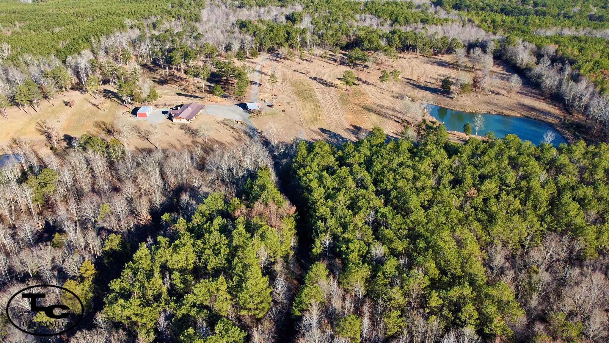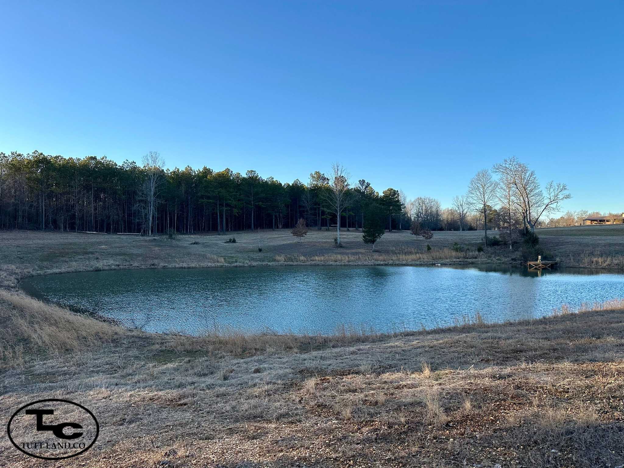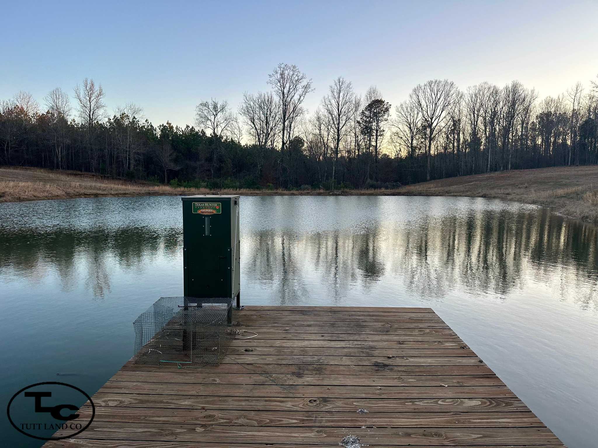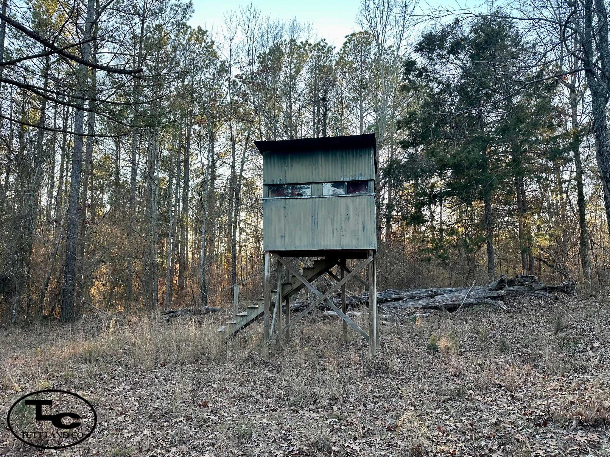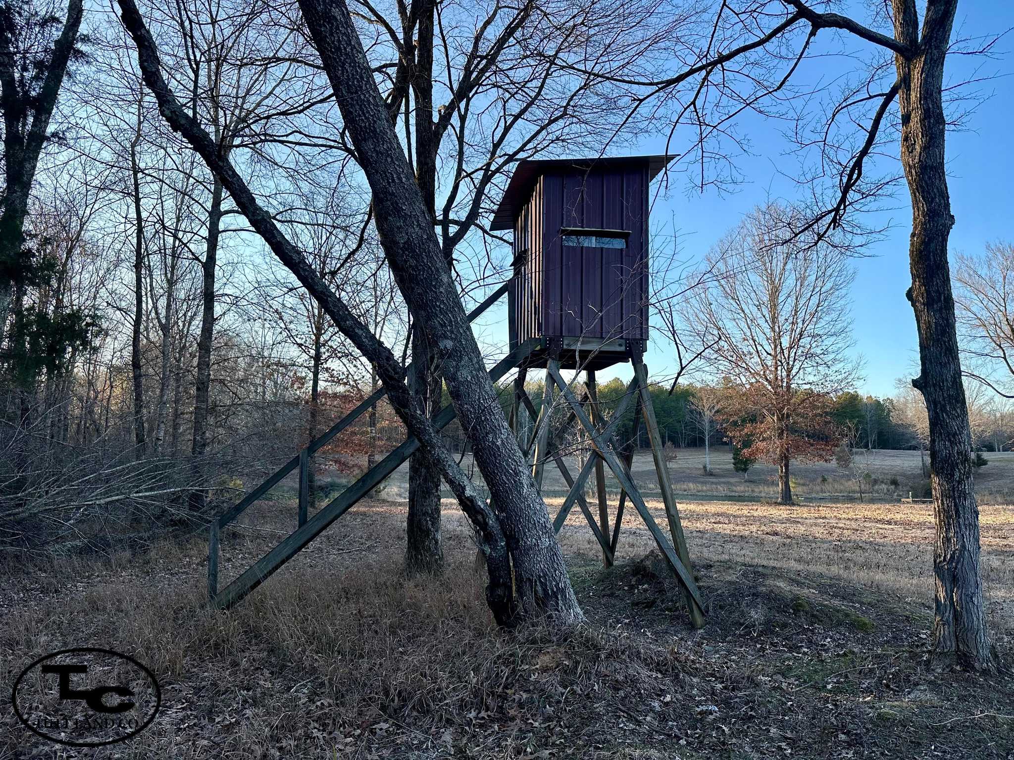 Around the camp, you will find several equipment sheds for easy, safe, and dry storage of tractors, buggies, etc. Below the hill, you will find a beautiful 1ac stocked lake for fishing. There is a nice pier over the water with a fish feeder. Even though the fishing is great, this property was designed with hunting in mind. There is a dry internal road system navigating throughout the property that connects to an adjoining 452ac hunting lease. Each foodplot is strategically laid out and has large shooting houses. Deer hunting and turkey hunting are the highlights. This area can consistently produce 140-160" mature bucks and mornings full of multiple gobbling turkeys. And the pressure is relatively lower given the large adjoining landowners. The property has a nice mix of merchantable hardwoods and pines giving it great diversity for wildlife and timber investment.