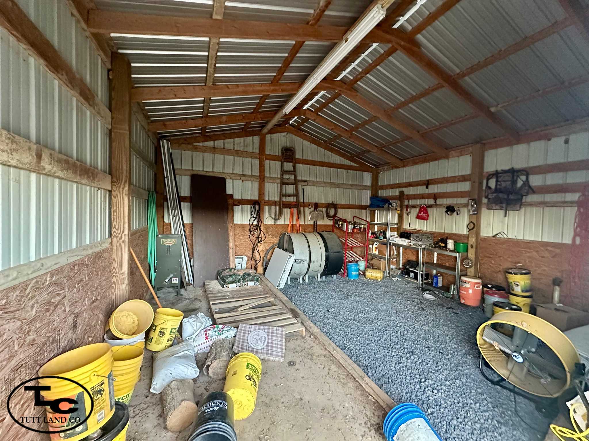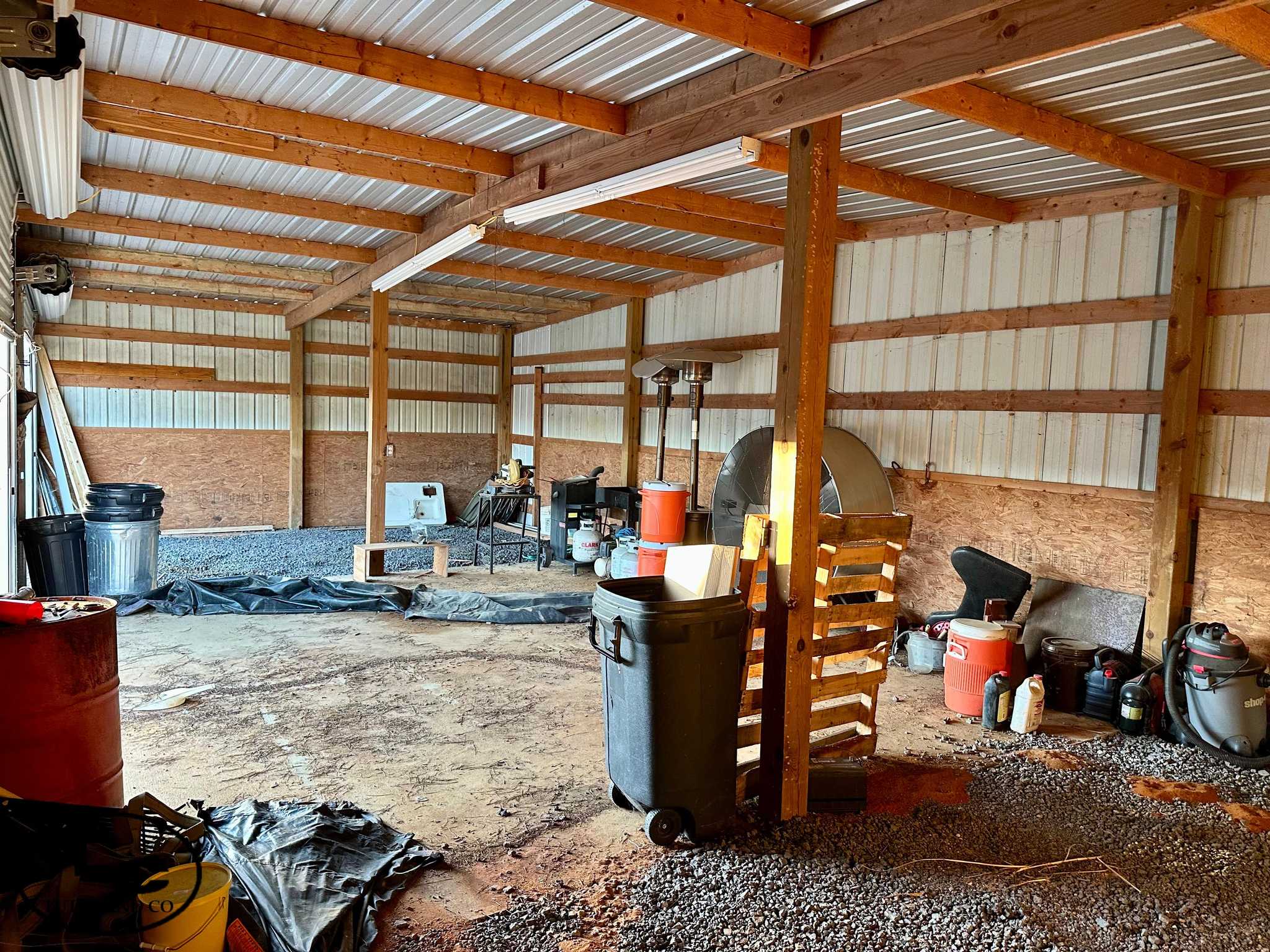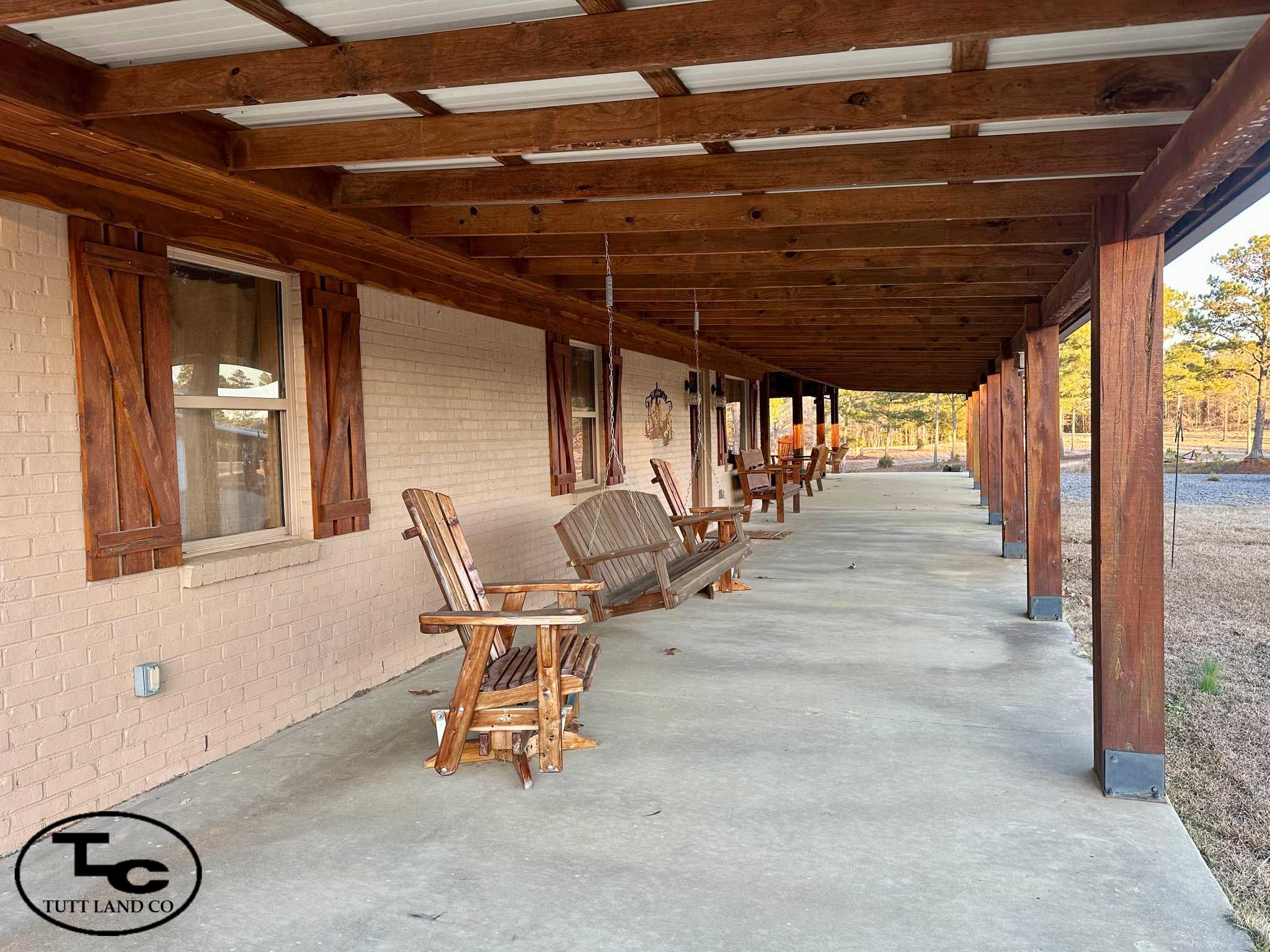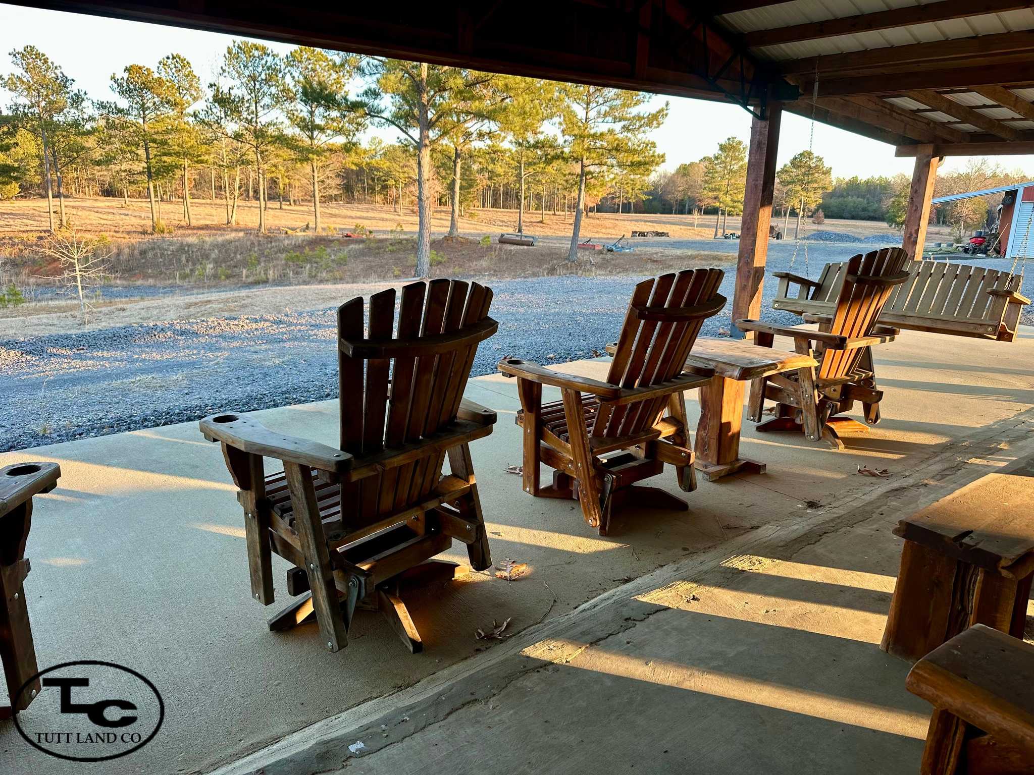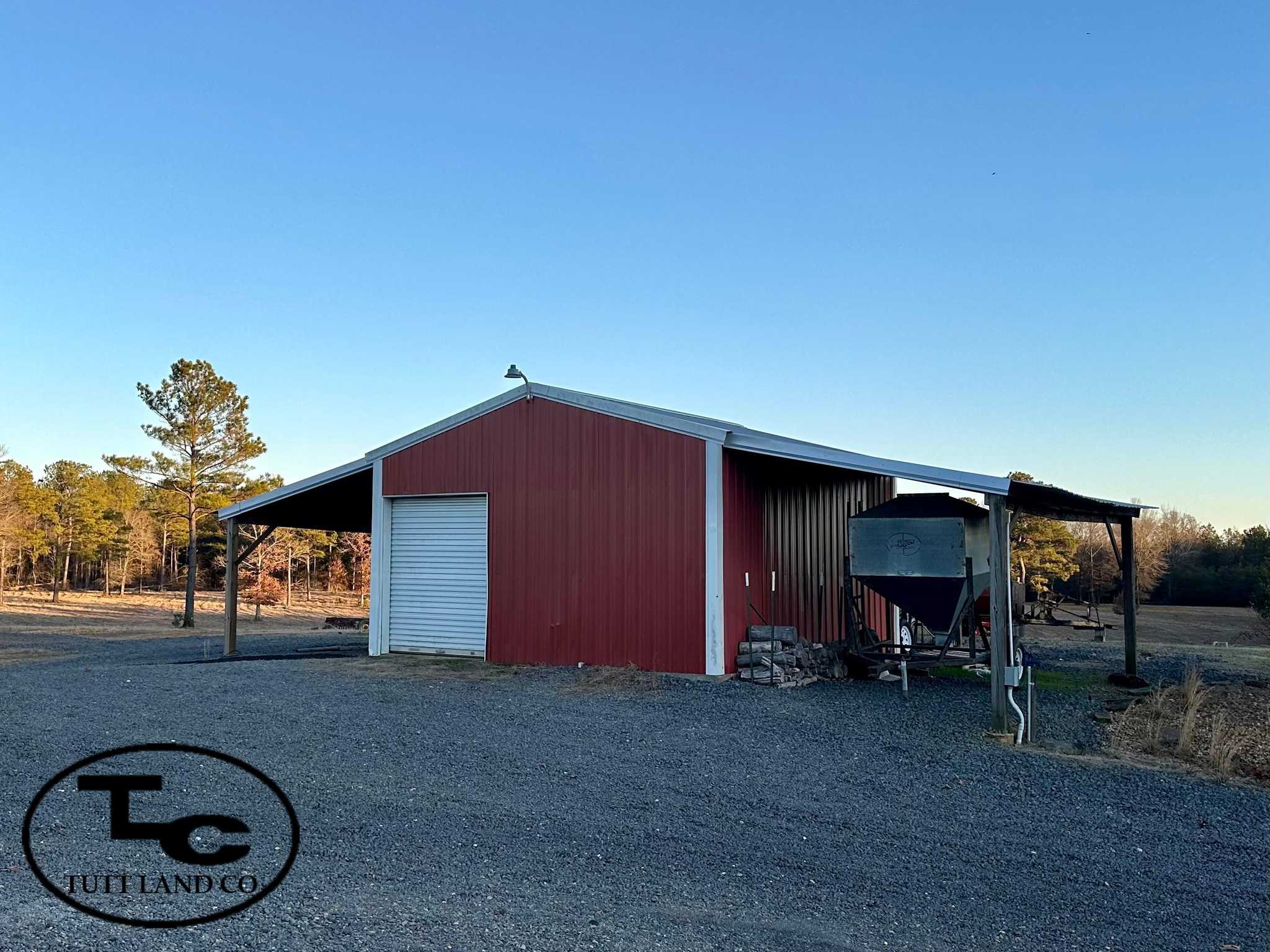 Around the camp, you will find several equipment sheds for easy, safe, and dry storage of tractors, buggies, etc. Below the hill, you will find a beautiful 1ac stocked lake for fishing. There is a nice pier over the water with a fish feeder. Even though the fishing is great, this property was designed with hunting in mind. There is a dry internal road system navigating throughout the property that connects to an adjoining 452ac hunting lease. Each foodplot is strategically laid out and has large shooting houses. Deer hunting and turkey hunting are the highlights. This area can consistently produce 140-160" mature bucks and mornings full of multiple gobbling turkeys. And the pressure is relatively lower given the large adjoining landowners. The property has a nice mix of merchantable hardwoods and pines giving it great diversity for wildlife and timber investment.