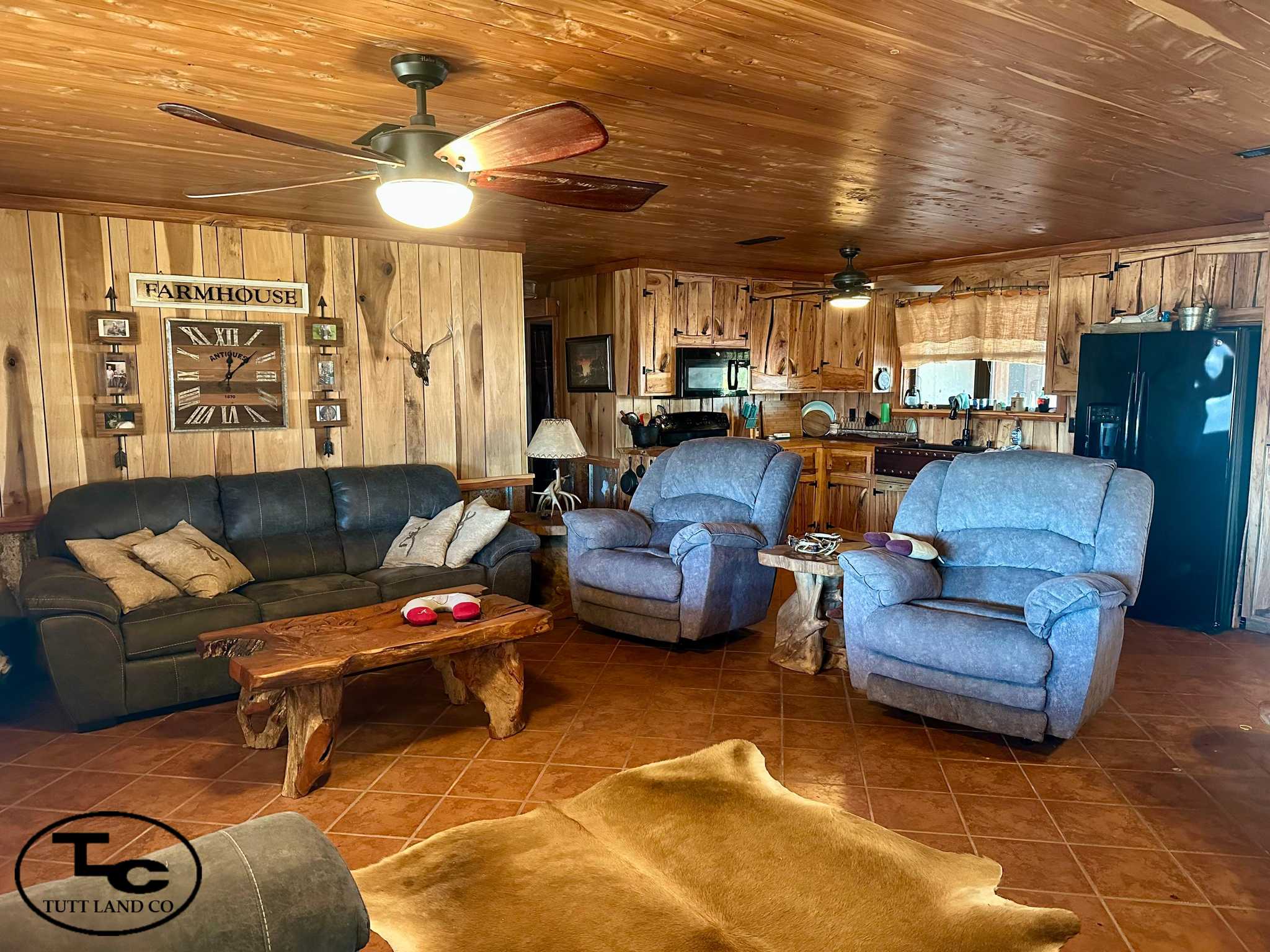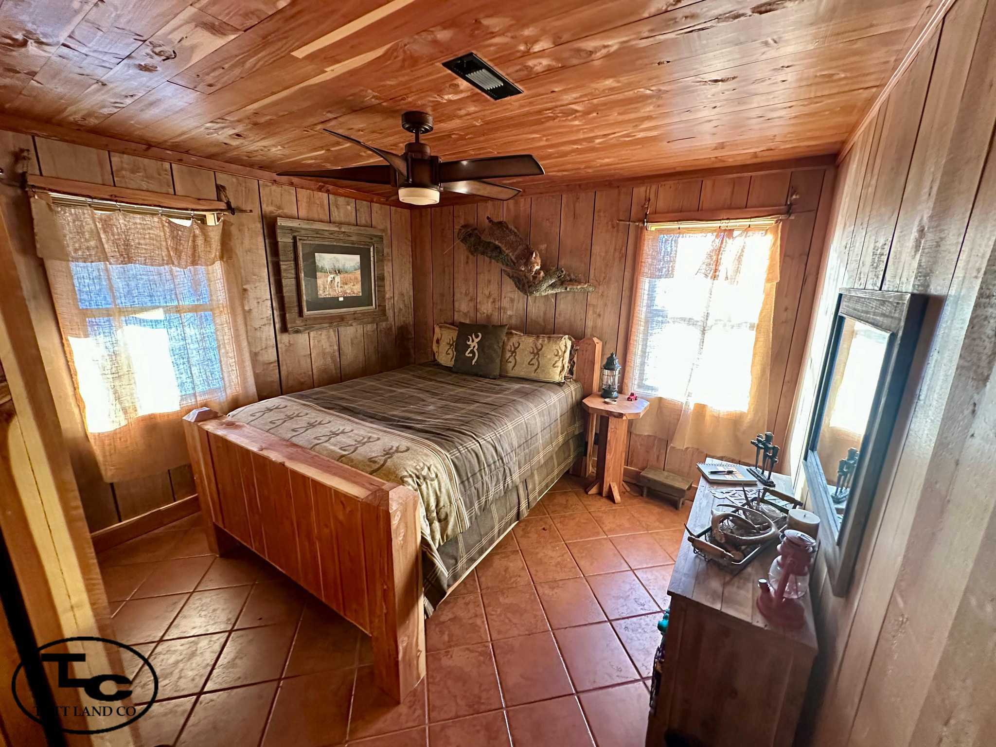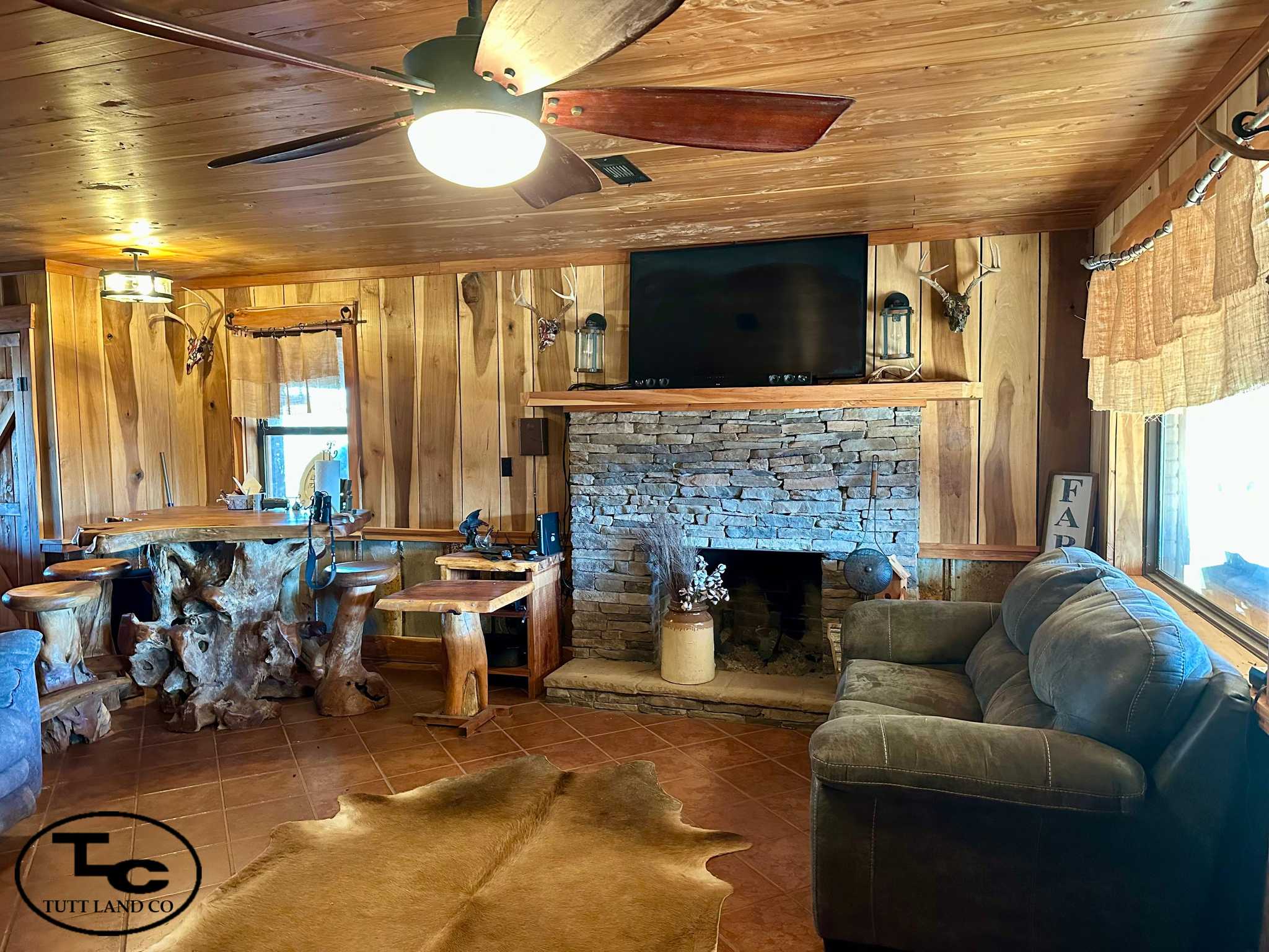The Bones and Spurs Tract is a little slice of heaven. This turn-key property consists of 214 +/- acres located in Lamar County, Alabama and has a little bit of everything you want in a recreational property. Upon arrival, you will find a very private and secluded entrance behind an electric gate. There is a very nice gravel road system throughout the middle of the property. The 3 bed 1 bath lodge with all utilities has been completely gutted and remodeled. Not overbuilt but perfect to be comfortable for your family or entertain a few guests. There is a covered porch and entertainment patio with an outdoor fireplace and large smokers that is ideal for having get-togethers for events or watching games. Not to mention, the expansive view from the camp is wonderful. All inside and outside furniture is very nice and will stay with the property.