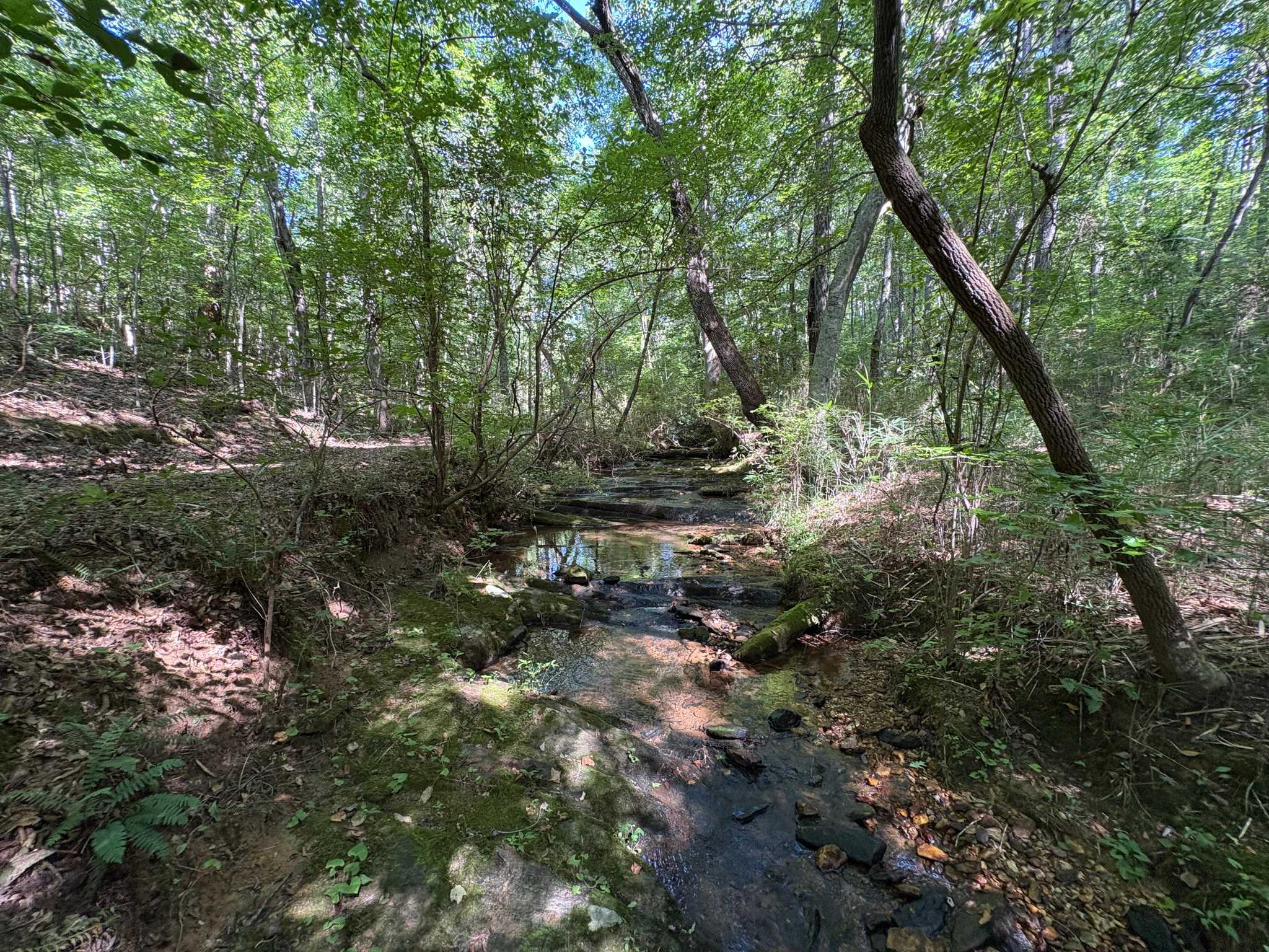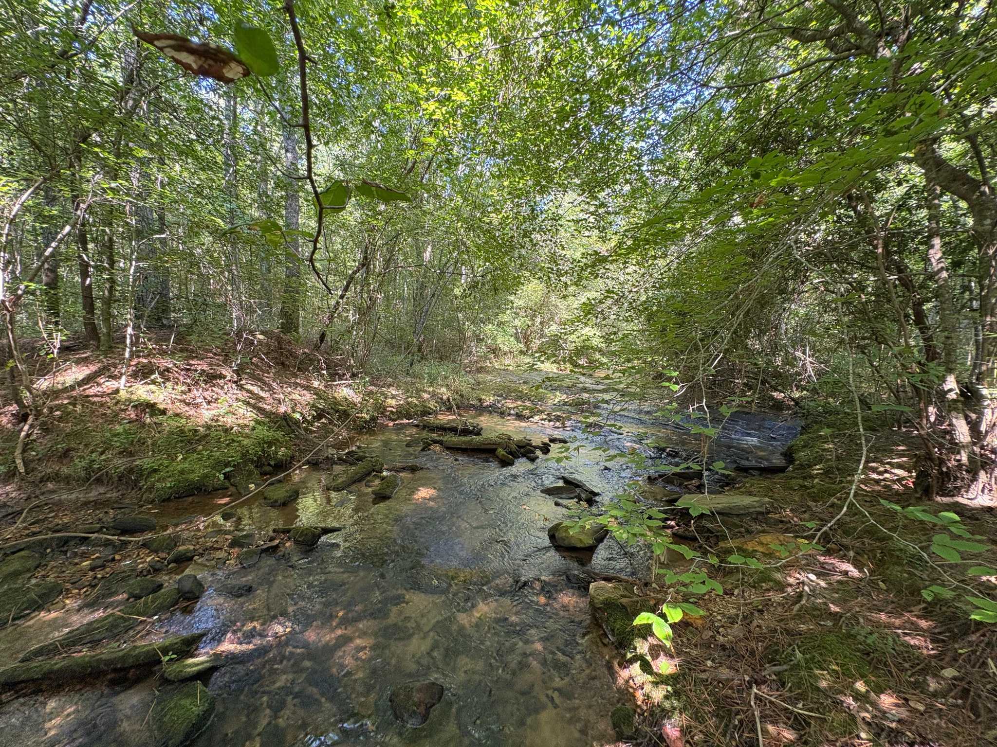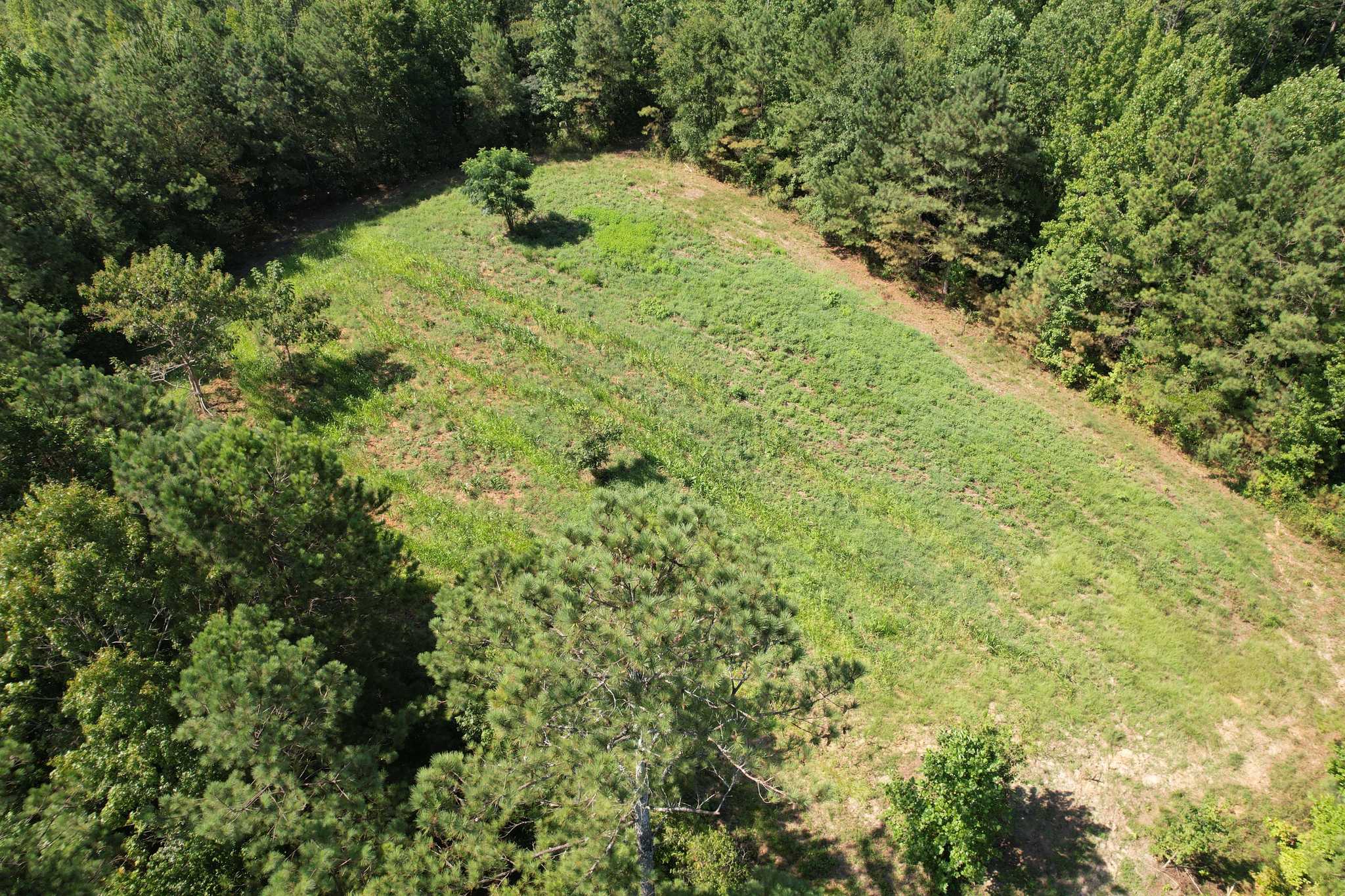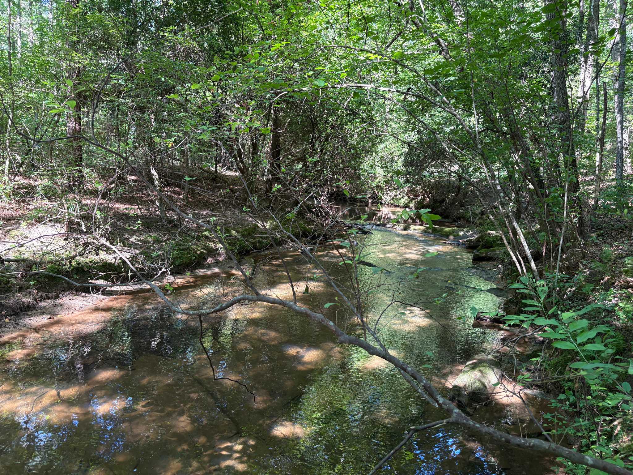 The landowner has recently constructed a new board fence entrance with fresh gravel on the main road leading to a good camp site with power. There is an existing small pole barn on site that would work well for parking a tractor and ATVs. The topography here is gently rolling for the most part and a good road/trail system is in place. Most all parts of the tract are accessible with the exception of a couple wooded areas across small creeks. These areas are a great sanctuary for deer to bed and browse in and could also be made accessible easily with a crossing or culvert pipe. There are 5 good size food plots on the tract, some of which are planted in summer crops like grain sorghum and peas. There are other areas that could be converted into more food plots as well if one wanted to do so. A good supply of water is available here with 2 small springs that flow into a more major creek which is the southern boundary of the property. This creek (almost one mile of frontage) is really nice and features several rock outcroppings and small water falls. It is a good water source for the wildlife and is also a great a place for your family to do some exploring or picnicing. The timber on the tract is mostly natural pine/hardwood regeneration with some really nice hardwood bottoms. There are a lot of white oaks in these bottoms that will be a good food source in the fall and a great spot to bowhunt. There looks to be no shortage of deer and turkeys here...deer tracks and turkey scratching are evident most anywhere you go!