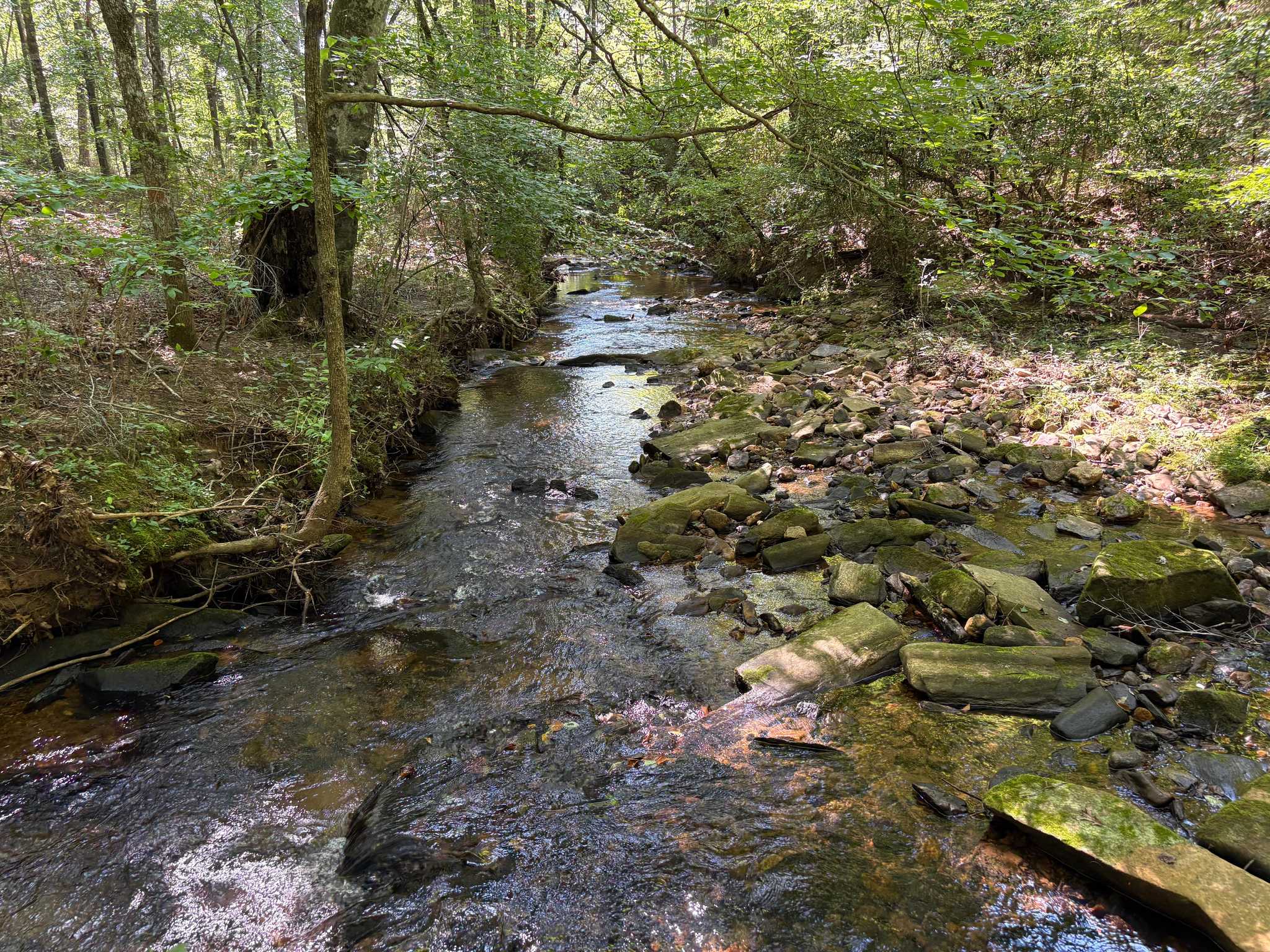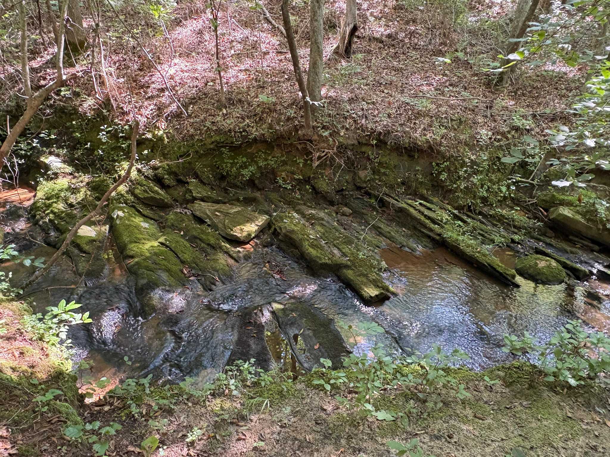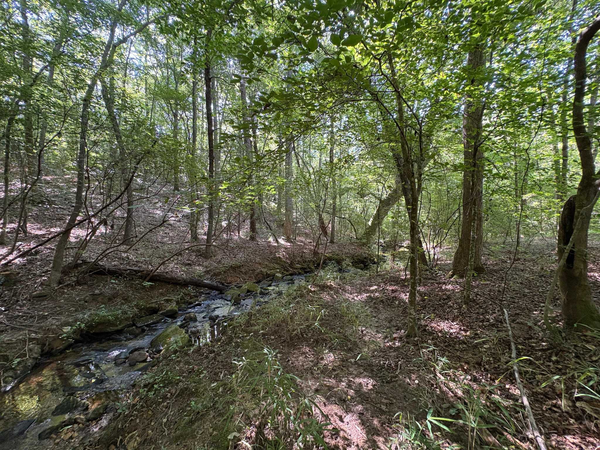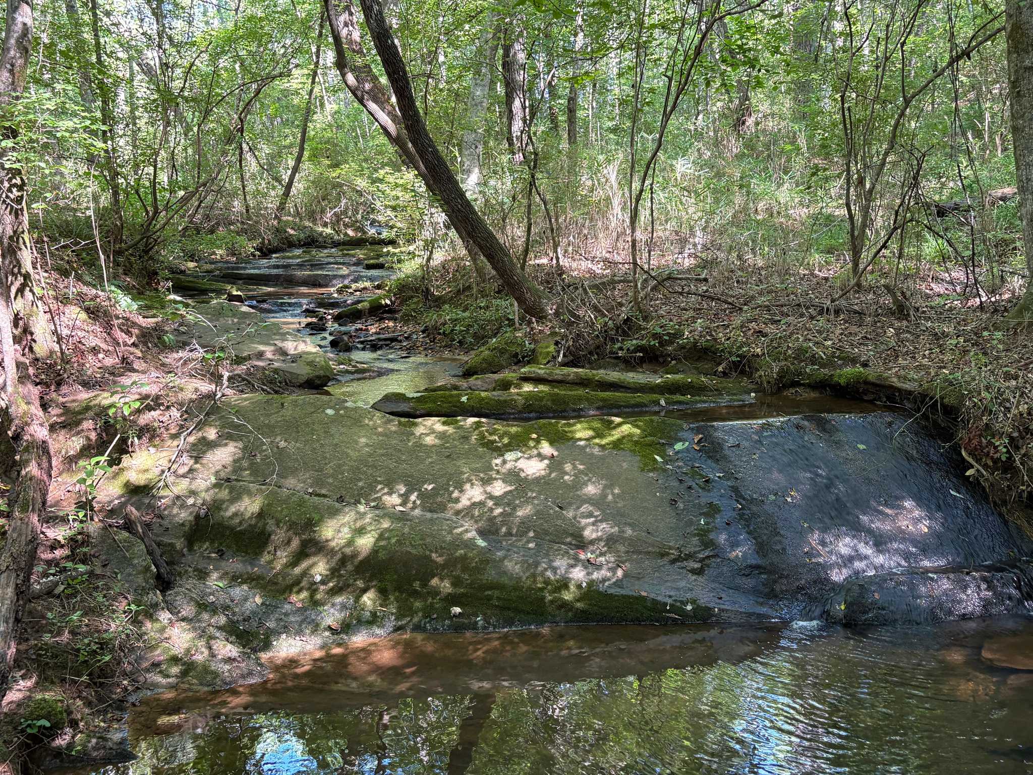 The landowner has recently constructed a new board fence entrance with fresh gravel on the main road leading to a good camp site with power. There is an existing small pole barn on site that would work well for parking a tractor and ATVs. The topography here is gently rolling for the most part and a good road/trail system is in place. Most all parts of the tract are accessible with the exception of a couple wooded areas across small creeks. These areas are a great sanctuary for deer to bed and browse in and could also be made accessible easily with a crossing or culvert pipe. There are 5 good size food plots on the tract, some of which are planted in summer crops like grain sorghum and peas. There are other areas that could be converted into more food plots as well if one wanted to do so. A good supply of water is available here with 2 small springs that flow into a more major creek which is the southern boundary of the property. This creek (almost one mile of frontage) is really nice and features several rock outcroppings and small water falls. It is a good water source for the wildlife and is also a great a place for your family to do some exploring or picnicing. The timber on the tract is mostly natural pine/hardwood regeneration with some really nice hardwood bottoms. There are a lot of white oaks in these bottoms that will be a good food source in the fall and a great spot to bowhunt. There looks to be no shortage of deer and turkeys here...deer tracks and turkey scratching are evident most anywhere you go!