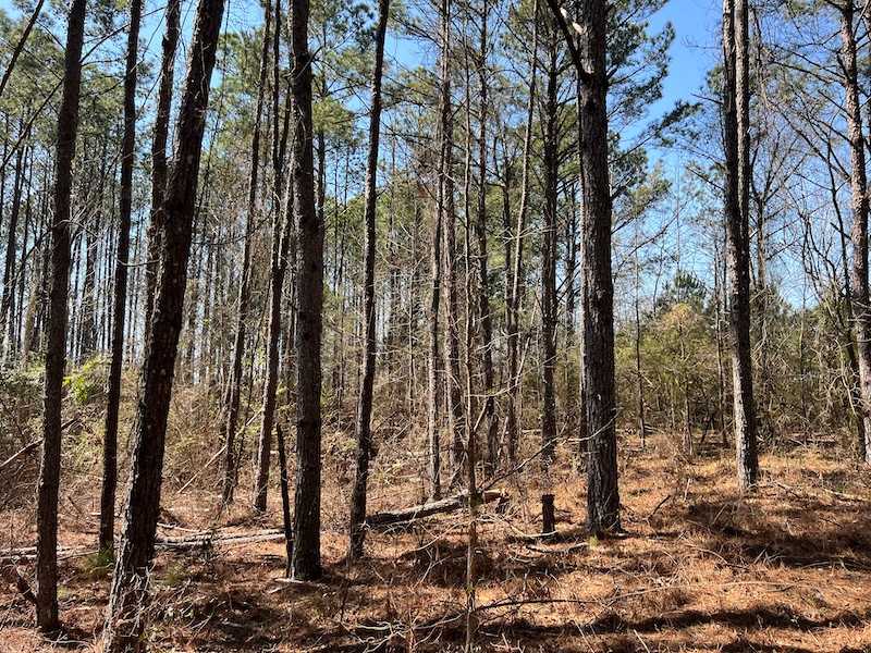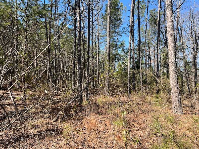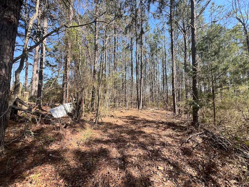 This elevated tract of land sits along a quiet county road, offering convenient access to utilities that are already available at the roadside and throughout the property. The property features a gently elevated landscape that plateaus to a level area for the majority of the acreage. Covered in various-aged pine timber with a few hardwoods, it offers natural beauty and privacy. A small water hole adds character and serves as a reliable draw for local wildlife. With its mix of rolling terrain and level areas, this parcel is ideal for a primary residence or weekend getaway and could easily accommodate multiple home sites. Peaceful, scenic, and ready to buildthis is a perfect setting to enjoy country living at its best. The property does have an old slab and some collapsed structure grown over and will be left in place.