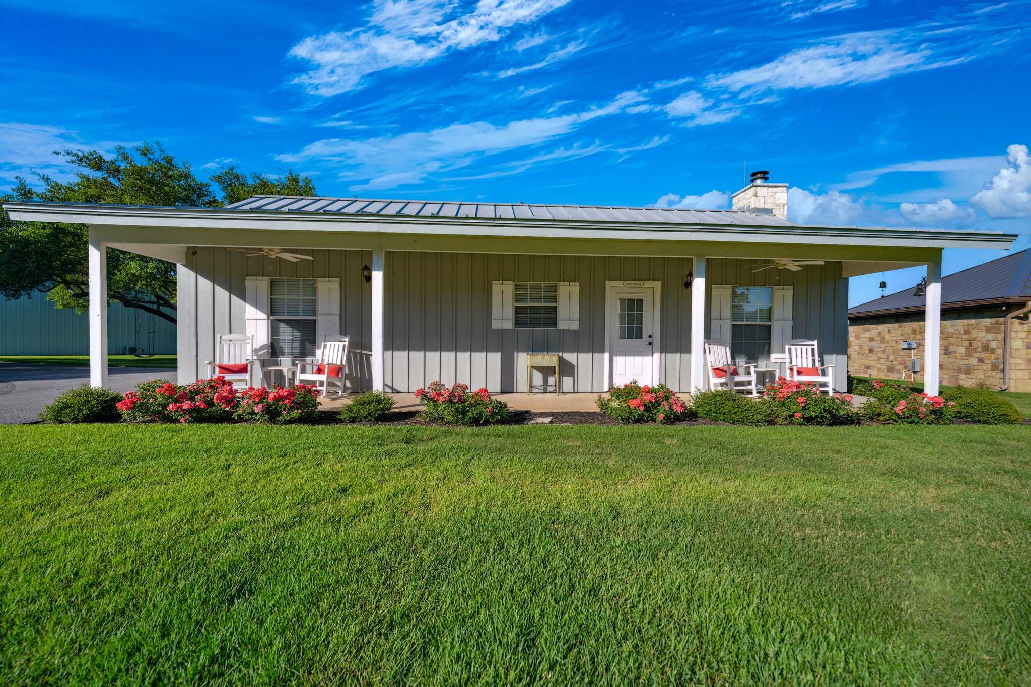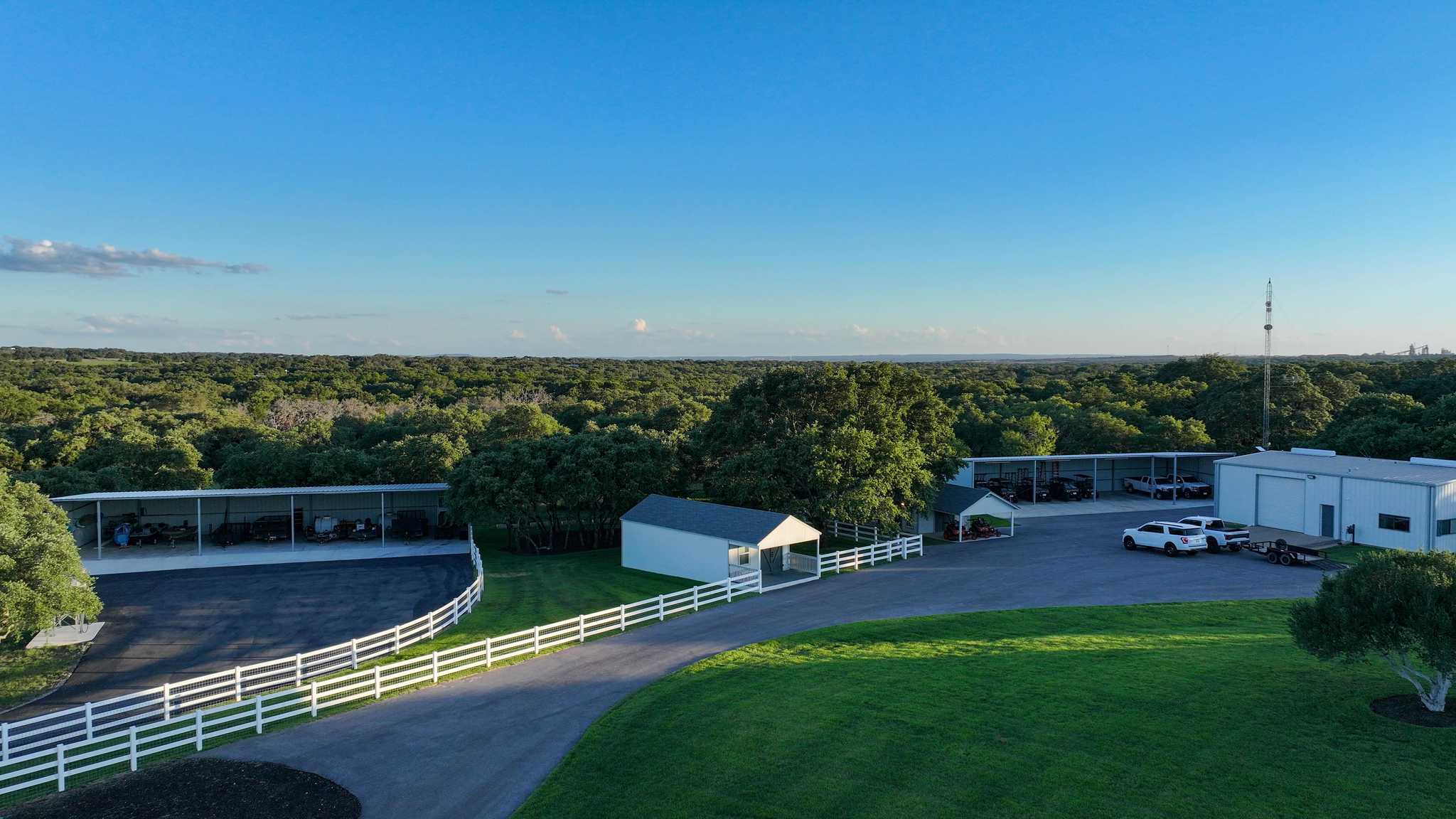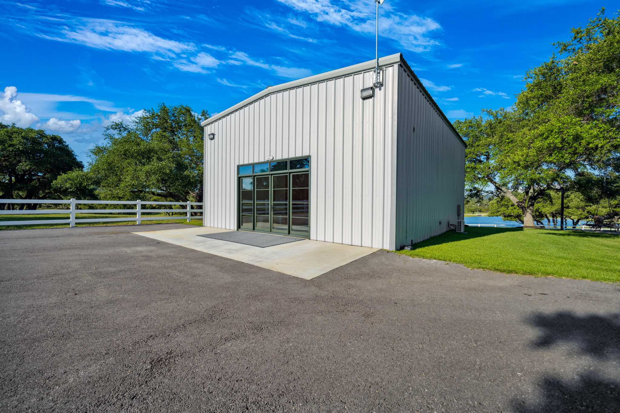 Additional accommodations include a 941 sq/ft, 1BR/1BA guest house with a front porch perfect for enjoying a beautiful day, and a 500 sq/ft, 2BR/1BA bunkhouse. Other improvements include multiple outbuildings such as: a fully enclosed water storage tank facility with a capacity of 27,500-gal, multiple barns individually for; vehicles, trailers, equipment, equipment maintenance, general storage, and for storing holiday, seasonal and event supplies; most of these barns are climate controlled. There is also a gym/workout facility with solar shades and dog kennels, both are climate-controlled as well. Furthermore, a commercial-grade, full-ranch, 60kW Generac standby generator with a 1,000-gallon propane tank is located on the west side of the water tank barn. Fully automatic, it ensures the entire ranch has electricity during any power outage.
