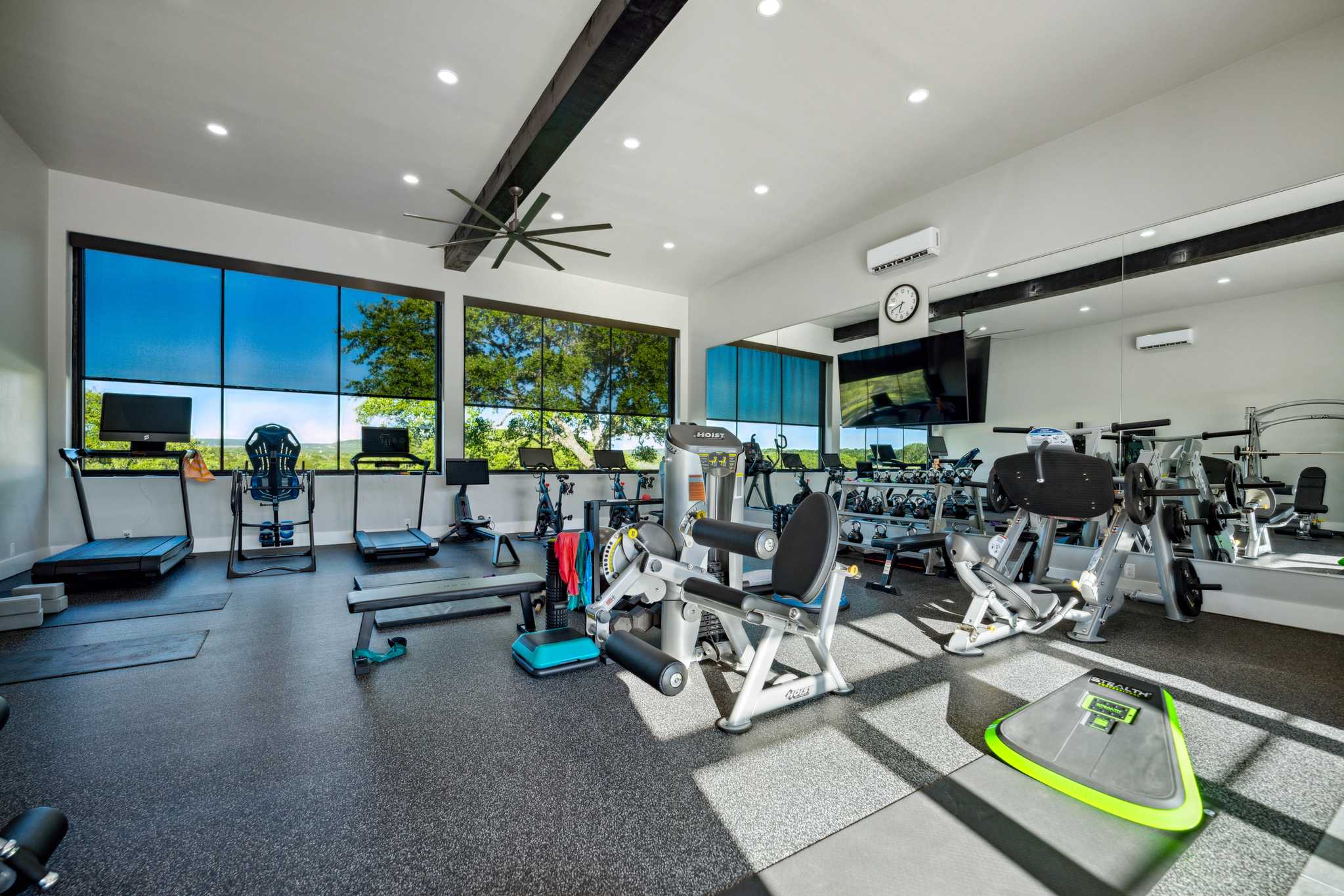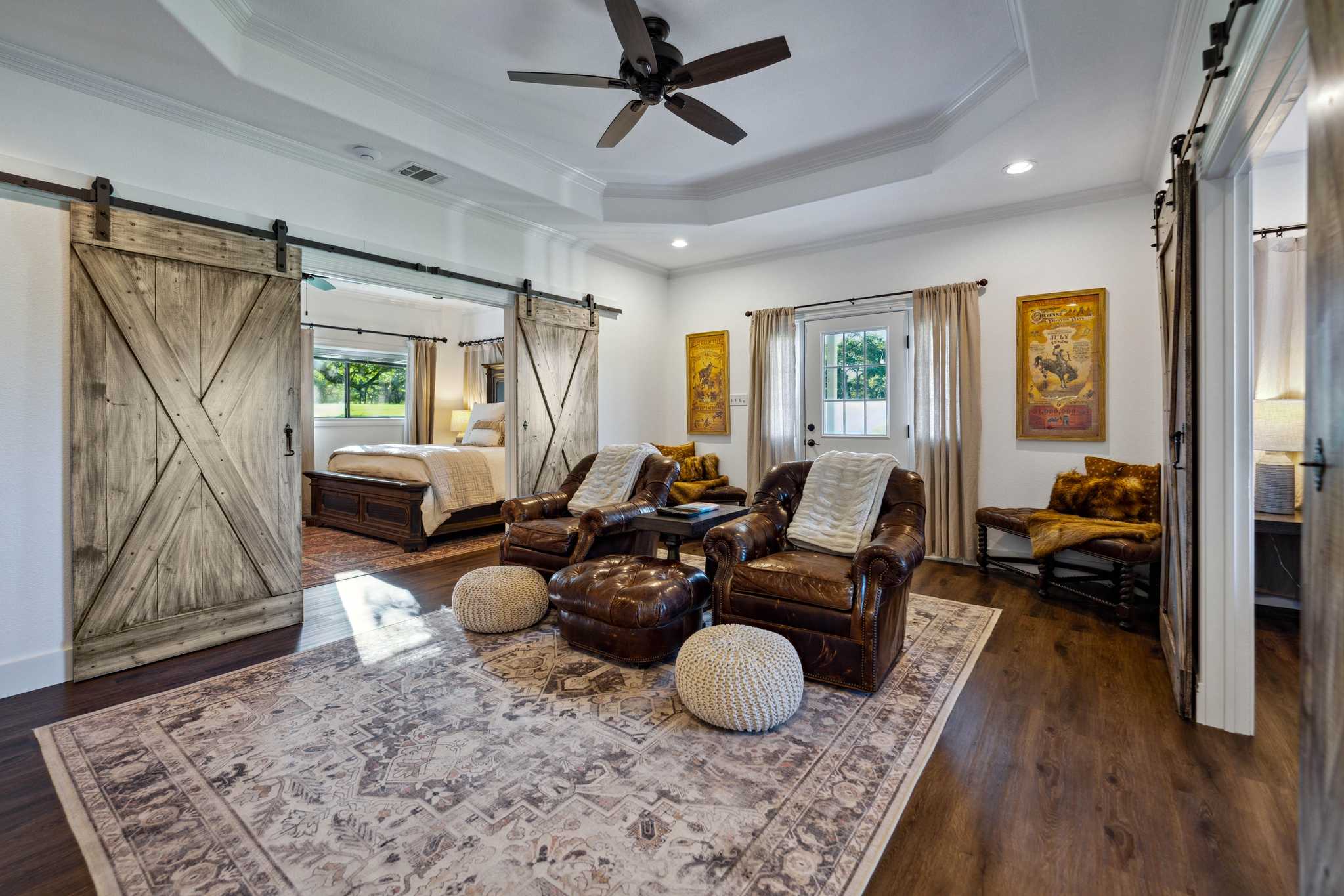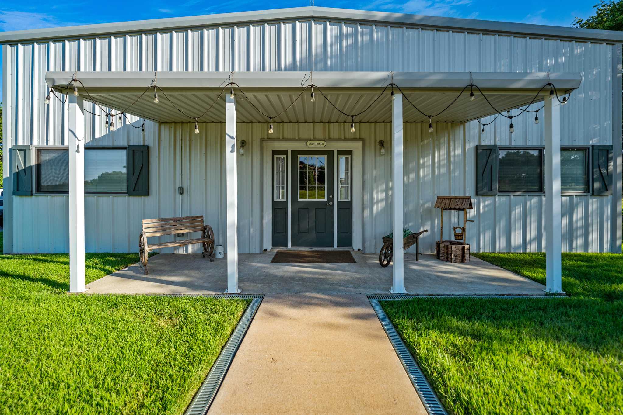 Additional accommodations include a 941 sq/ft, 1BR/1BA guest house with a front porch perfect for enjoying a beautiful day, and a 500 sq/ft, 2BR/1BA bunkhouse. Other improvements include multiple outbuildings such as: a fully enclosed water storage tank facility with a capacity of 27,500-gal, multiple barns individually for; vehicles, trailers, equipment, equipment maintenance, general storage, and for storing holiday, seasonal and event supplies; most of these barns are climate controlled. There is also a gym/workout facility with solar shades and dog kennels, both are climate-controlled as well. Furthermore, a commercial-grade, full-ranch, 60kW Generac standby generator with a 1,000-gallon propane tank is located on the west side of the water tank barn. Fully automatic, it ensures the entire ranch has electricity during any power outage.