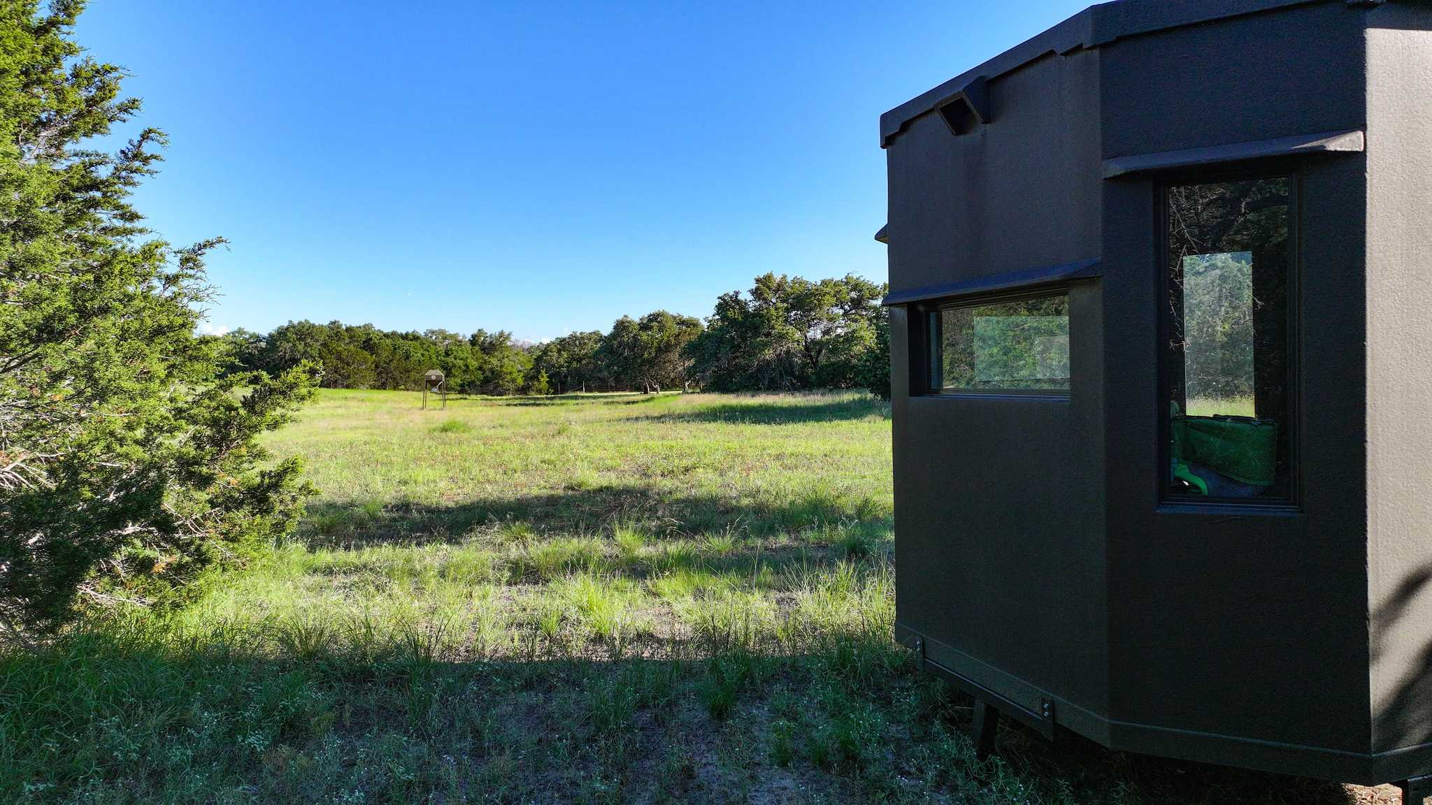 The property is low-fenced, asphalt roads lead to the house and barn areas and all-weather roads and trails provide access throughout the remainder of the property. The ranch has captivating views of the surrounding hills, with a mix of healthy pastures and scattered mature oak trees. The combination of natural water resources and cover attracts the native wildlife, including whitetail deer and dove. The property also has a hunting blind, corn feeder, and an area for target practice, perfect for hunting or watching wildlife.