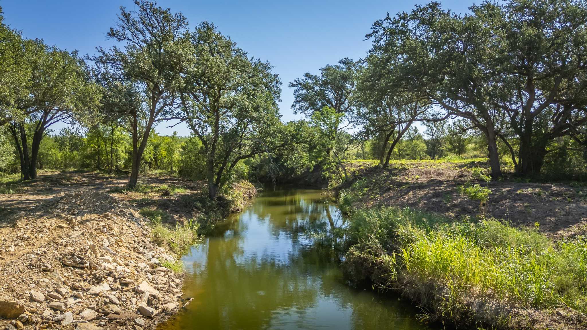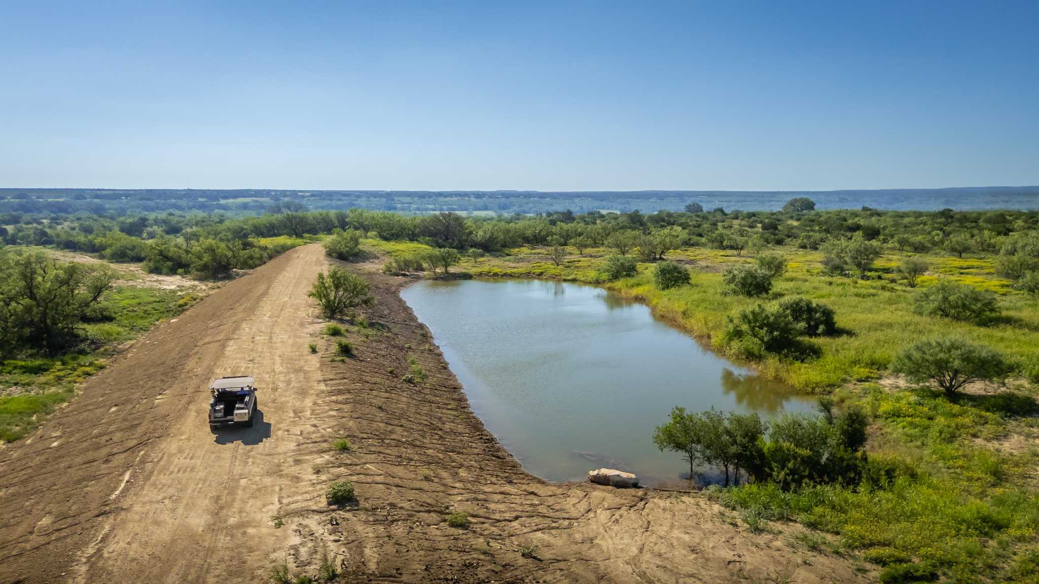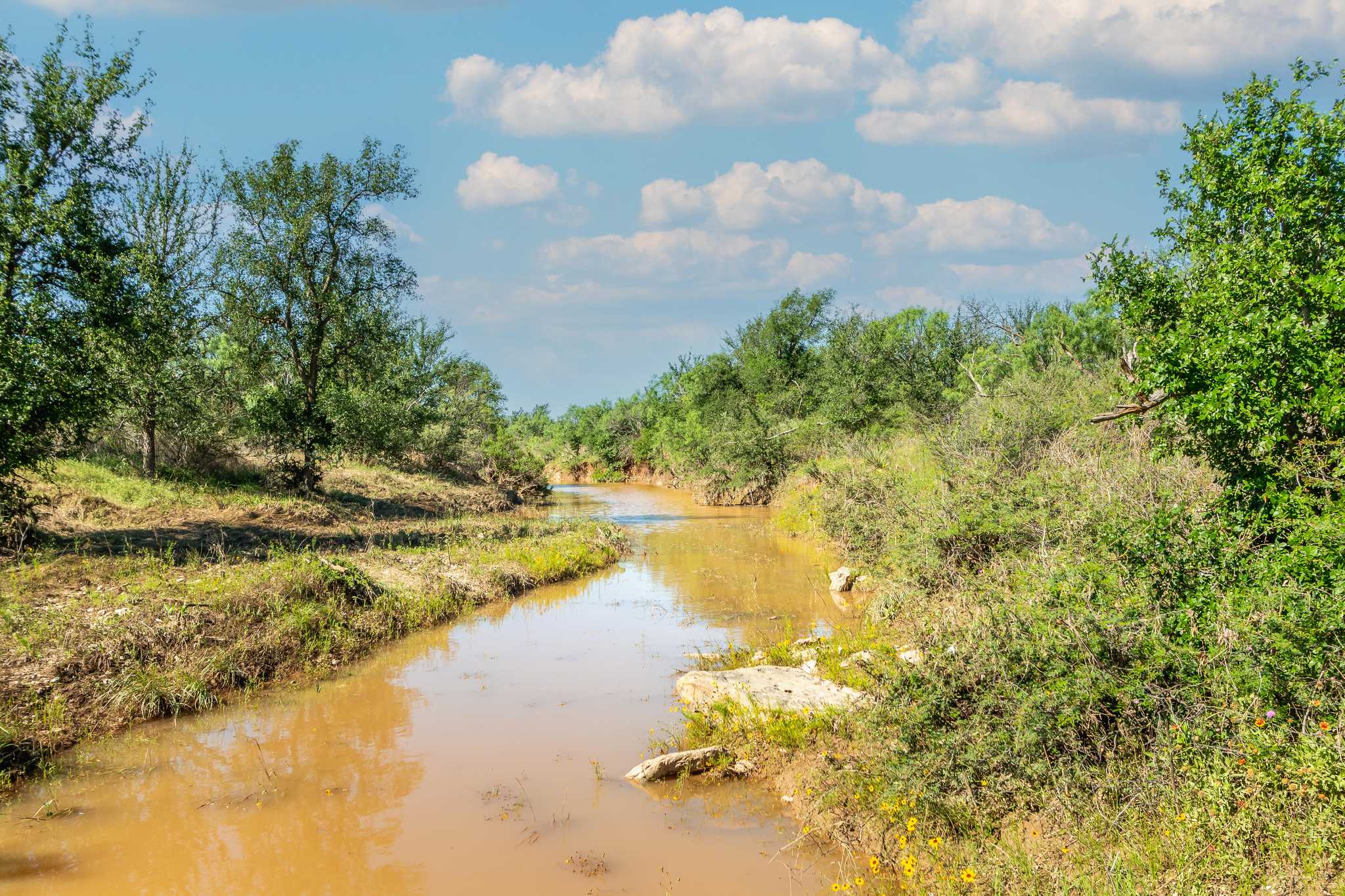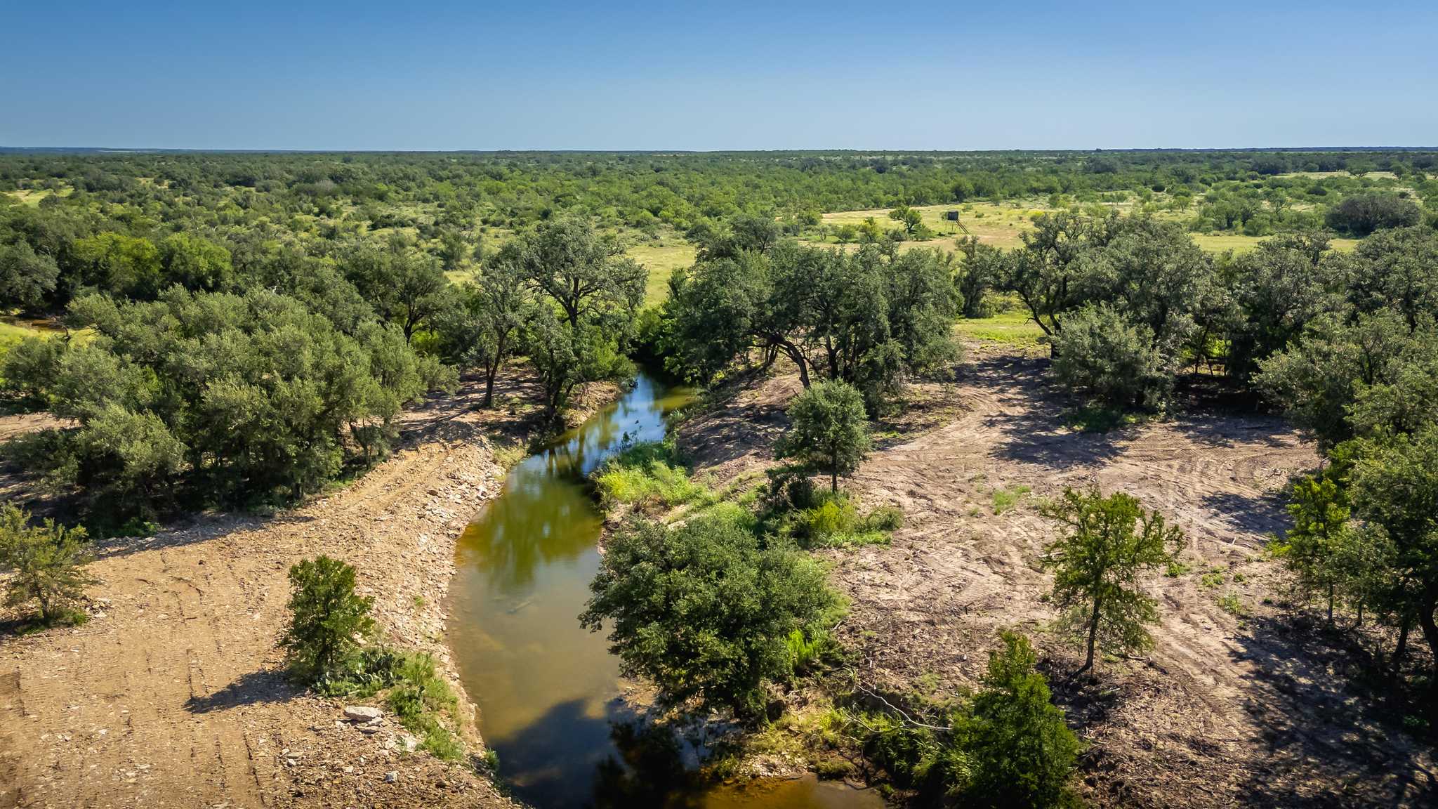 Brady Bunch Ranch is exceptionally well-watered. A new 400 GPM Hickory Aquifer water well, drilled to approximately 3,250 feet, is plumbed to six recently constructed stock tanks. One tank covers approximately six acres, and additional locations are suitable for building a 10-acre lake or smaller ponds. Ten ponds are scattered across the land, several of which are designed to hold water year-round. Cow Creek, a wet-weather creek, runs north to south for nearly two miles and is fed by more than three miles of additional wet-weather channels. Onsite clay soils provide material for further water development projects.