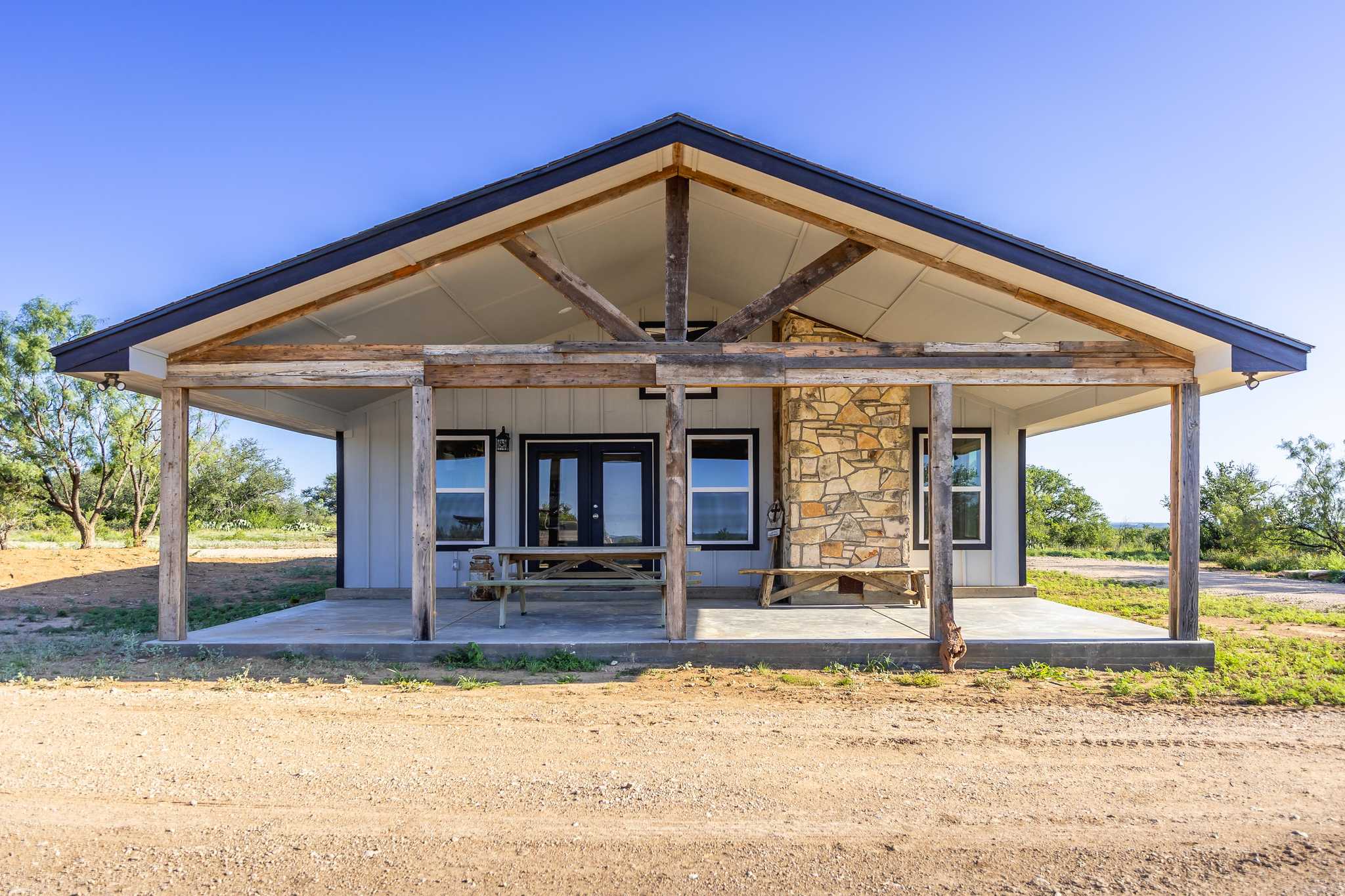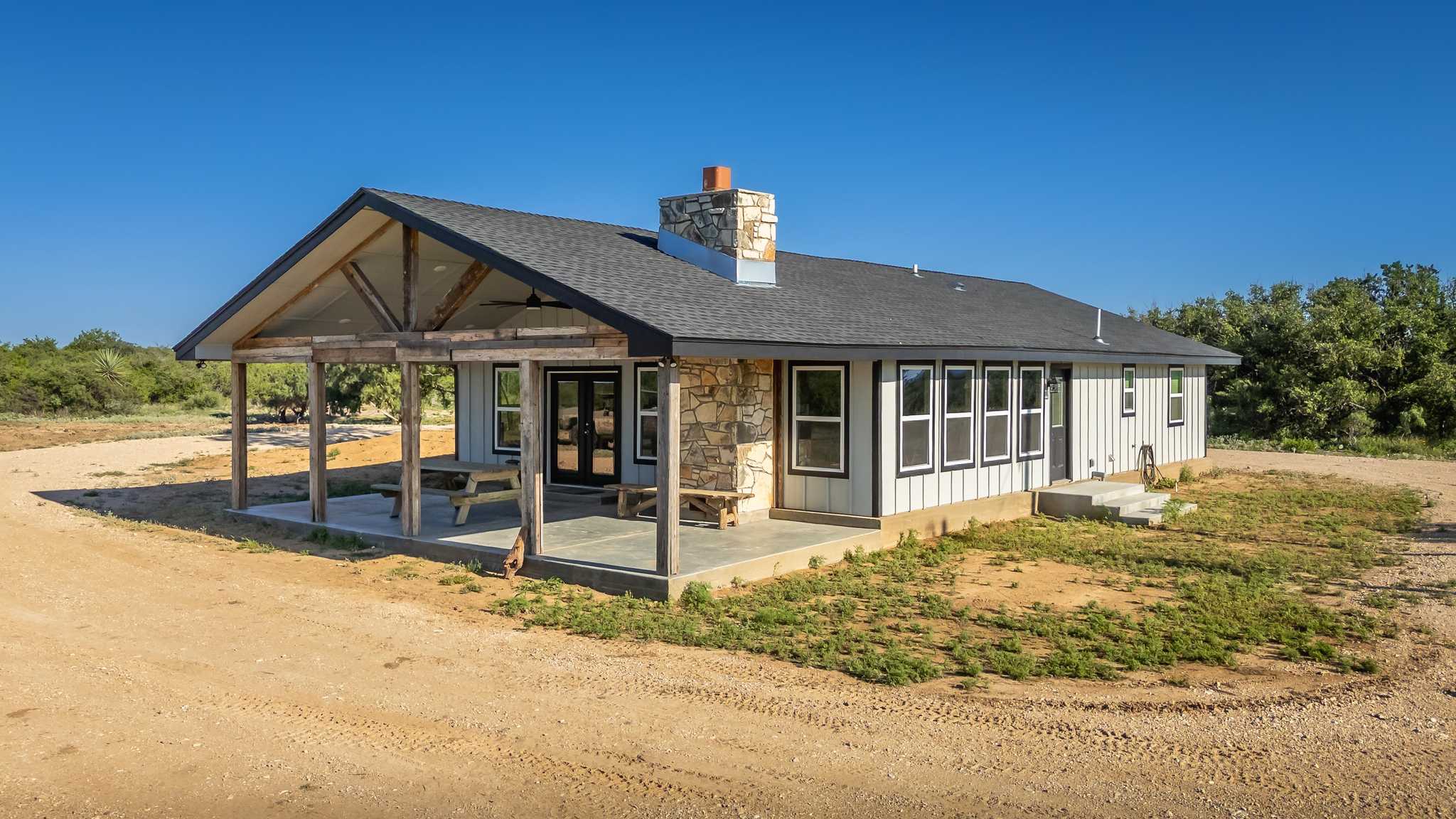 The ranch includes a freshly remodeled 3-bedroom, 2-bathroom home with a large porch, wood-burning fireplace, and sweeping views from its hilltop location. Nearby are two 50-amp covered RV hookups, as well as several improved barns, outbuildings, and older livestock pens.