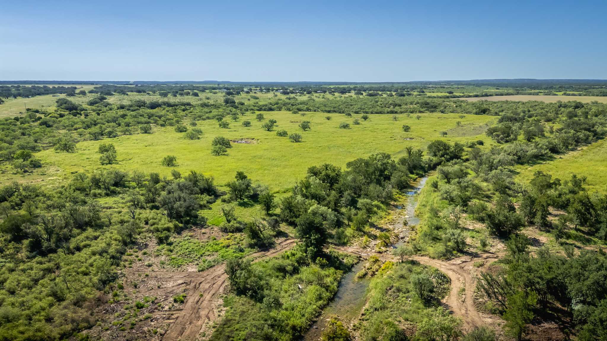 This Central Texas ranch offers highly diverse terrain with rolling elevation changes, expansive views, and a variety of mature trees including live oaks, mesquites, elms, hackberries, and post oaks. Native grasses are well-established and supported by sandy loam soils with a shallow clay pan that helps retain moisture. Brush clearing and mesquite grubbing have enhanced the usable acreage across the property.