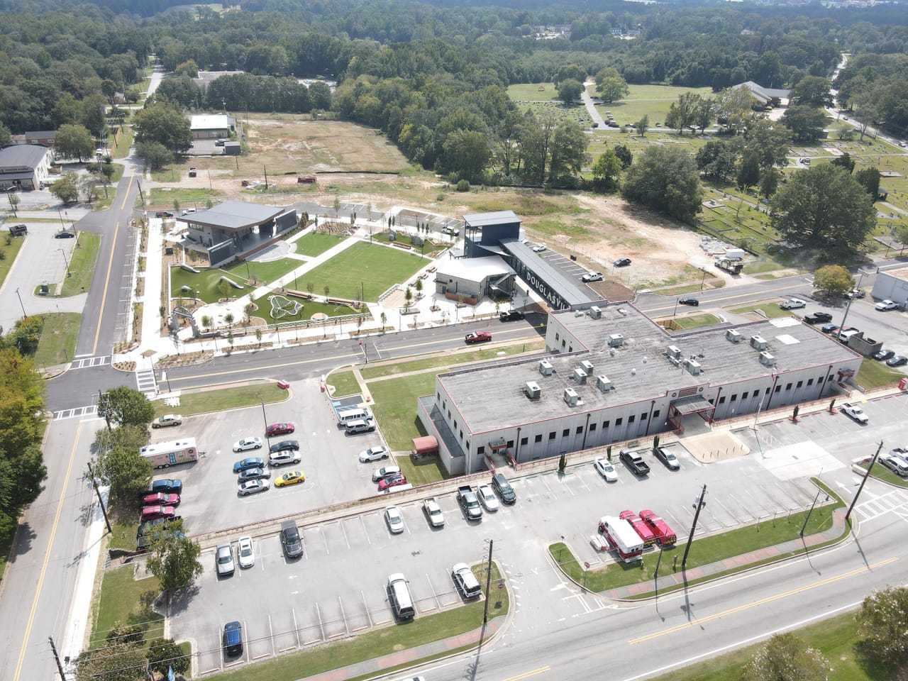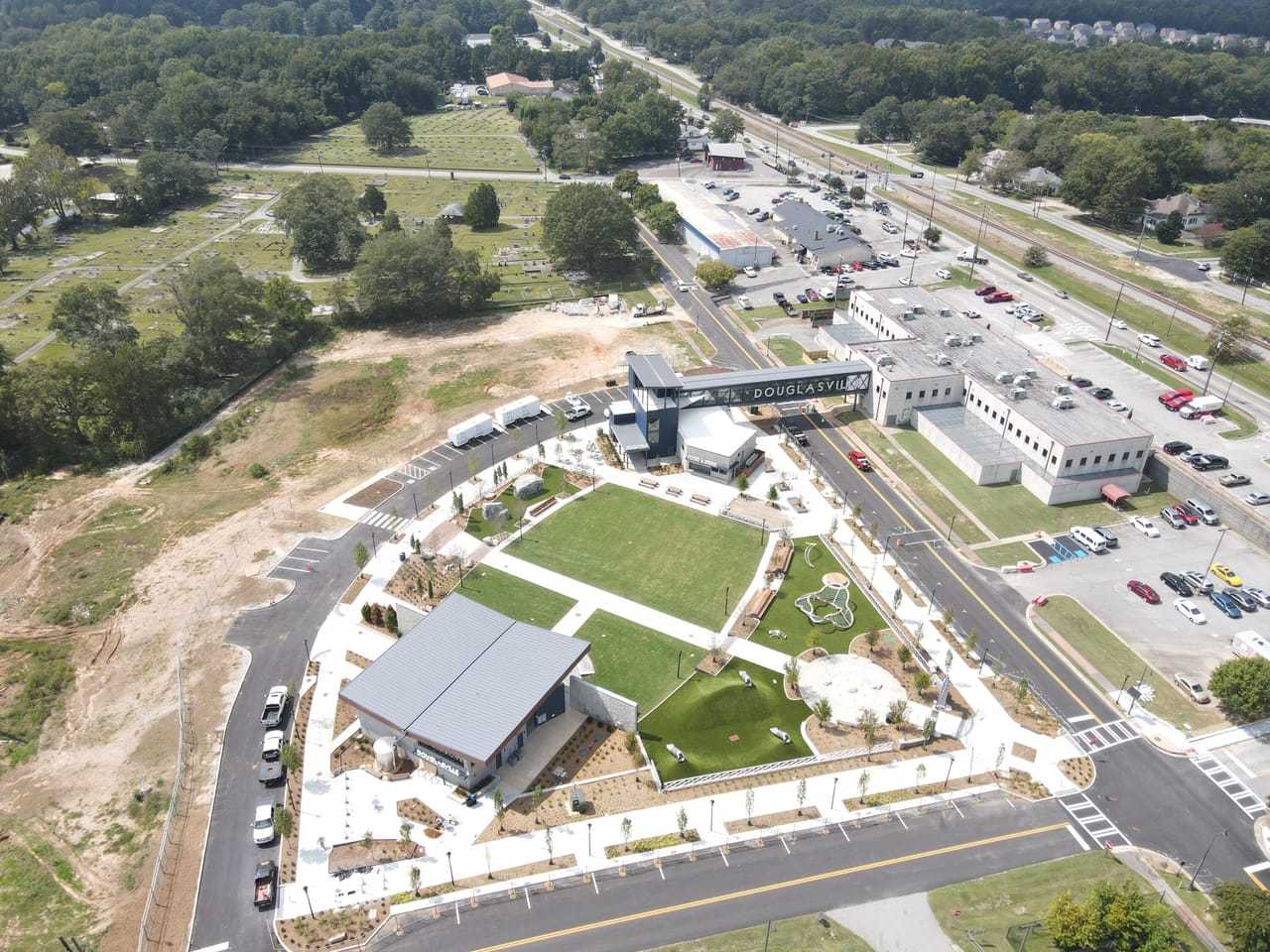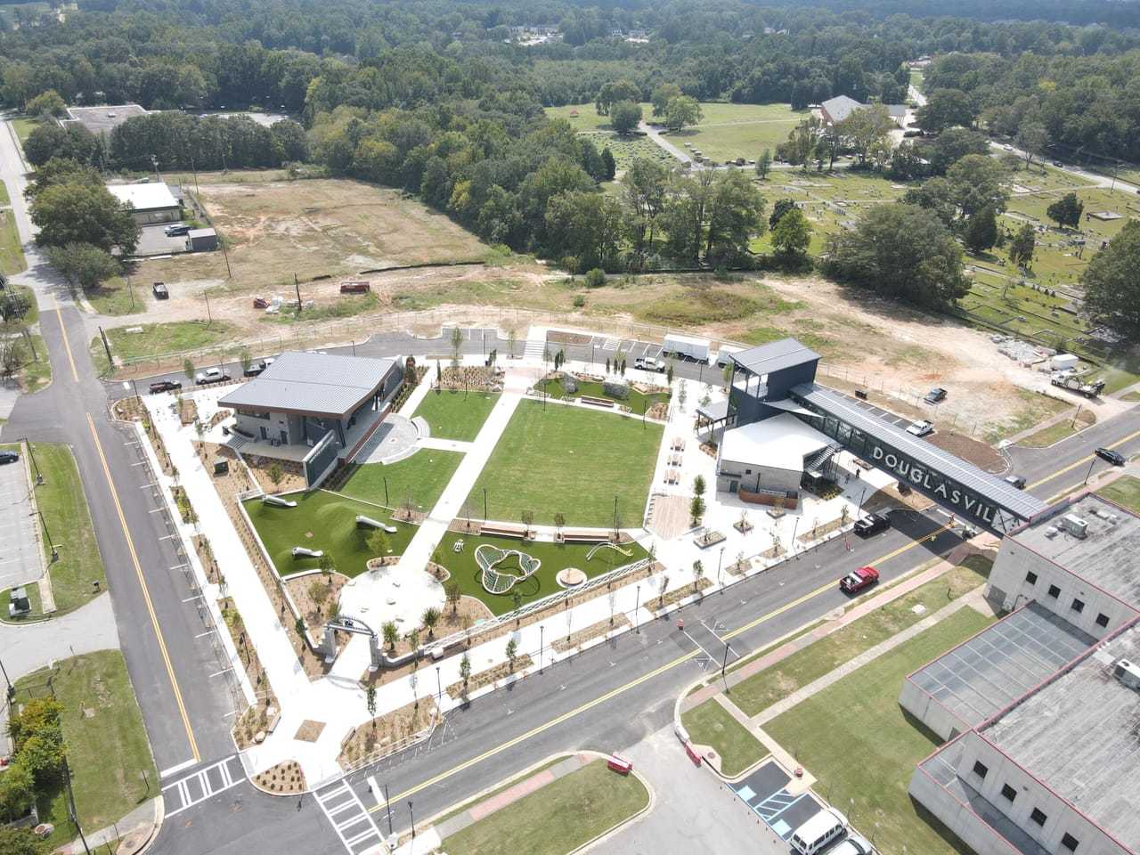 Adjacent to the construction of the new city of Douglasville Town Green. The Town Green will feature the Greystone Power Amphitheater, retail, and multifamily units upon completion.