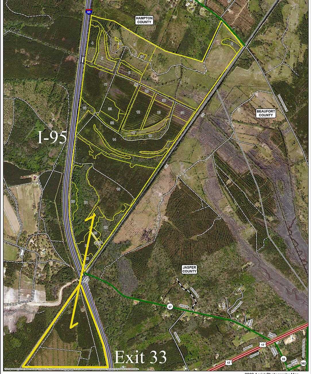 THE TRACT HAS SUBSTANTIAL FRONTAGE ON BOTH SIDES OF I-95 AND AT THE INTERSECTION OF THE CHARLESTON SAVANNAH HWY ON EXIT 33.