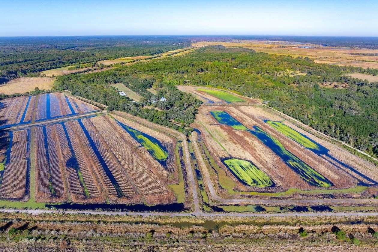 Historic Rice impoundments have been completely renovated with an advisory plan provided by Ducks Unlimited. The improvements included a rehabilitation of all dikes, new trunks and water control structures, clearing canals & ditches and installation of a high-volumes pump with dedicated electric line. Additionally, the original water flow from the Combahee river was restored by removing a damn on the canal from the adjoining federal duck refuge. There are several custom-built duck blinds which can be moved throughout the impoundments and are large enough for three hunters each.