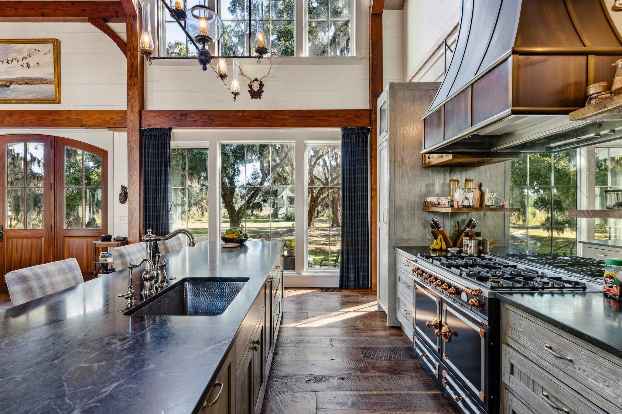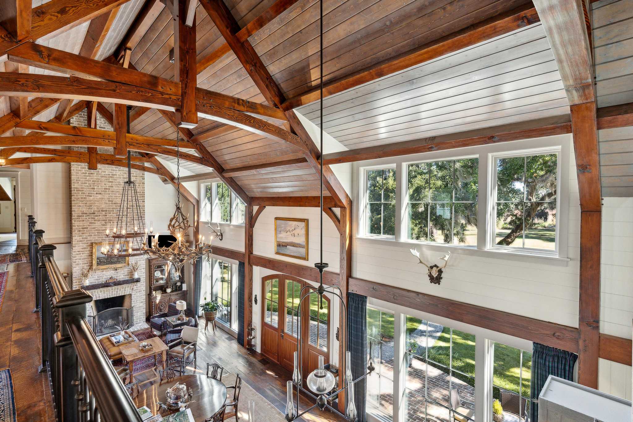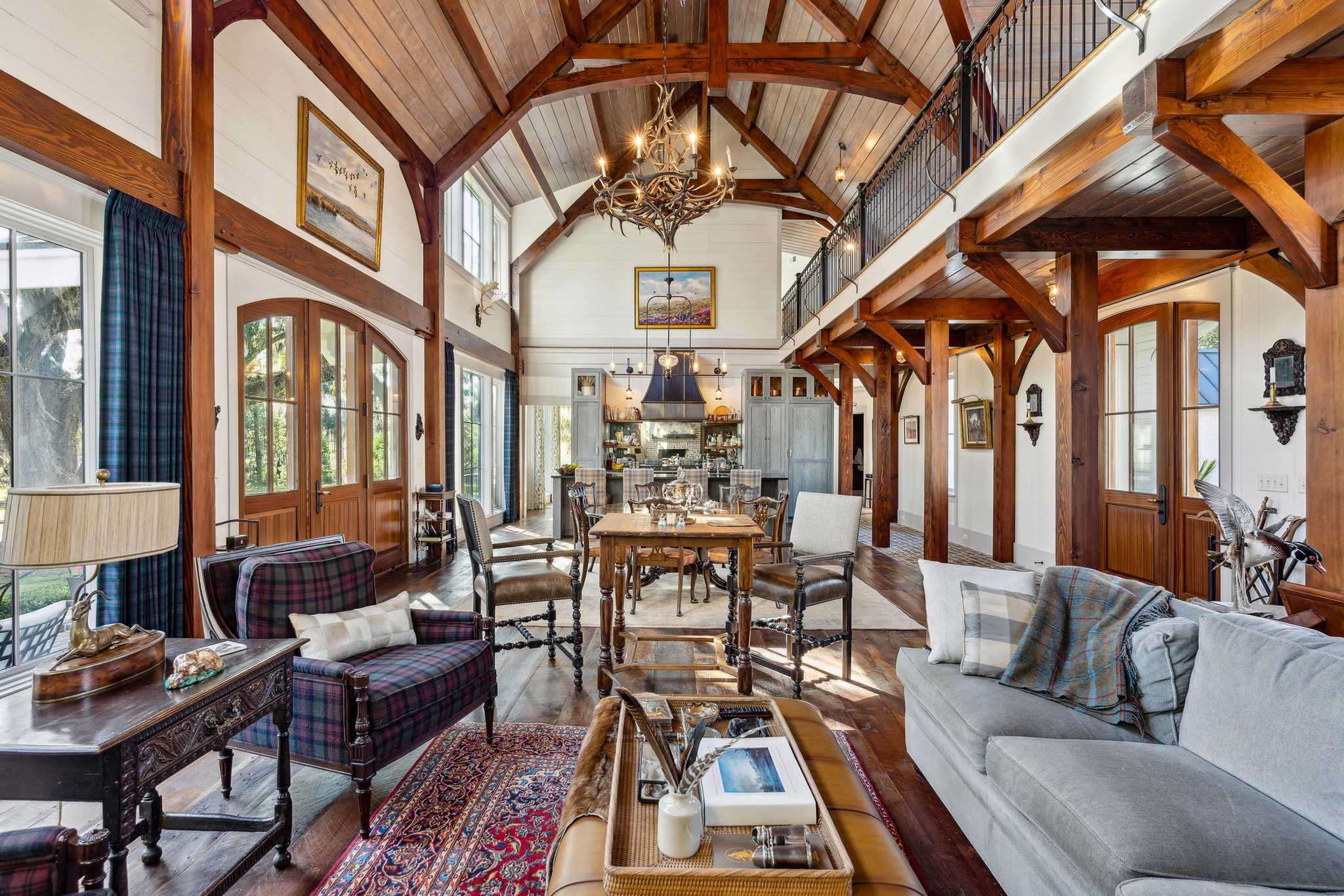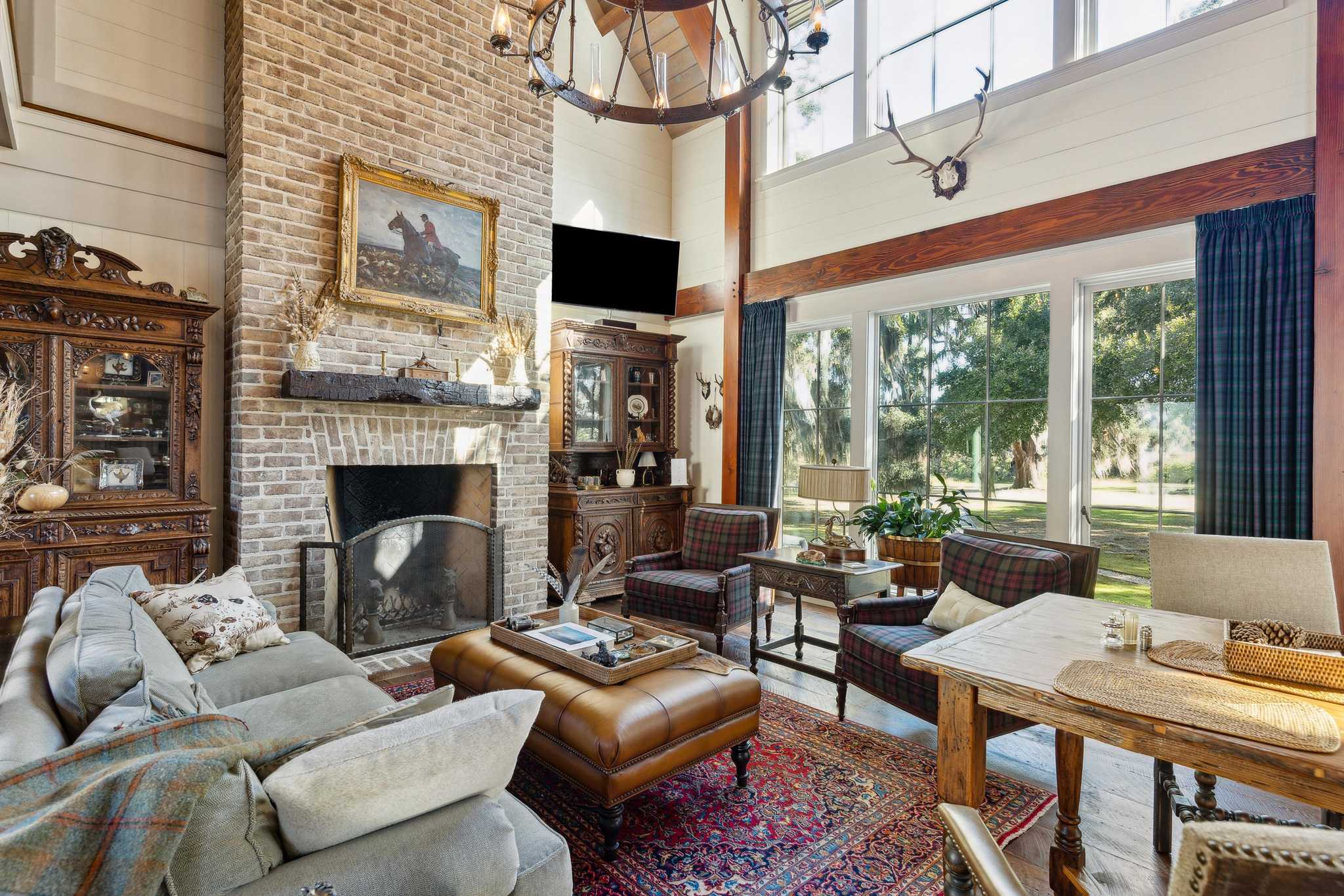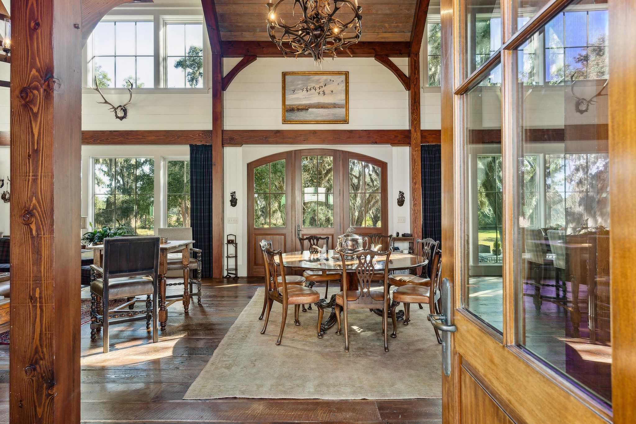 The Kirkfield house is located near horse stables at the end of a peninsular overlooking waterfowl impoundments. The house is spacious, well designed and beautiful. The living room has high ceilings with an open kitchen and dining area. Large windows allow for plenty of light and views of woods, water and wildlife. There are 5 bedrooms and 51/2 baths, a gun room and an office. A three-car garage has upstairs space for a large storage room or an additional bedroom and bath.
