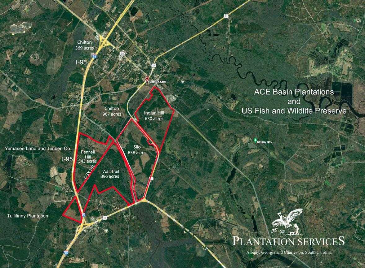 Indian Hill is a hunting and timber tract and part of Buckfield Plantation. It is one of four parcels available. The property is located at the edge of the little town of Yemassee and has substantial paved road and CSX Rail frontage. It is a beautiful property and will appeal to hunters and anyone interested in owning rural property in the path of growth.