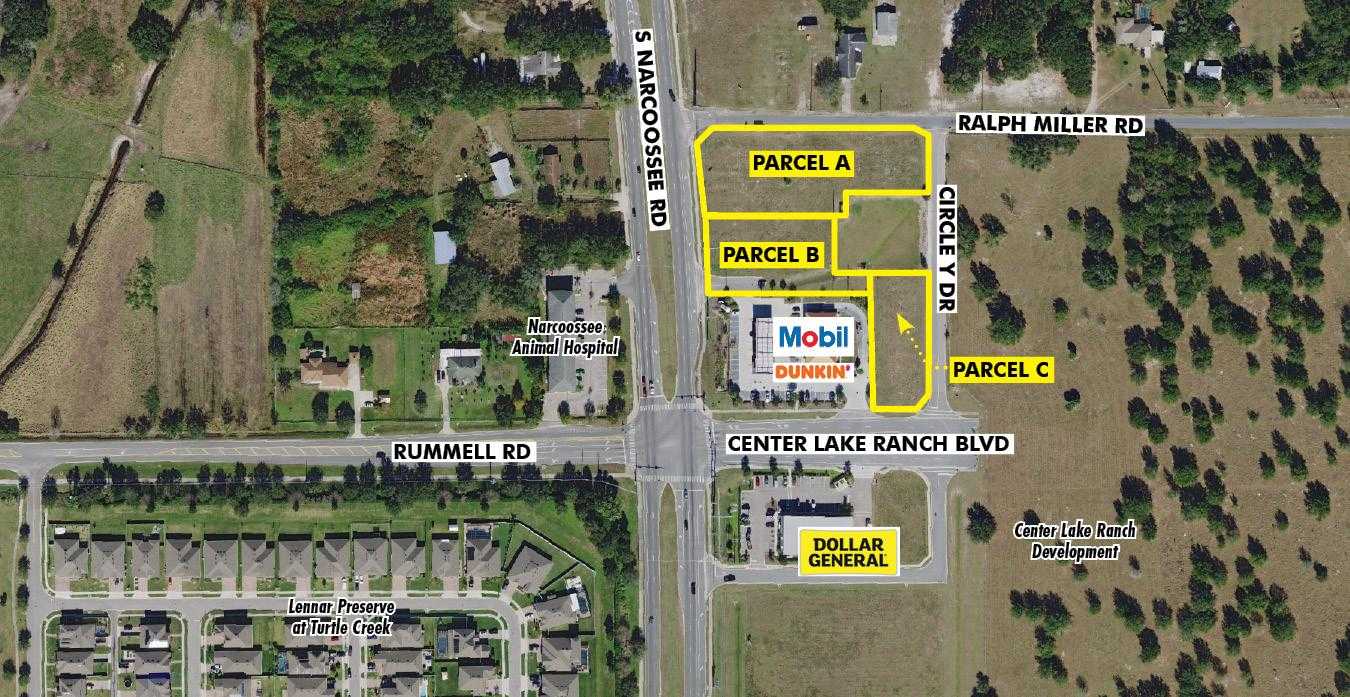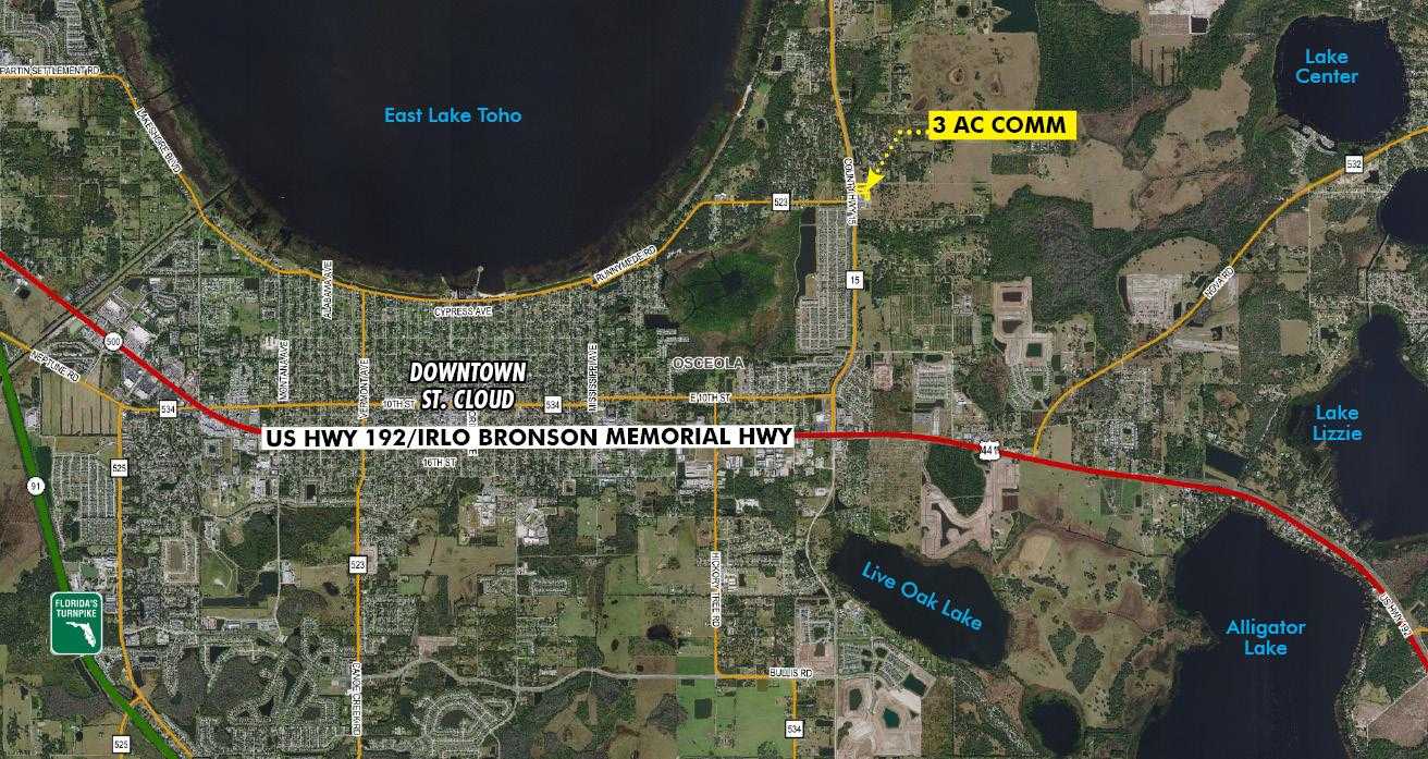 Excellent Development Potential! Located at the gateway of growth in one of the hottest markets in Florida, this property is located on the fast-growing Narcoossee Road corridor with frontage on four roads. This property is zoned commercial and incorporated into the City of St. Cloud. This is your chance to own prime land located at the entrance of Center Lake Ranch, a DRI approved for 3,160 single family attached and detached units, 800 multi-family units, 170,000 sq.ft. of retail, 70,000 sq. ft. of office use and more. For more information on Center Lake Ranch, please see flyer.