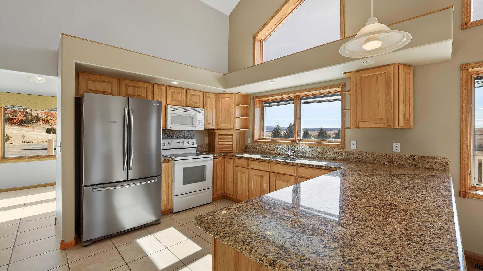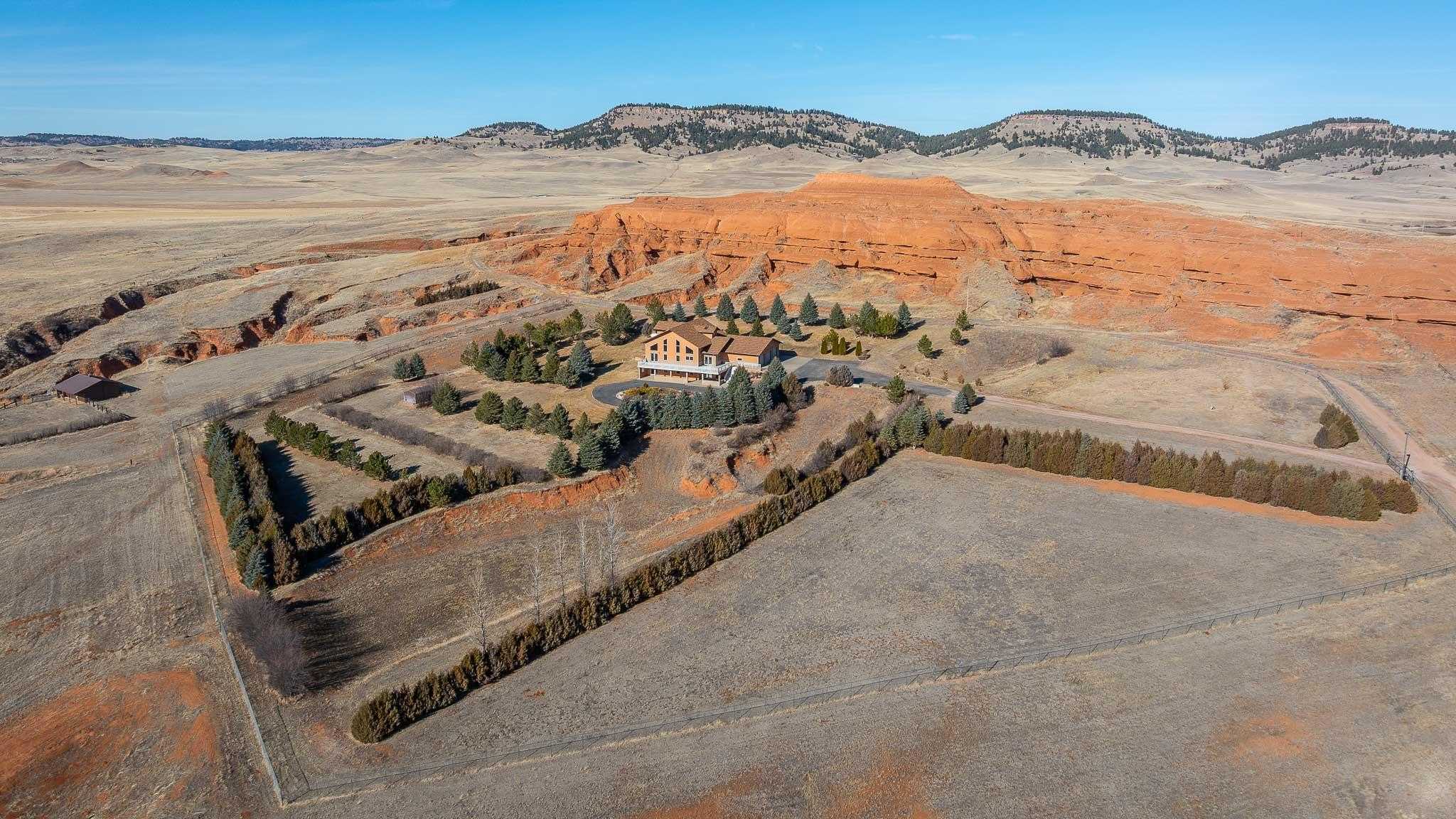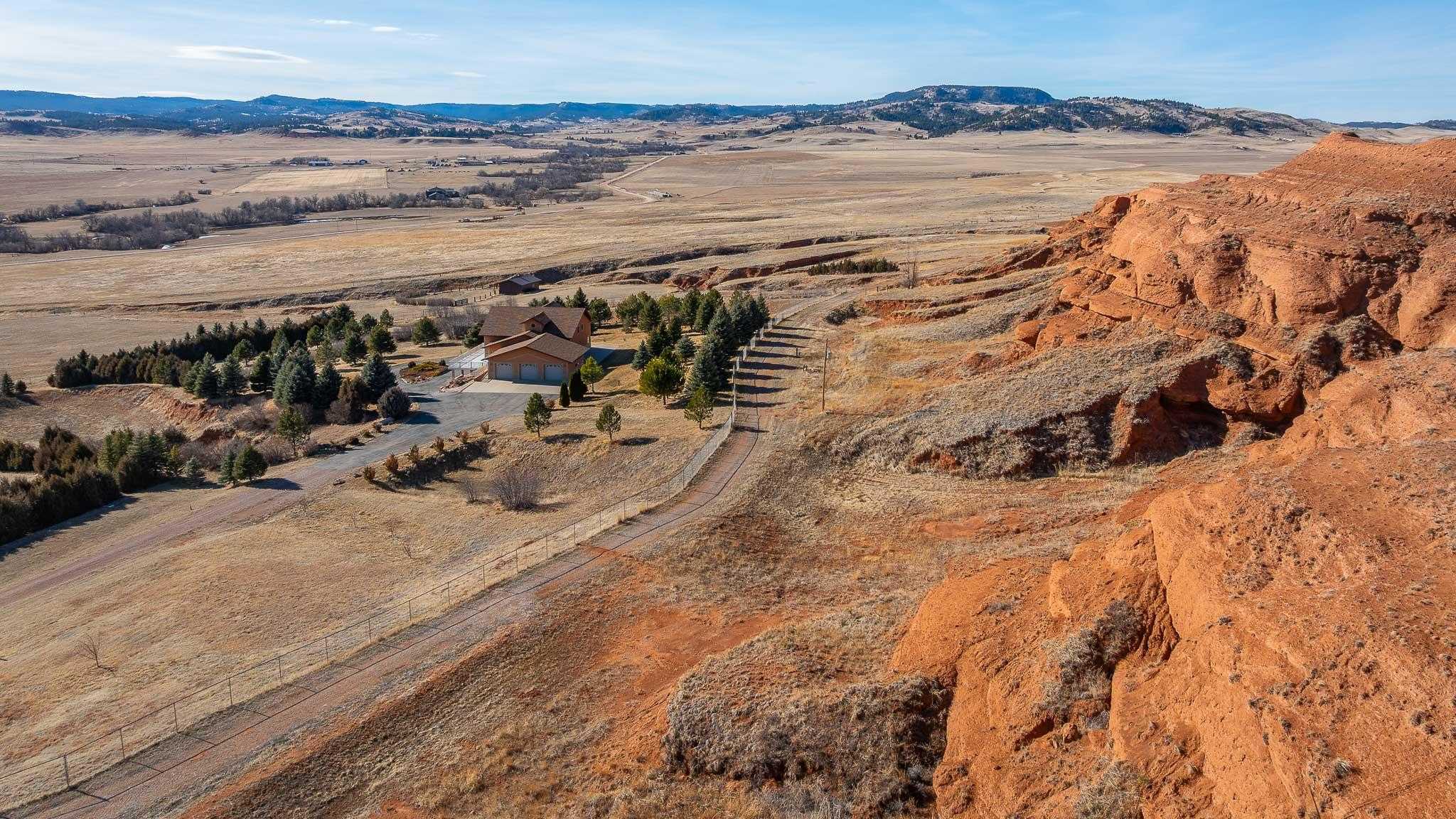 The Oleson Ranchette is a beautifully maintained 59-acre property that seamlessly blends comfort and functionality. Built in 2002, the home is surrounded by a six-foot chain-link fence with an electric automatic drive-through gate, complete with a battery backup for added convenience. Over the years, the owners have thoughtfully planted 1,400 trees, enhancing the propertys privacy and natural beauty. Designed for both equestrian and recreational use, the property includes a well-equipped horse barn with an attached lean-to and tack room, as well as a small shed for additional storage. The breathtaking views of Crow Peak to the southeast and the Bear Lodge Mountains to the west add to the propertys scenic appeal. With its ample space and versatile layout, the home is ideal as a private retreat or hunting lodge. A durable three-rail sucker rod fence lines the county road, contributing to both the propertys charm and security.