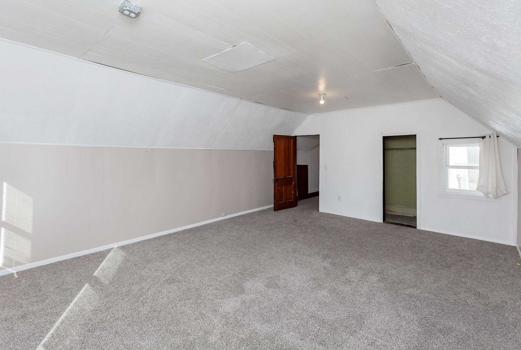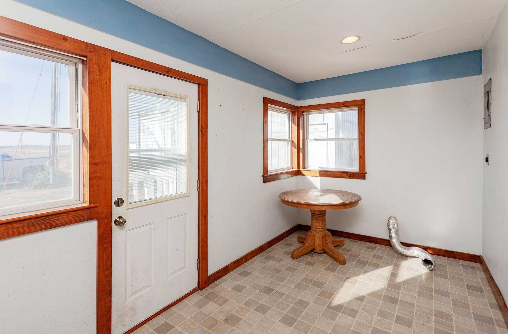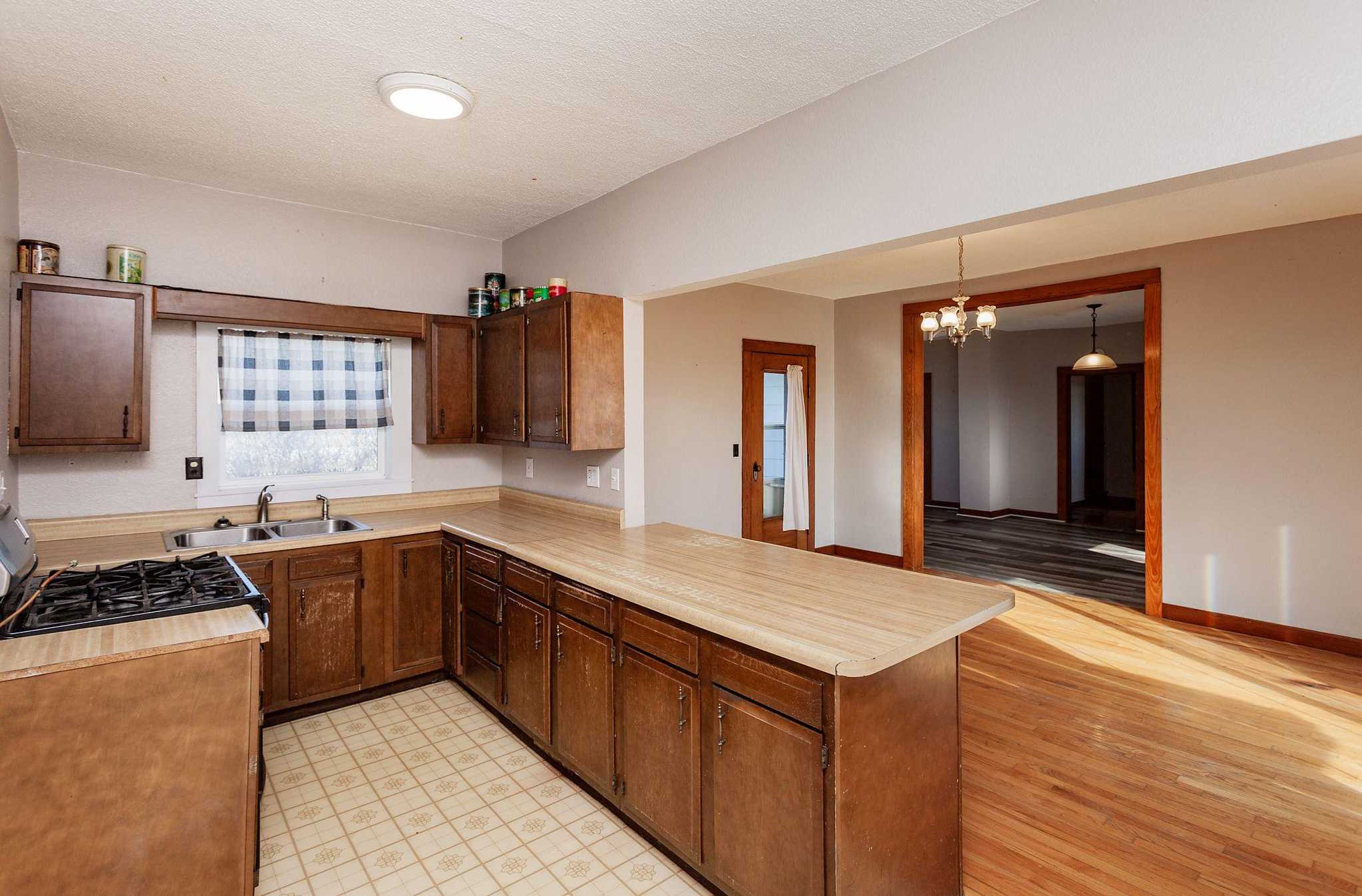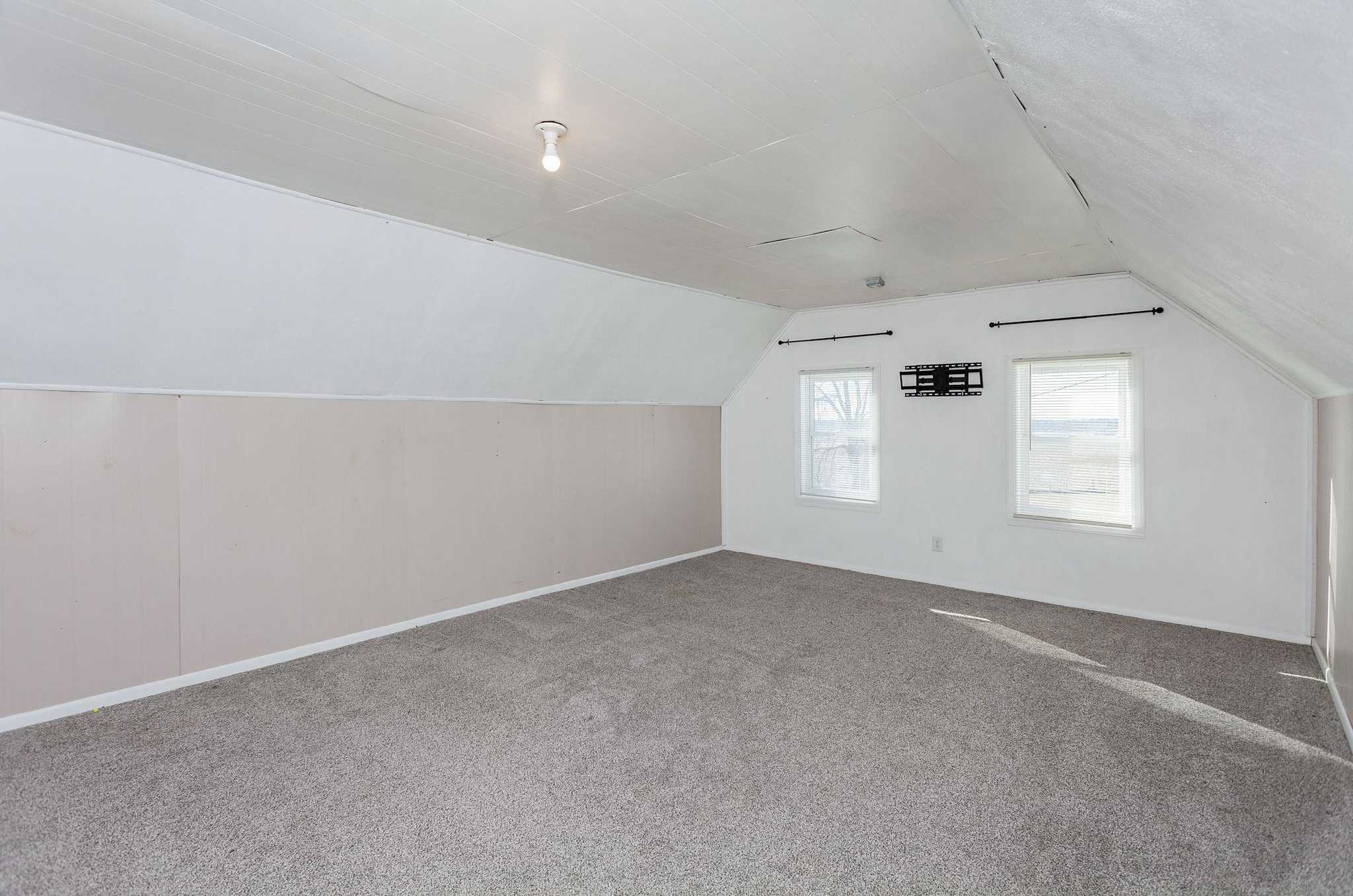 The farmhouse is an early-1900s, 1 1/2-story home with 1,523 square feet of finished living space, featuring 3 bedrooms, 1 bathroom, central air, and heat. The main level is an open concept, with a spacious living room and kitchen. The home has been well maintained with various improvements over the years, including a newer roof, newer flooring, and more. Additionally, there is an oversized 26' x 30' detached two-car garage, along with two farm buildings: a 44' x 60' steel shed with concrete floors and a red, rustic 1950s pole barn.