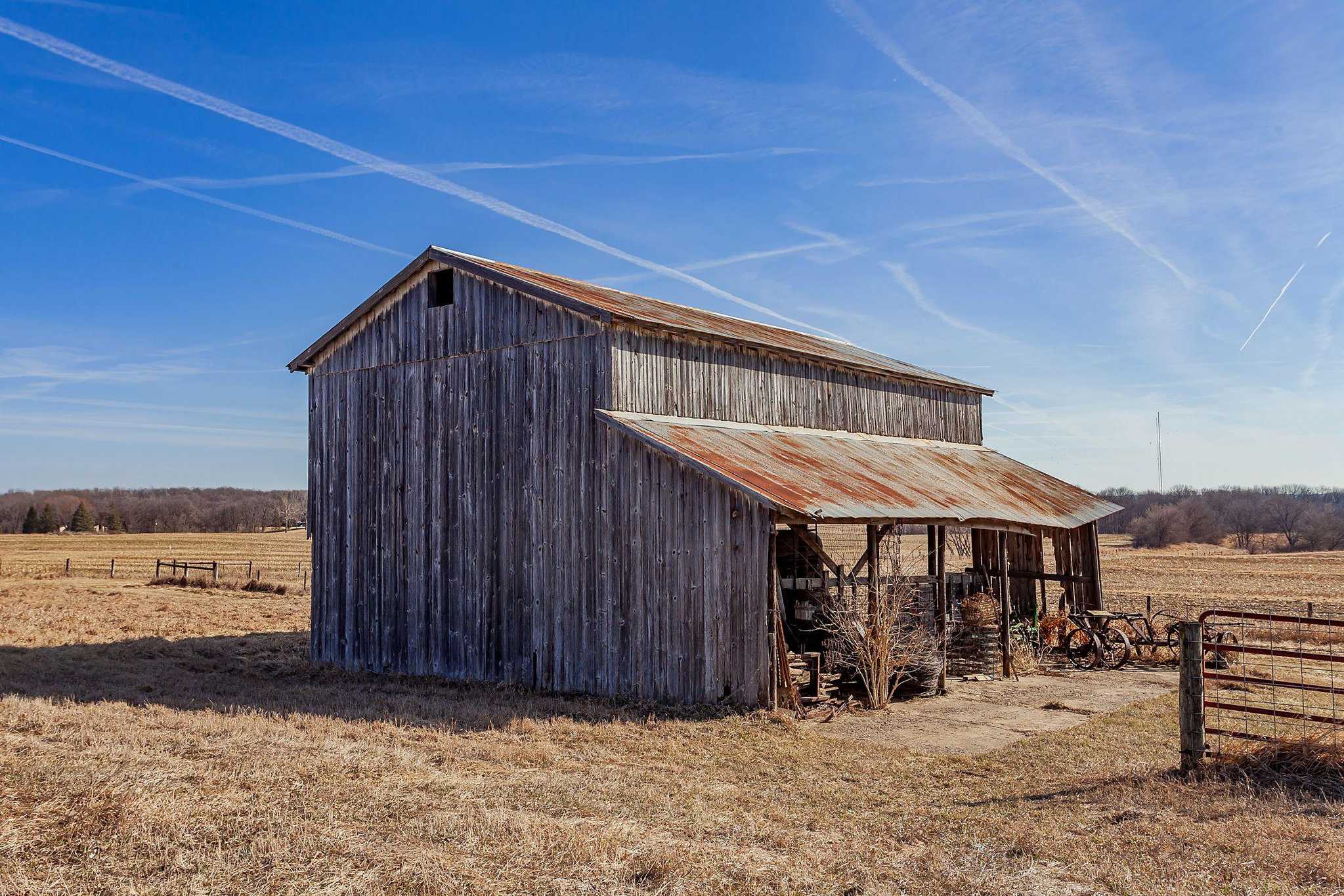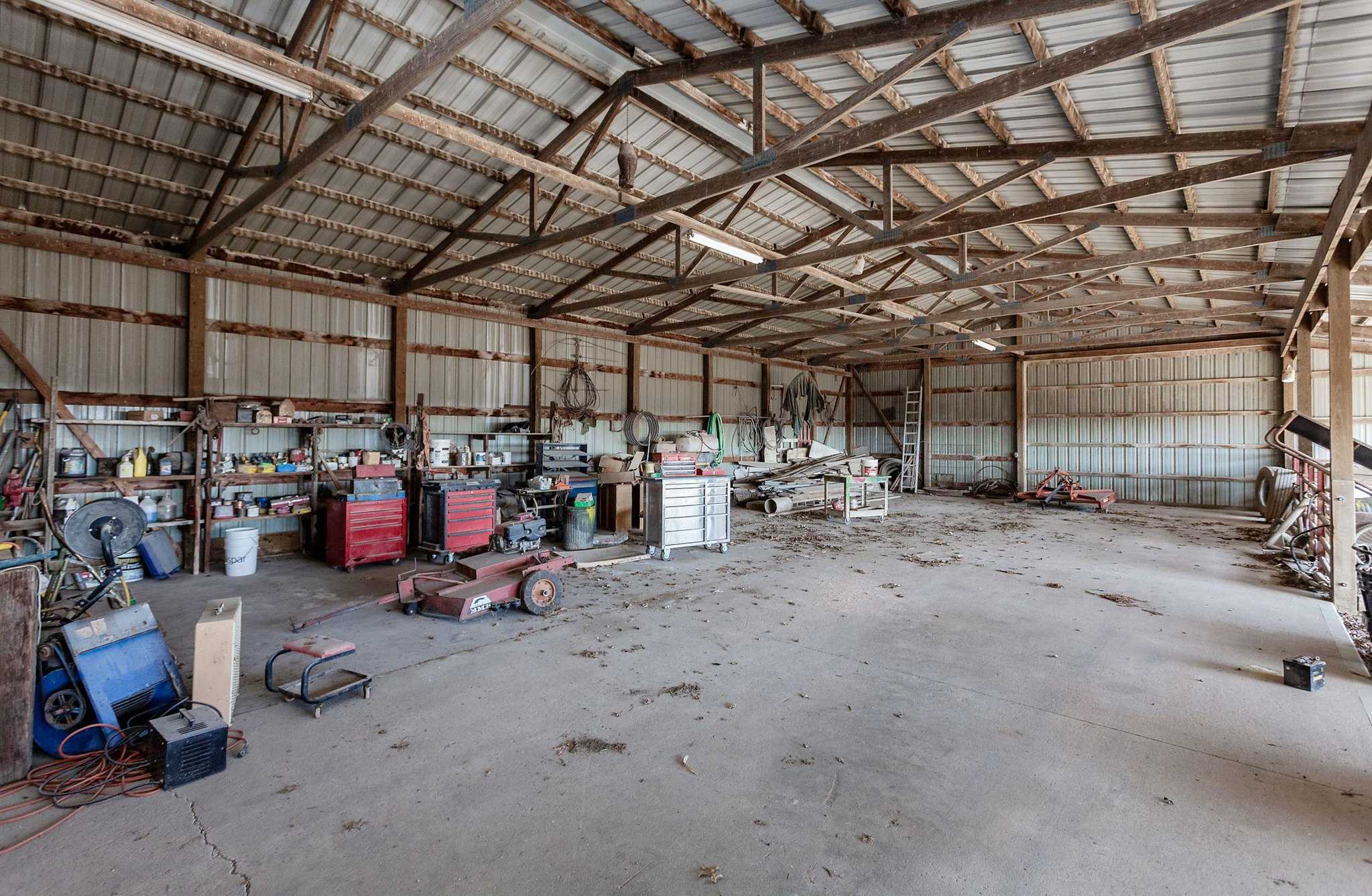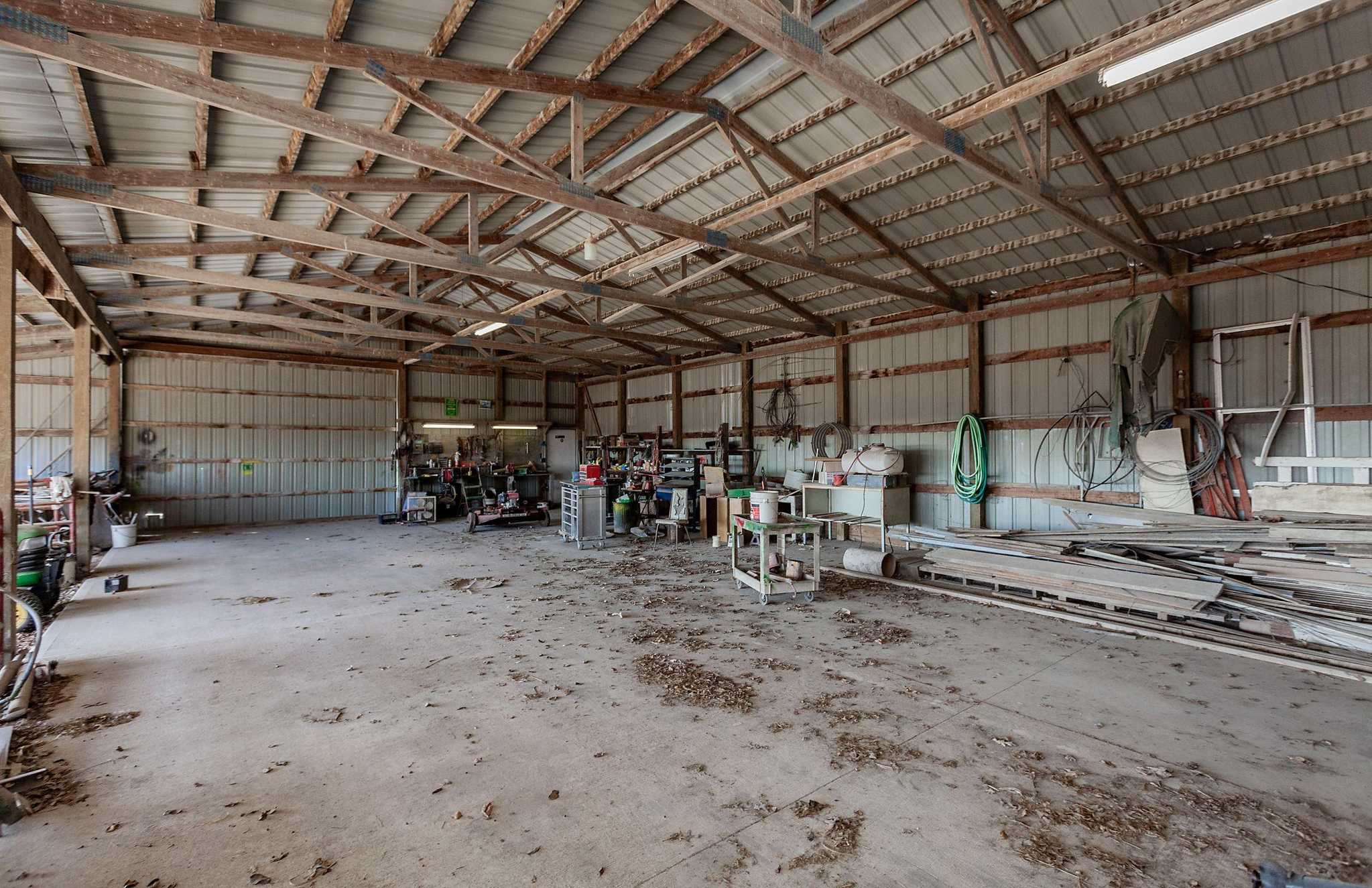 Improvements:44' x 60' steel shed with concrete floors, a red, rustic 1950s pole barn, 2 ponds, drainage tile, terracing, fence.