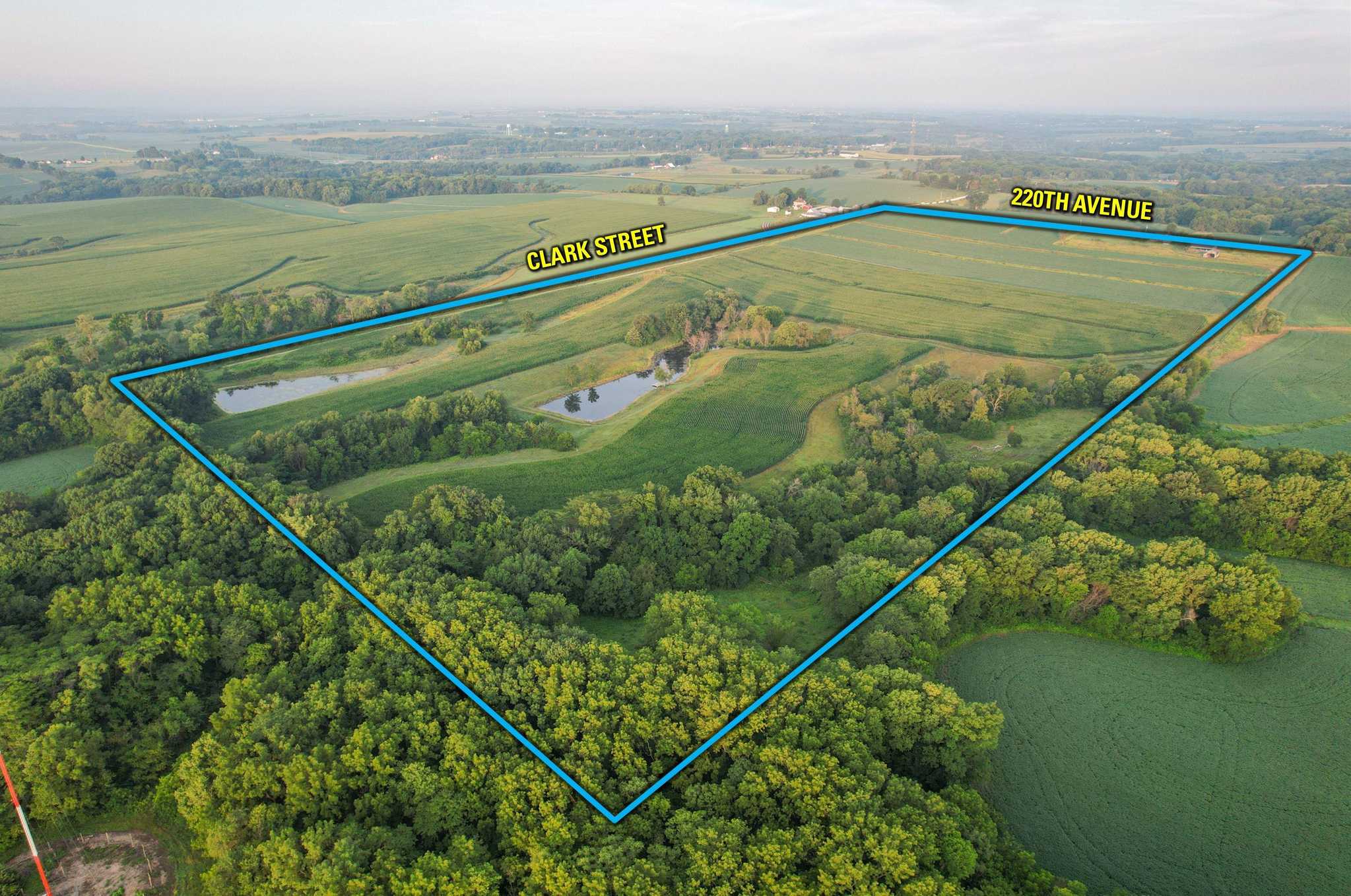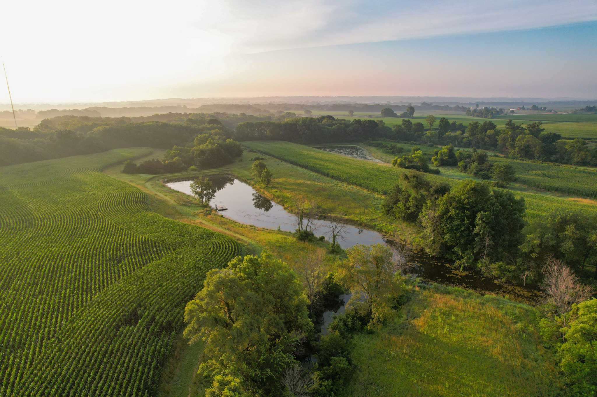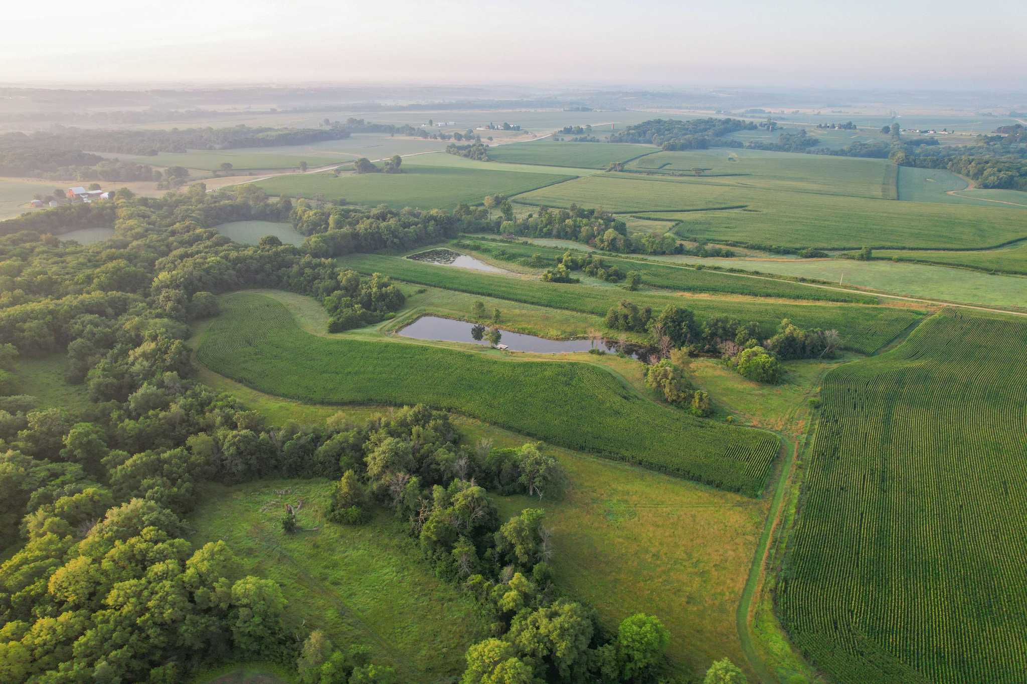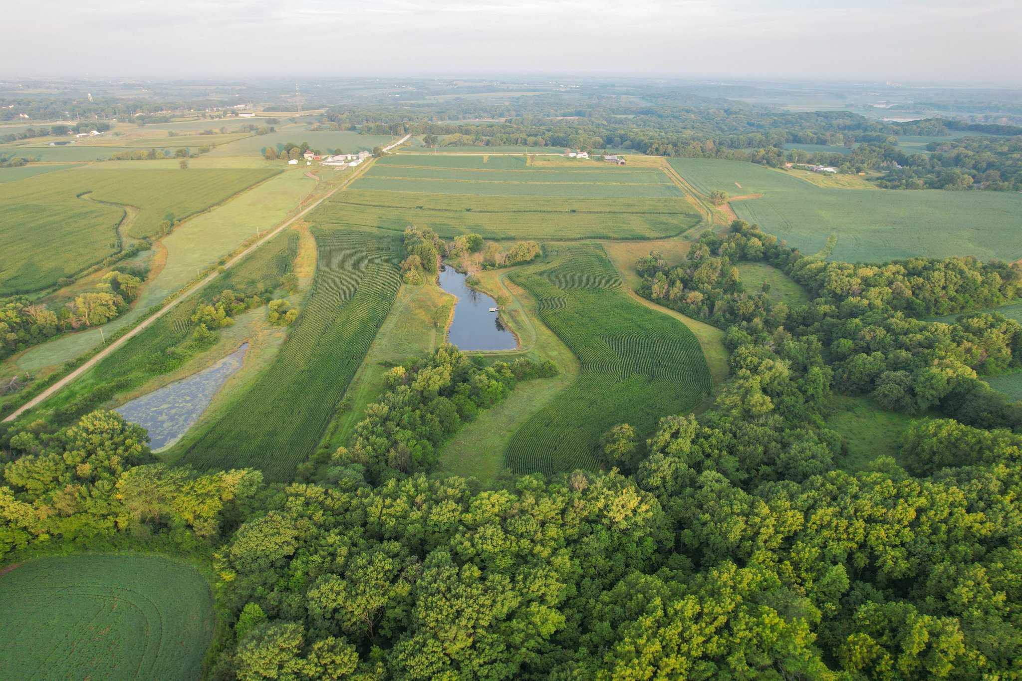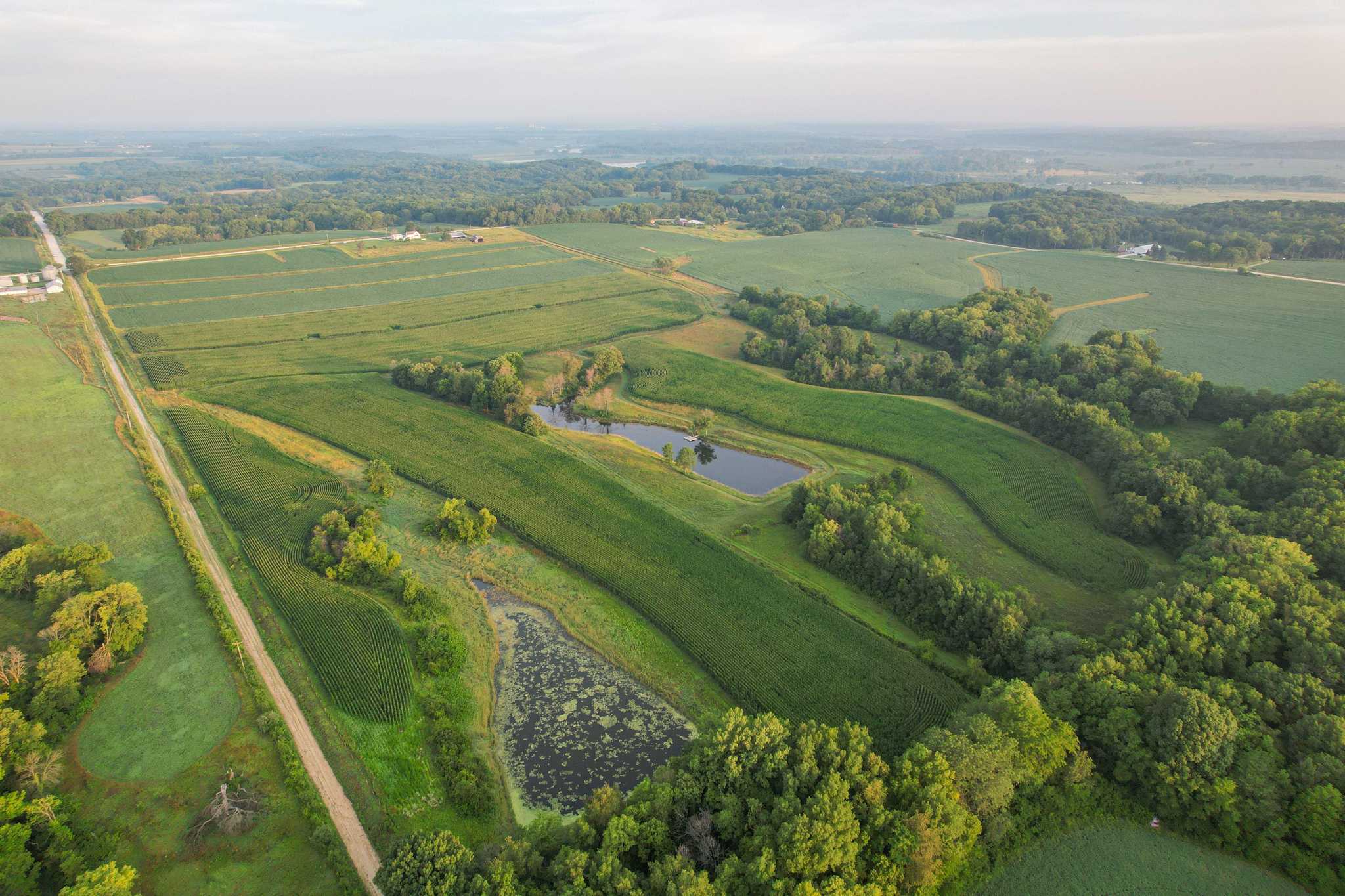 The land includes an estimated 49.65 acres in row crop production, carrying an outstanding CSR2 rating of 86. The tillable ground features primarily Downs silt loam, one of the more productive soil types in Iowa. The tillable acres have been terraced to limit erosion, and there is known to be some tiling throughout the farm. The remainder of the farm consists of hay ground, oak and cedar thickets, ponds, and grass buffer strips. This property offers an excellent combination of highly productive land as well as scenic, recreational land for enjoyment.