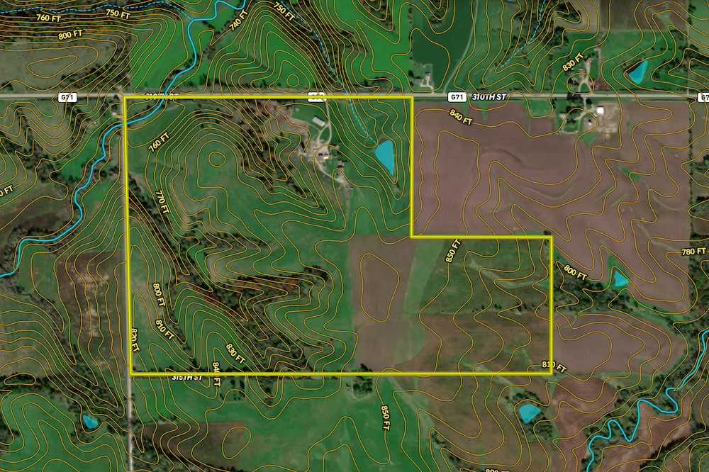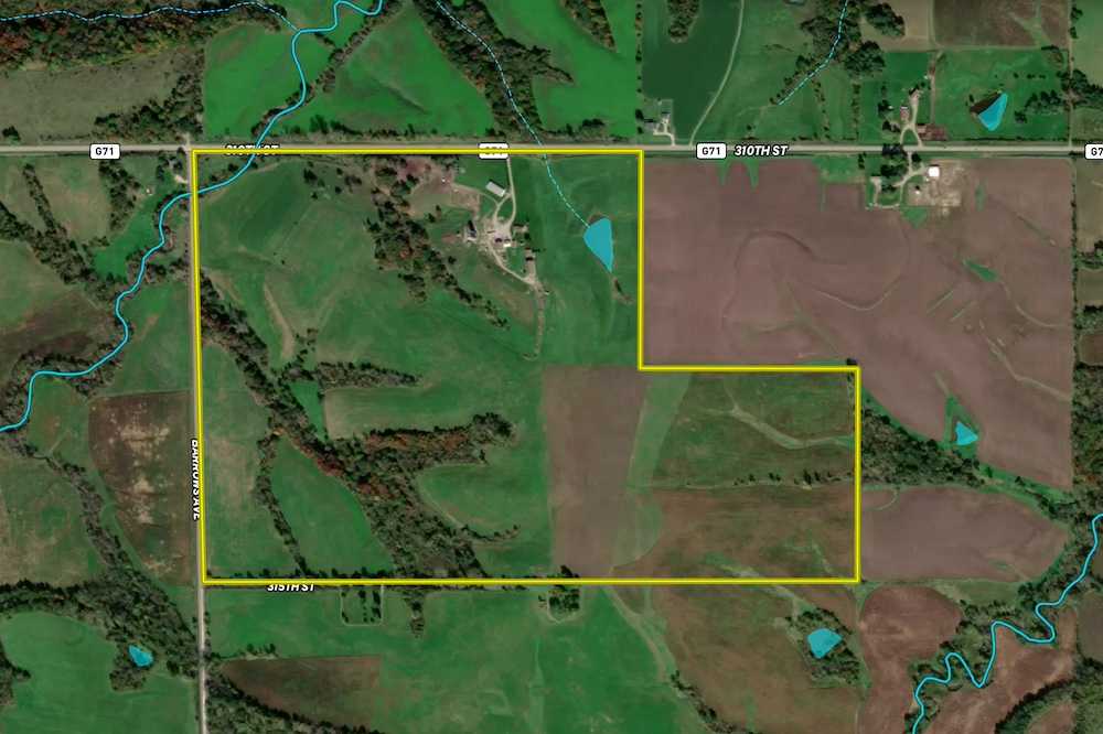 Set on a rural country hilltop, this property offers a unique combination of living space, agricultural infrastructure, and natural features. The one-bedroom (plus one non-conforming bedroom), 2.5-bathroom home is located just above a small pond, providing a peaceful view from the house. Built for practicality, the home is accompanied by a concrete-floor garage and a separate concrete-floor shop nearby, ideal for storage, repairs, or workspace.Two machine sheds, two grain silos, and two additional outbuildings support farming operations, with plenty of space for equipment and materials. The land includes 23 m/l acres of productive cropland and 99 m/l acres enrolled in the Conservation Reserve Program, paying roughly $25,082 per year and expiring in 2027, providing a mix of annual income and long-term land management. Native grasses cover much of the open acreage, while wooded draws create natural corridors for deer and other wildlife to travel, making great pinch points or food plot locations for hunting.Access points on multiple sides of the property allow for easy movement of equipment and vehicles. The open terrain, mixed with timber and water, creates a well-balanced landscape that supports a variety of usesfrom crop production to recreation. Whether you’re looking to expand a farm operation, create your own detailed hunting setup, invest in valuable Iowa income-producing ground, or live simply with functional infrastructure, this property offers the foundation.Contact the Whitetail Properties Real Estate listing agents Ben Harshyne or Gabe Adair to schedule a showing.