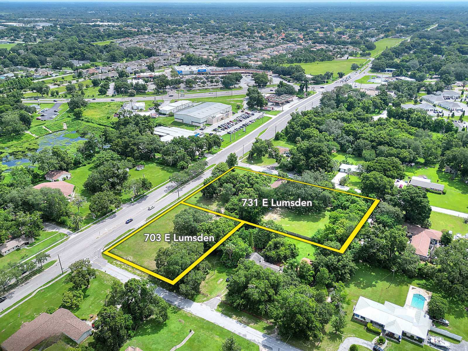Excellent opportunity for a highly visible 0.90± acres (703 E Lumsden Rd). This property offers a unique opportunity to develop a strategic location with flexible use options in a rapidly expanding market. The current zoning is RSC-2 with a future land use of RES-4, allowing for a variety of development options including neighborhood commercial, office, multi-purpose, or mixed-use projects. This is an extremely convenient location, catching commuting traffic heading into Tampa, just 4± miles from the Selmon Expressway and 4± from the I-75 on ramp.