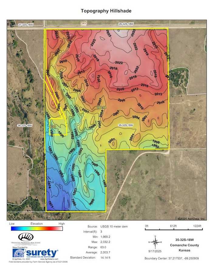 This 196.9 +/- acre tract in Comanche County, Kansas, is located southeast of Coldwater, KS. The property is in hunting Unit 16 and offers a combination of cover types suitable for wildlife habitat and multiple recreational uses.The terrain features thick grass, scattered timber, and a marshy band on the western side of the property. These natural features provide varied habitat structure which supports deer, turkey, and upland game. Two established food plots are present, along with multiple feeders already in place. A windmill offers a consistent water source. The grass across the property is in good condition, which aids both habitat quality and ease of access.Wildlife cover is excellent thanks to a mix of grass, marsh, timber, and food plots. The marshy area adds wetland edge habitat beneficial to waterfowl. The timber provides roosting or hiding cover for turkey and deer.Hunting opportunities include potential trophy deer, turkey, and various upland game species. The diversity of cover (grass, timber, marsh) enhances habitat for a range of wildlife. The existing feeders and food plots help attract and support game. Water supplied via windmill ensures a water source for wildlife and possibly for livestock.While habitat improvements are minimal, there is room for adding trails, lodging, blinds, and additional food plots. Grass health is good, reducing the need for basic rehabilitation. The propertys mix of terrain gives flexibility for land management strategies.This is an incredible opportunity to have a great recreational piece of land in one of the best hunting units in the state. Showings are by appointment only; please reach out to the listing agent to set up a private viewing.