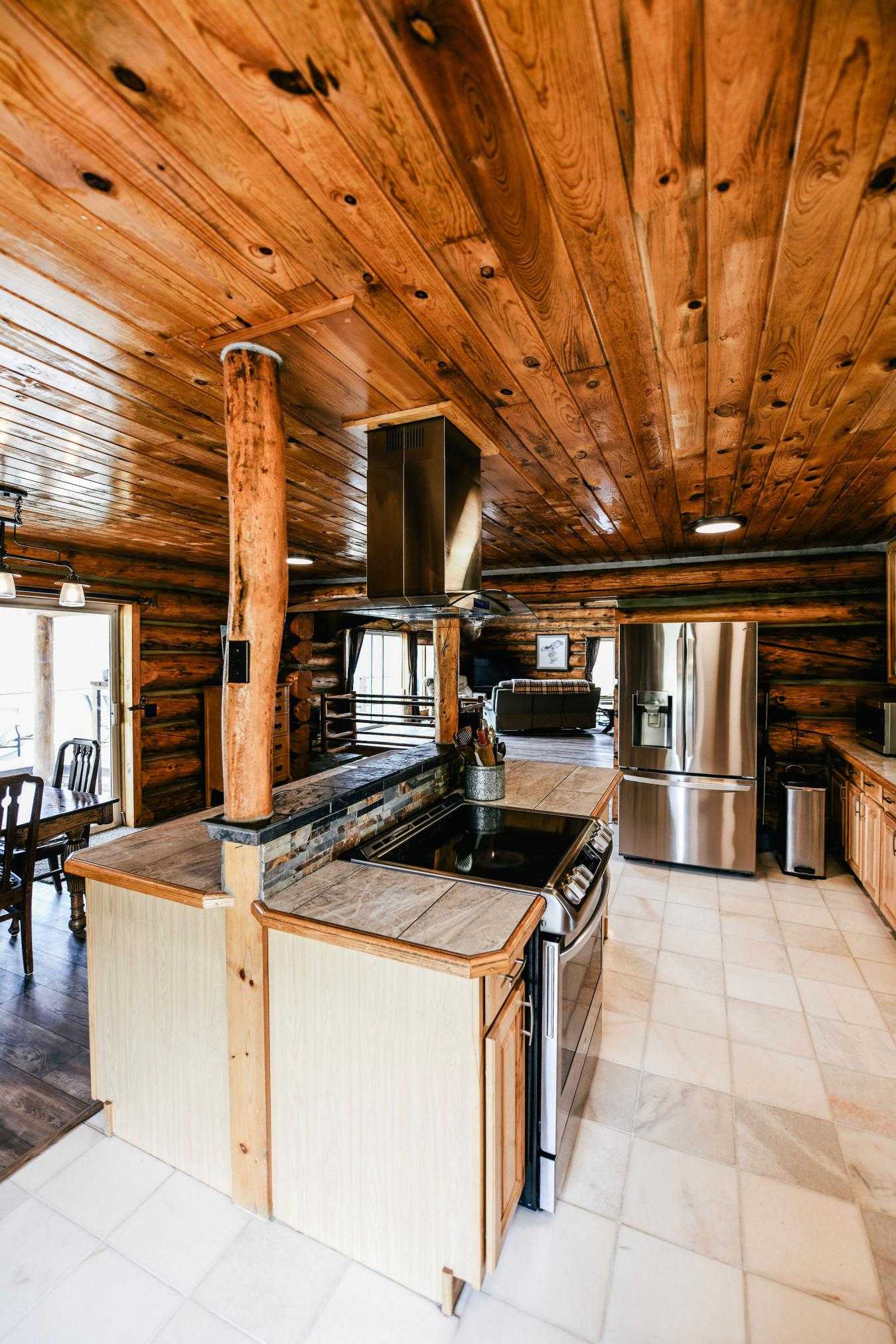 Discover luxurious mountain living with this stunning three-level log home on 28 acres and the most beautiful view in the valley! Relax on the custom-built deck overlooking the Continental Divide and the Salmon River. Inside, the home boasts an open-concept kitchen with excellent work-flow, African marble floors, hickory cabinets, and stainless appliances, flowing into a spacious living room with massive, hand-hewn logs, open beams, vaulted ceiling, big picture windows and a cozy wood stove. The main level includes a bedroom an office/library/media room, and a gorgeous, newly updated bath. Brand new flooring installed on main living area. Upstairs, the primary suite features a walk-in closet, walk-out balcony, and a cozy ensuite with a jetted tub and tiled shower; new flooring to be installed soon. The lower level offers a large bedroom, bath, laundry, and ample storage, complemented by a two-car garage and workshop. The property features water rights, gravity-fed underground irrigation, a 40x45-foot barn with power, and pasture for livestock. Surrounded by mature trees and bordering a seasonal creek, this estate is near public lands with unlimited hiking, horseback riding, fishing and 4-wheeling opportunities. Schedule your private showing today!