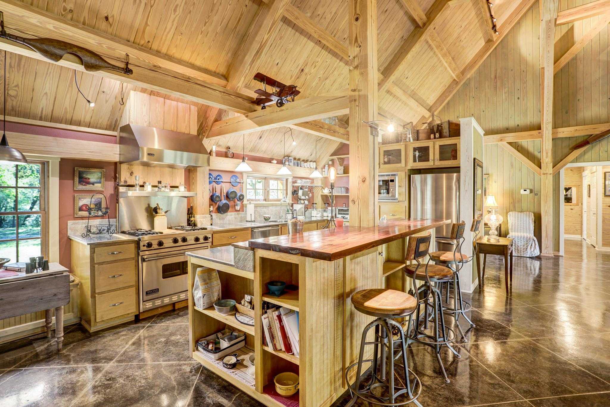 If privacy in the woods is what you're looking for, you've found it! A lovely 3/2 custom timber-framed home sits on 14.84 acres of wooded bliss. The ceilings in the great room soar to 25'. The stained and scored concrete floors throughout the main floor are gleaming. The wood burning fireplace is surrounded by stonework from a local artisan and the kitchen includes a Viking range and stainless countertops. Upstairs the family room could easily accommodate a sleeping area and a media room with lots of room for games. The upstairs deck off the game room give a birds eye view of the surrounding countryside. A 2-car carport is a great place for parties. A unique water system includes a 10,000 gallon rainwater catchment system that feeds purified water into the house. A water well services the outdoor water needs including a sprinkler system. Easily accessed from Hwy 71, the property is less than a 15 minute drive from La Grange or 45 minutes from downtown Austin.