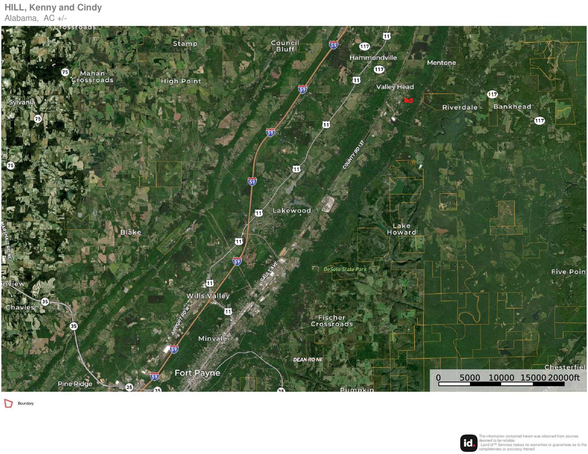 At The Hill 14, you'll find 14.34 acres at the base of Lookout Mountain in quaint Valley Head, Alabama, just a short drive to the historic town of Mentone, Alabama. Additionally, the property is conveniently located 43 miles from Chattanooga, Tennessee, and only 10 miles from Fort Payne, Alabama. For those seeking access to urban centers, the property is within 70 miles of Huntsville, Alabama, and a little over 100 miles from both Atlanta, Georgia, and Birmingham, Alabama. This prime location offers an ideal balance of scenic countryside living and accessibility to key regional destinations, making it an appealing opportunity for land and other investors looking to invest in the area.