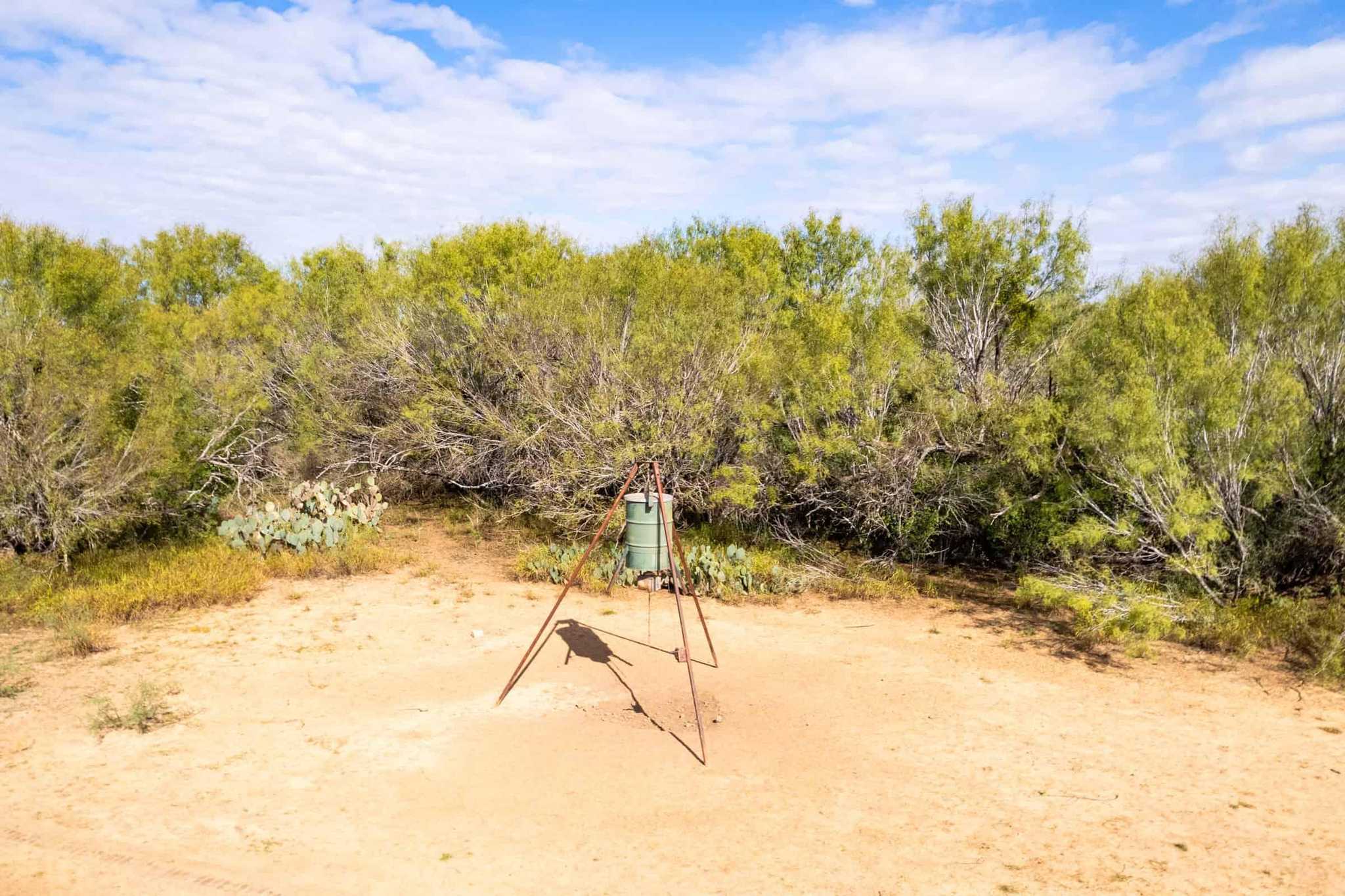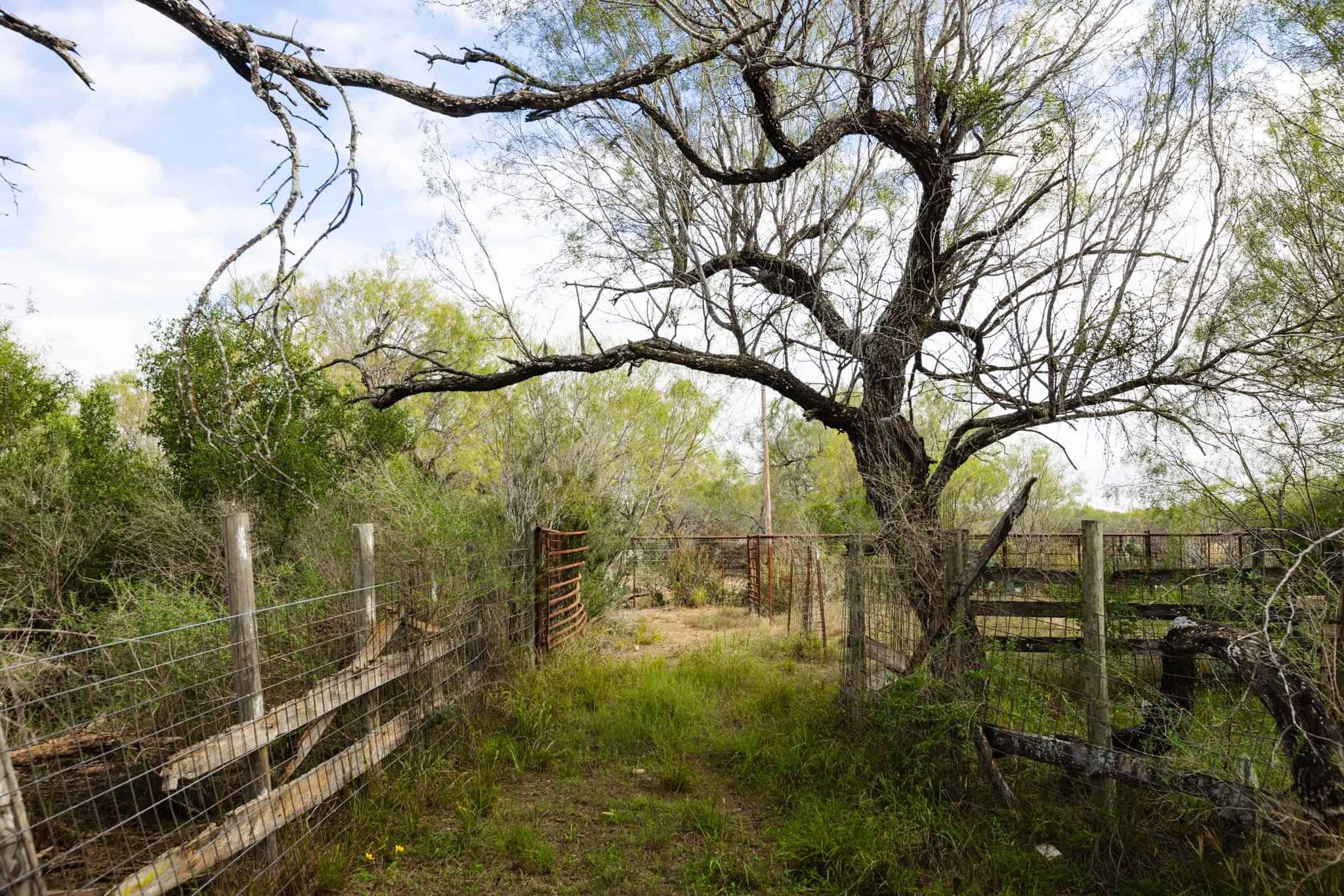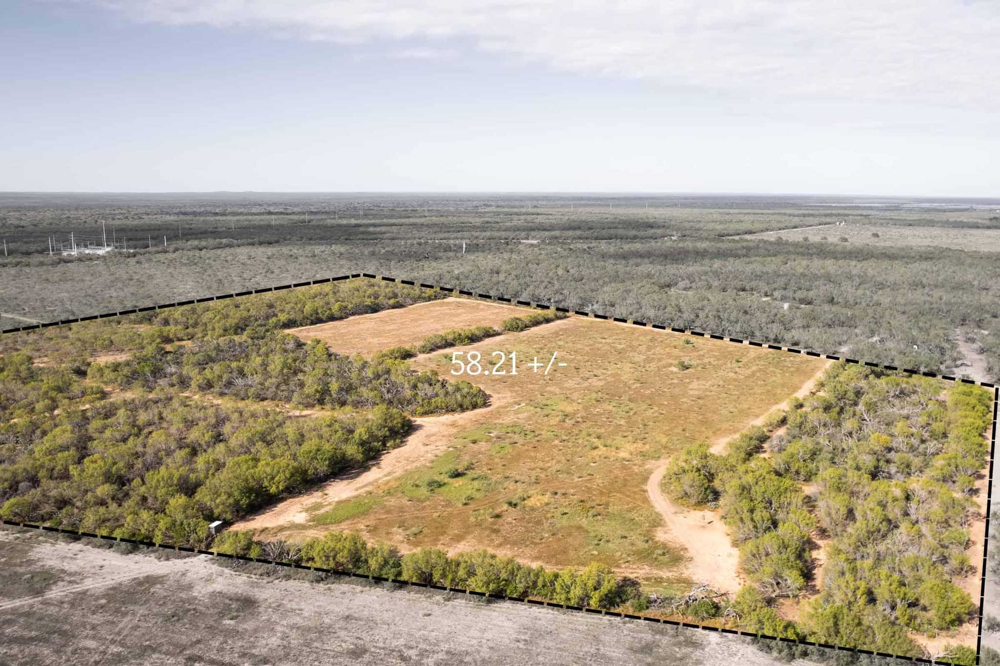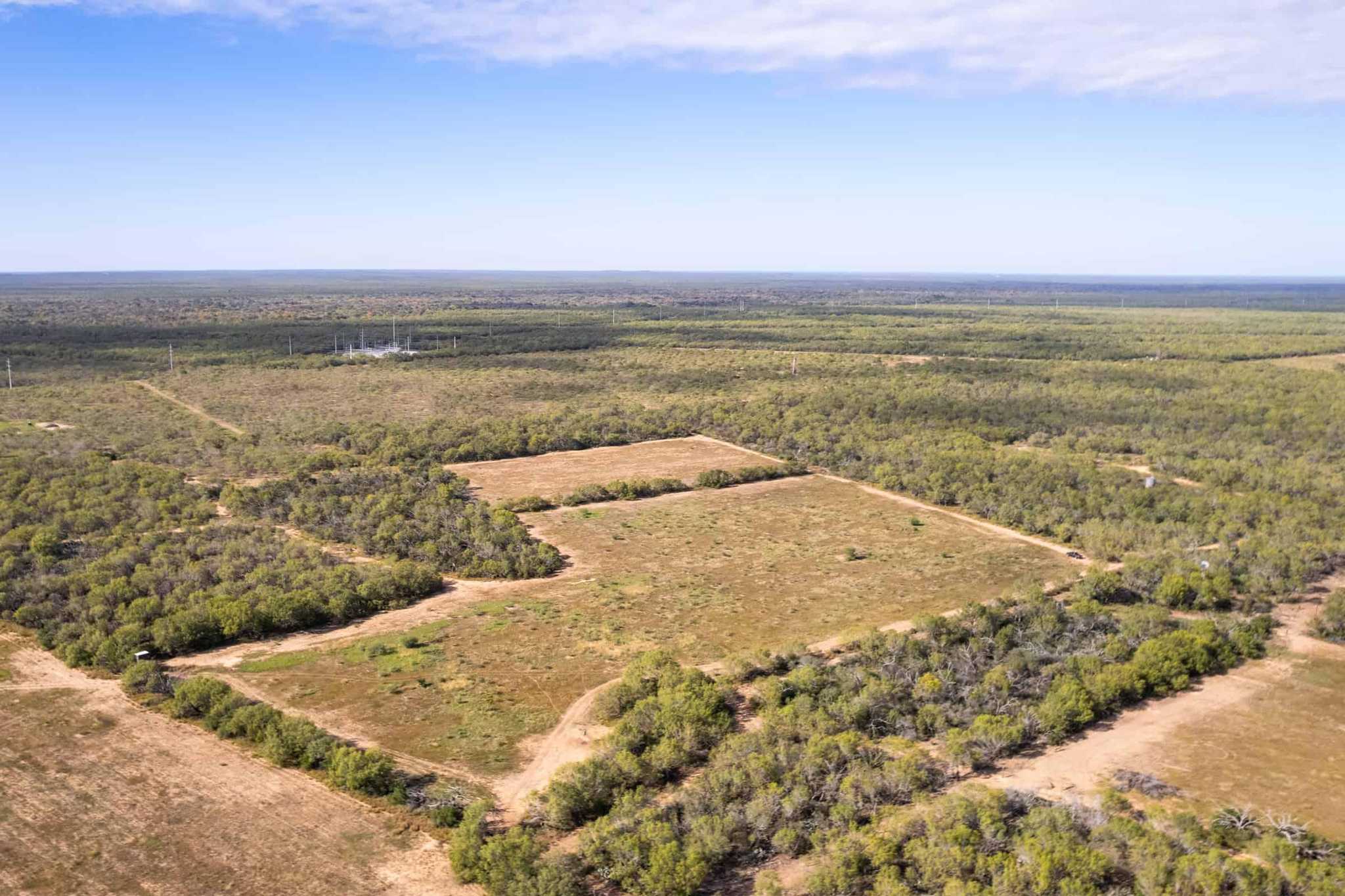 The property is mostly flat and offers a good balance of both fields and native brush.
