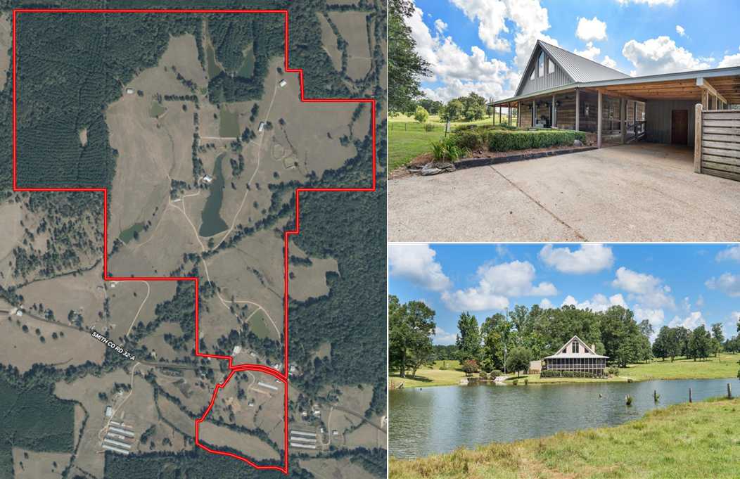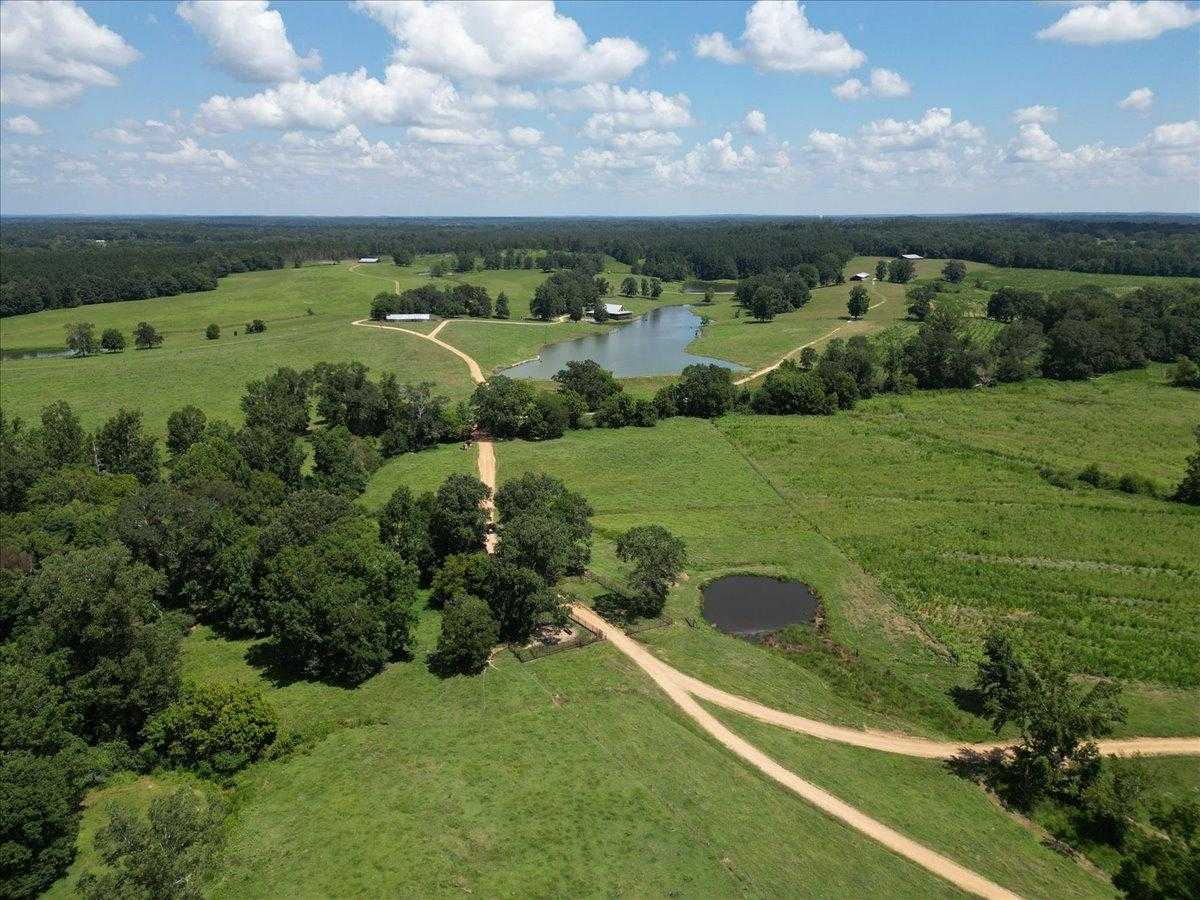 A premier 437 acre ranch featuring income-producing pasture, mature timber, excellent infrastructure, and a custom home in a peaceful, private setting. The property includes approximately 200 acres of pasture, ideal for grazing, hay production, or future expansion, along with an additional 50 acres of 1.5-year-old pine seedlings that can easily be cleared for continued pasture use or allowed to mature for long-term timber investment. Another 105 acres of mature pine timber provide immediate or future income potential. The ranch features five large stocked fishing ponds, seven additional cattle watering ponds, and approximately 3,700 feet of Yellow Bill Creek winding through the property. With abundant deer, turkey, and small game, the land is also well-suited for hunting and outdoor recreation. Whether your focus is livestock, timber, or lifestyle, this property offers unmatched flexibility, income potential, and natural beauty. At the heart of the property is a 3,800 sq. ft. custom home, built in 2017, offering two bedrooms, three bathrooms, and a spacious 700 sq. ft. loft. High-end finishes include vaulted ceilings, wood flooring, premium countertops, luxury appliances, and a chef's kitchen designed for both functionality and entertaining. A wraparound porch on three sides, including a screened section, overlooks the lake and rolling pasturesan ideal setting to unwind and enjoy the views. The attached carport with built-in storage adds convenience, while the home's open-concept design blends modern comfort with timeless rural charm. The ranch infrastructure is extensive and supports up to 275 head of cattle. Improvements include multiple hay barns, an equipment barn, and a four-bay garage with an attached workshop. The entire property is fenced and cross-fenced, allowing for efficient herd movement and pasture rotation. Extensive farm equipment is available for purchase separately, making this a true turnkey cattle operation. Additional features include a two-bedroom, one-bathroom rental house and a three-bedroom, two-bathroom mobile home, ideal for income or ranch staff accommodations. This exceptional property is ideal for operating a large-scale cattle business, investing in timber, enjoying premier hunting and fishing, or establishing a multigenerational legacy estate. With income-producing assets, privacy, and natural Mississippi beauty, it stands among the finest land offerings available.