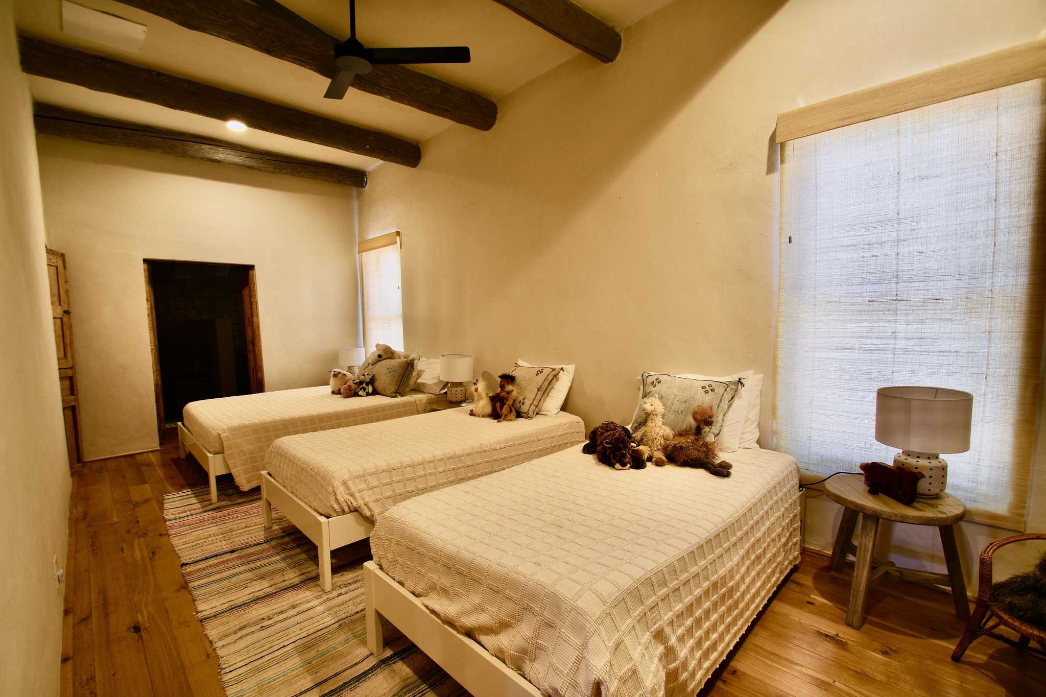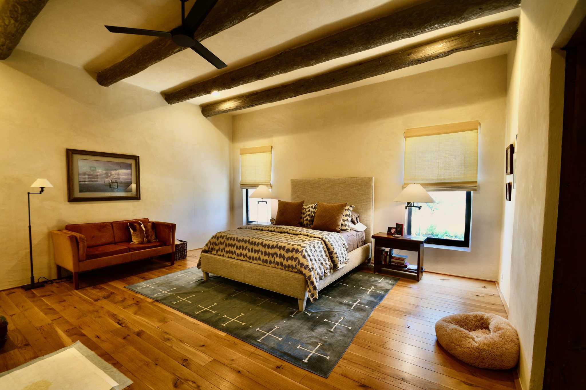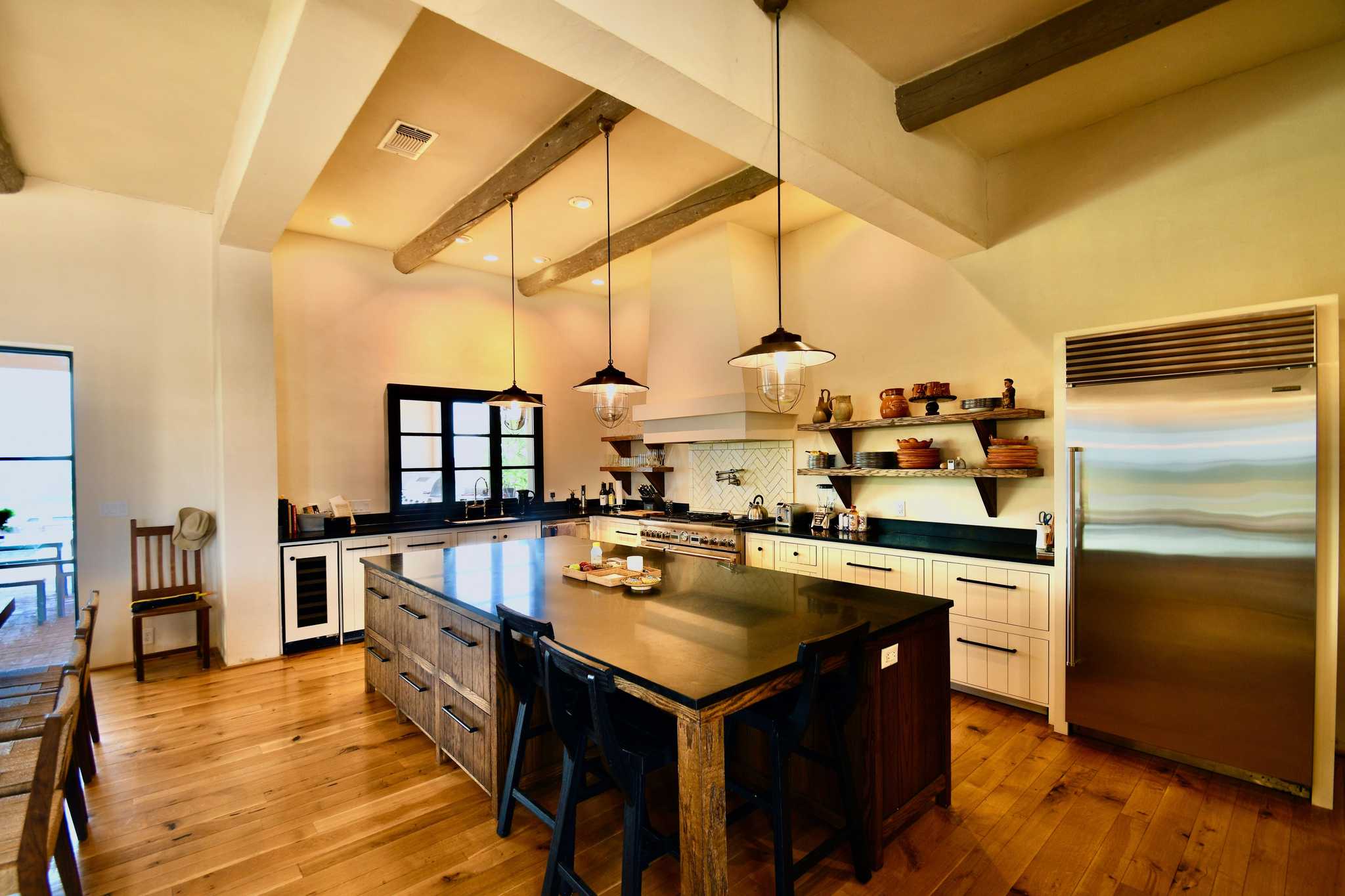 The 6,775 square foot 4 bedroom / 4.5 bath modern adobe-style main residence is perched atop a hill on the east side of the ranch 200 feet above the other improvements, assuring complete privacy from the operating business below. The house is strategically oriented to the southeast to capture the prevailing breeze in the summer and to shield it from the cold north winds of winter. The details throughout create an architectural splendor with hand-troweled walls, Flemish black terracotta tile, antique doors, reclaimed wood beams, authentic brick floor tiles, an outdoor kitchen and living area, and magnificent iron doors and windows. As you walk out of the main living room onto the covered porch overlooking the pool and hot-tub, the views of Crabapple Valley are nothing short of jaw-dropping.