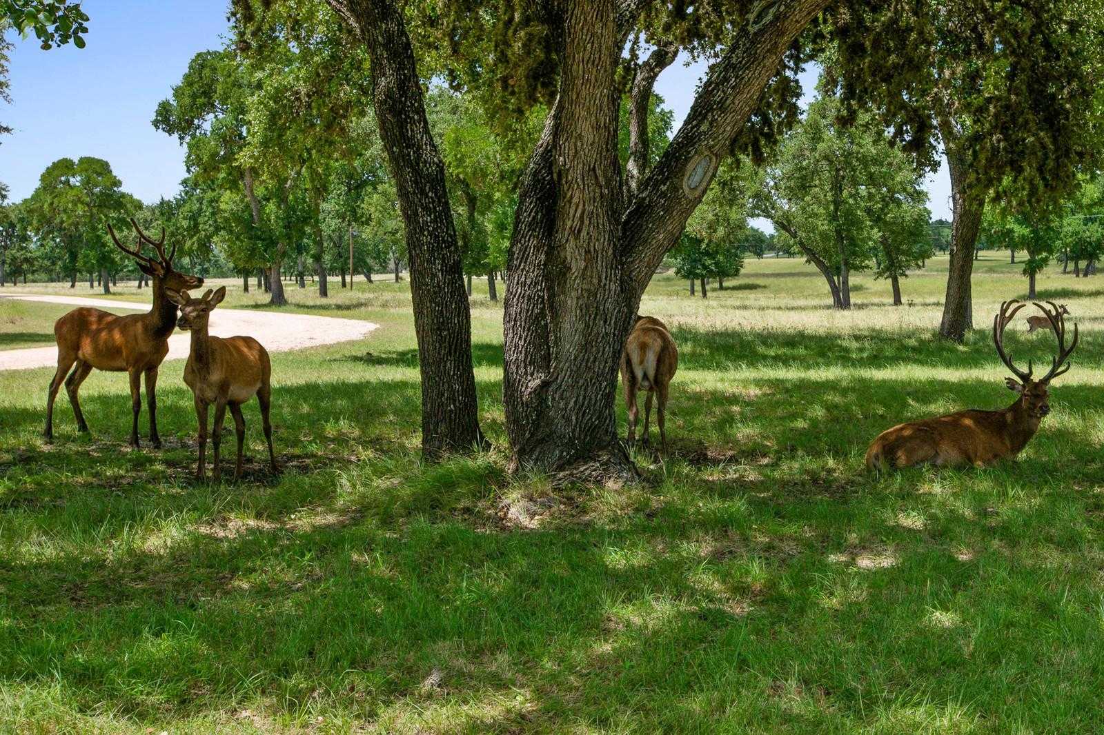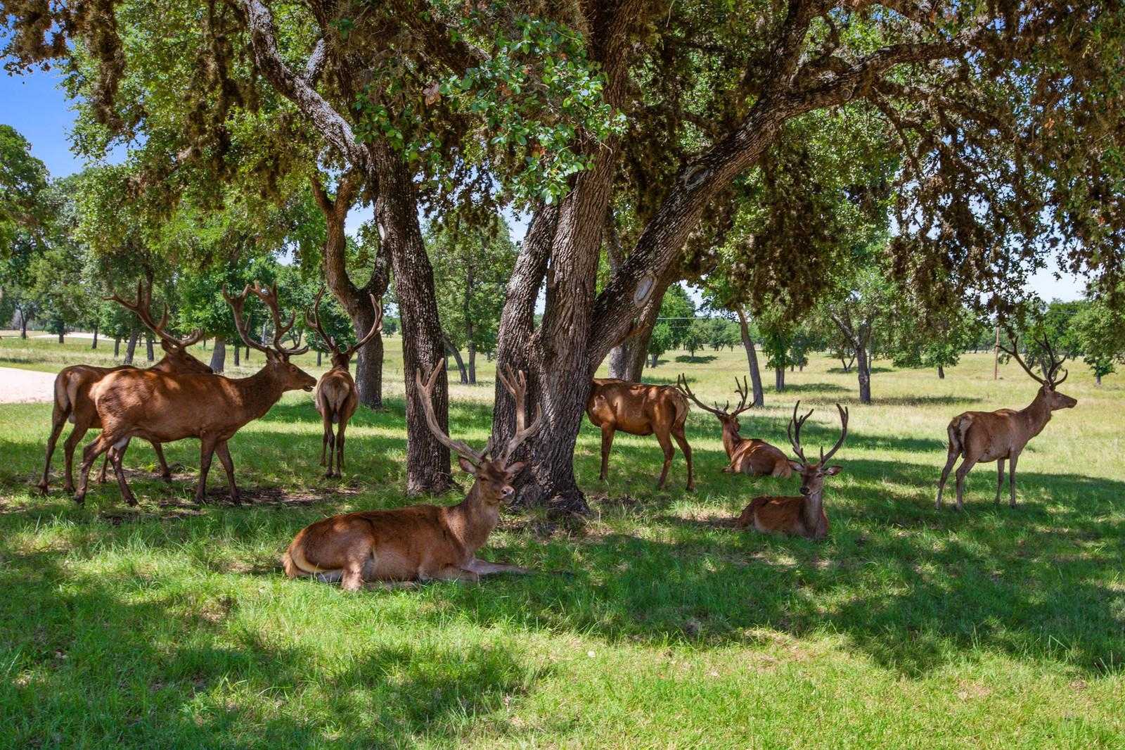 WILDLIFE & NATURE: elk, axis, white-tailed deer, antelope, barbado ram, native turkey, duck and geese roam the property. High protein grasses and Native trees such as Live Oak, Spanish Oak, Post Oak, Wild Cherry, Mountain Laurel, Madrone, Cedar, Elm, Juniper, Redbud, Pecan are abundant and grace the landscaped 200+ acres.